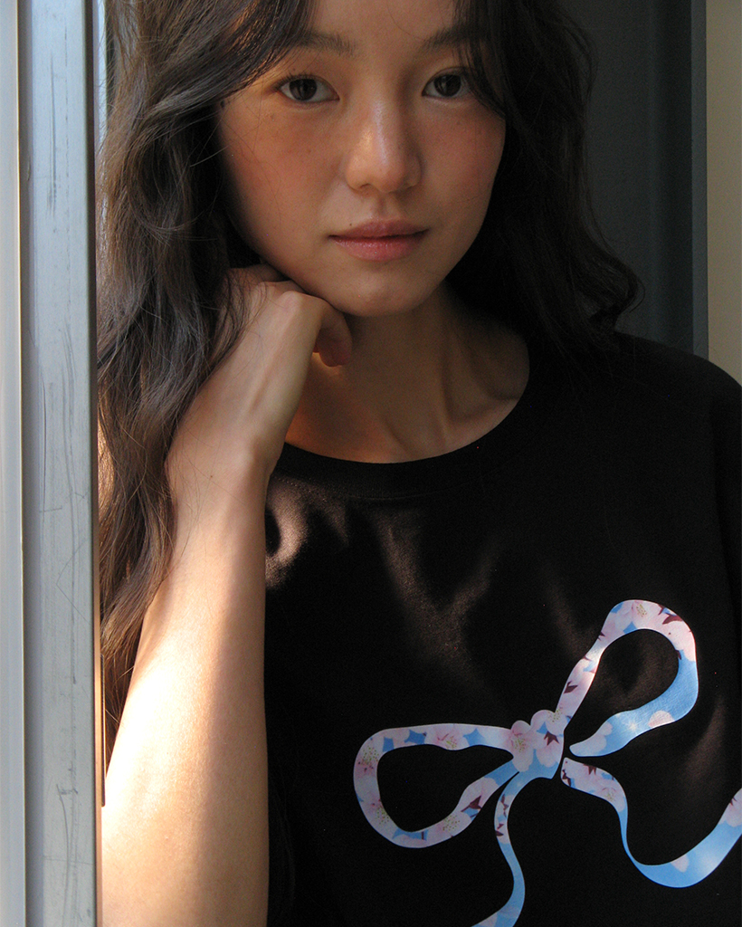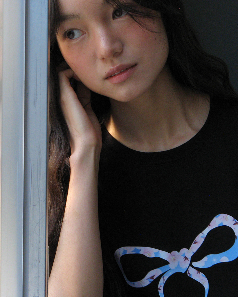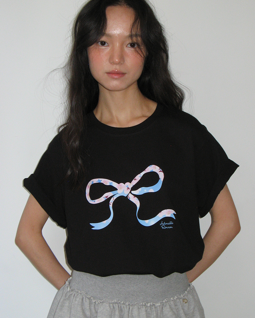 [日本限定] HEART RIBBON BASIC FIT T SHIRT CHERRY BLOSSOM BLACK