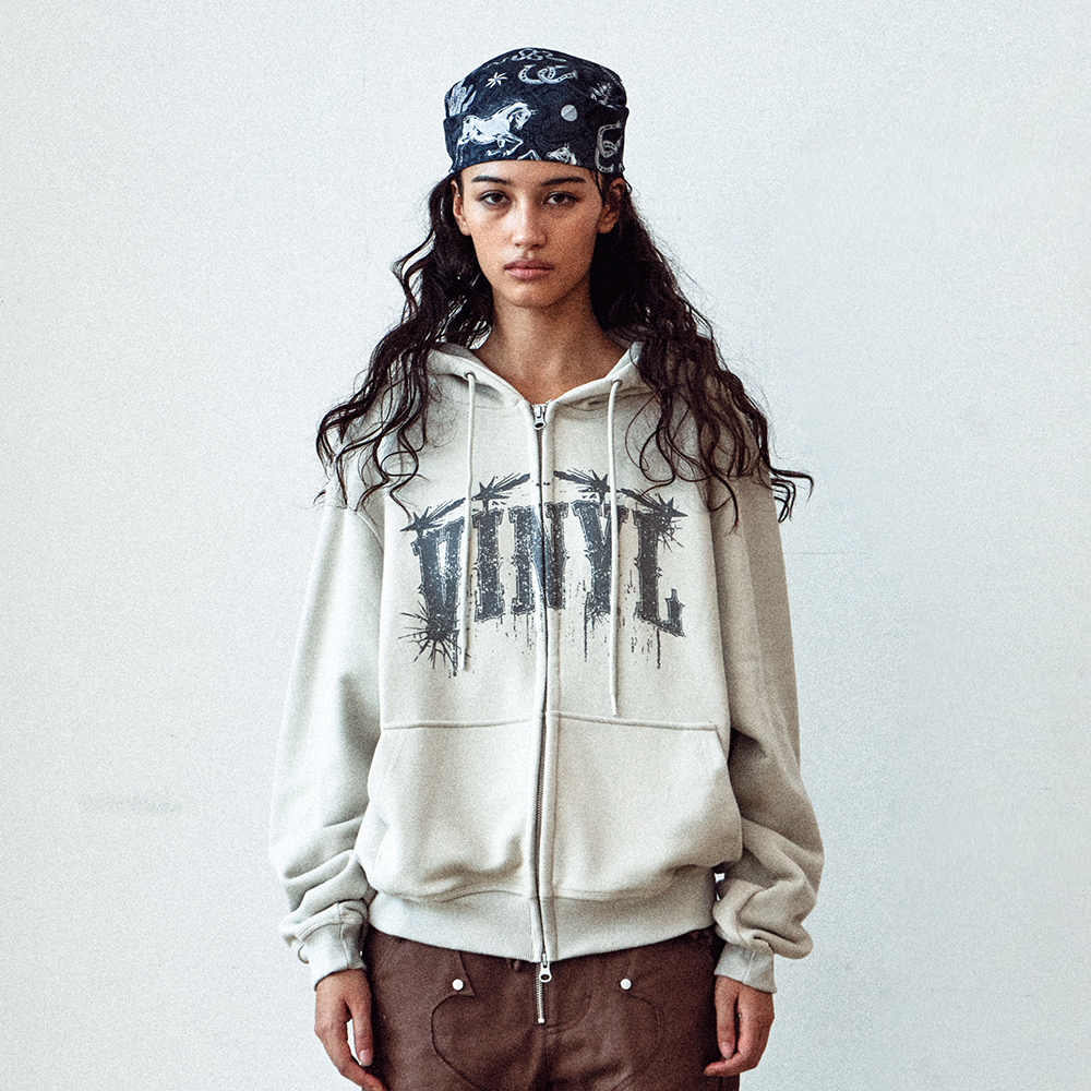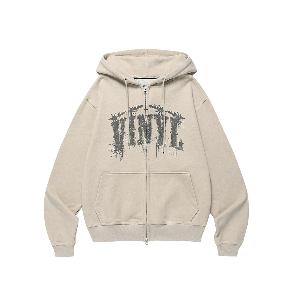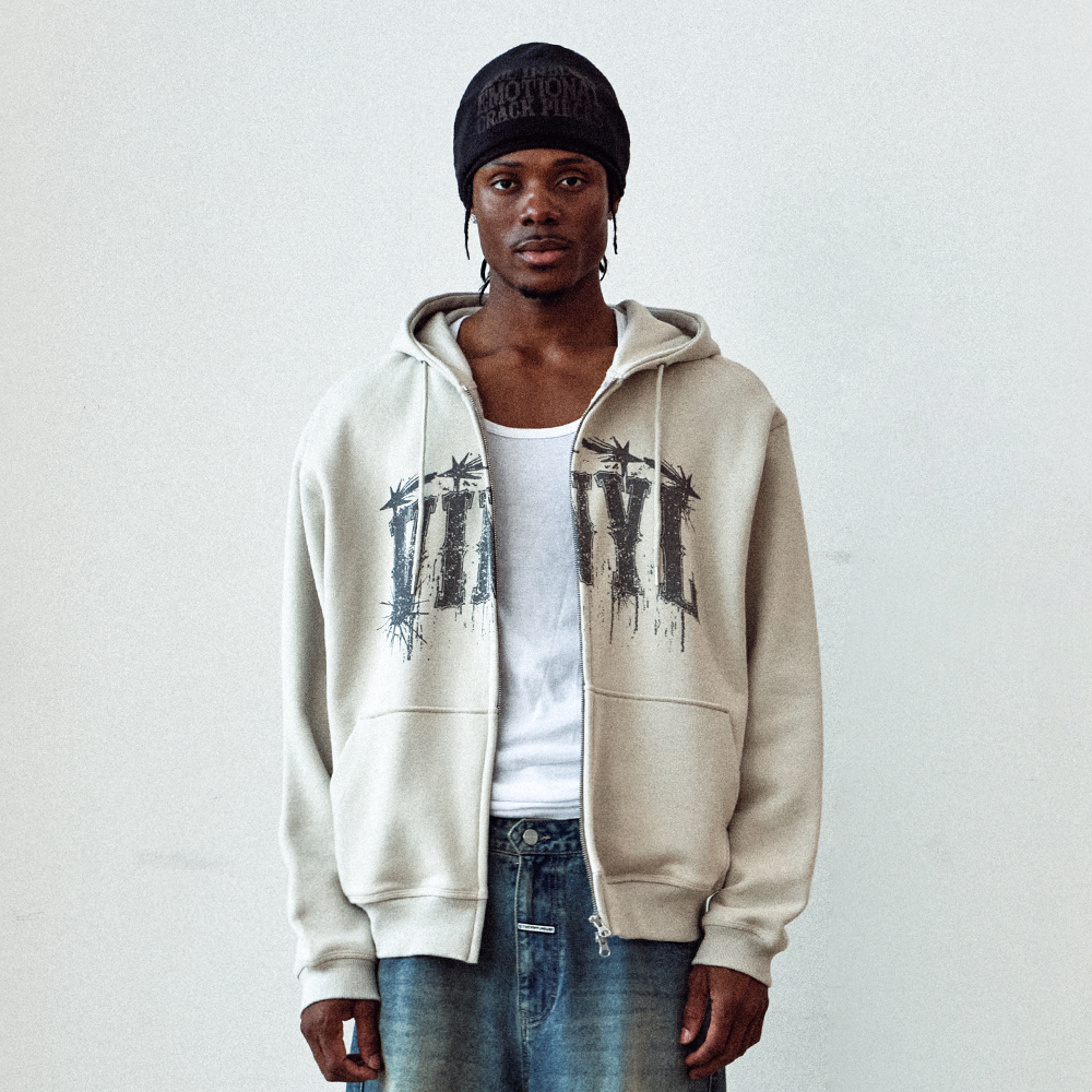 GRAPHIC HOODIE ZIP-UP BEIGE