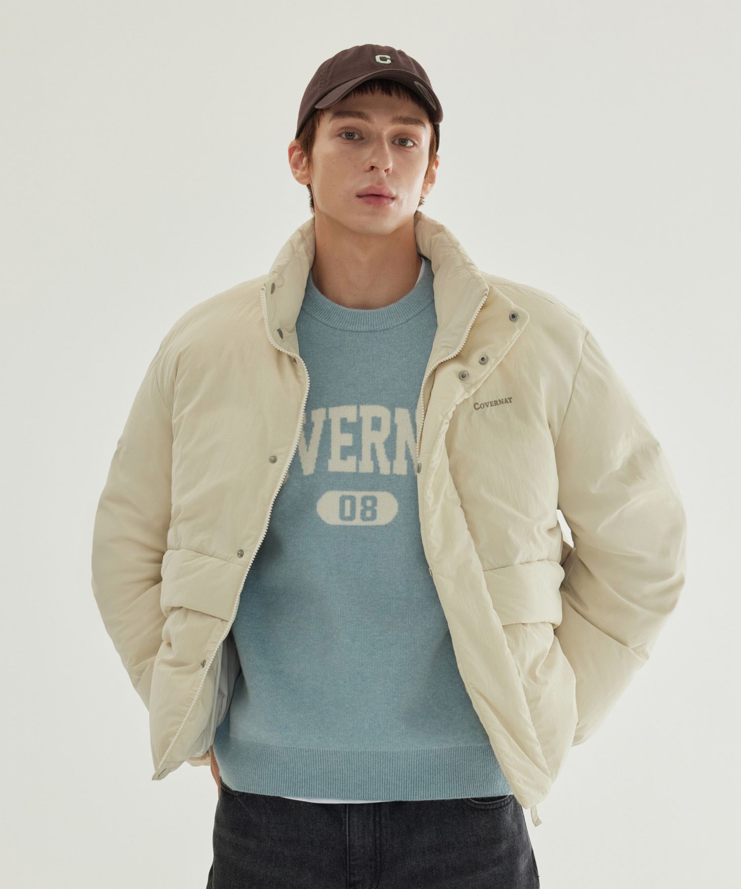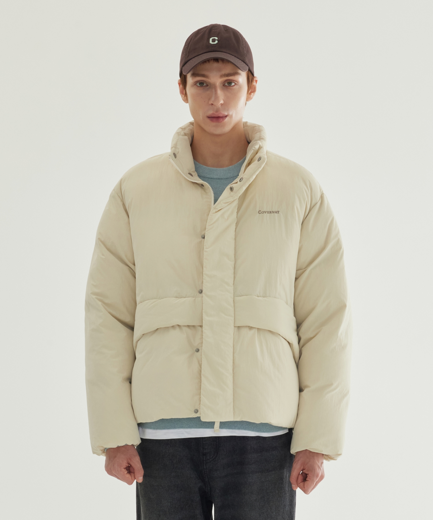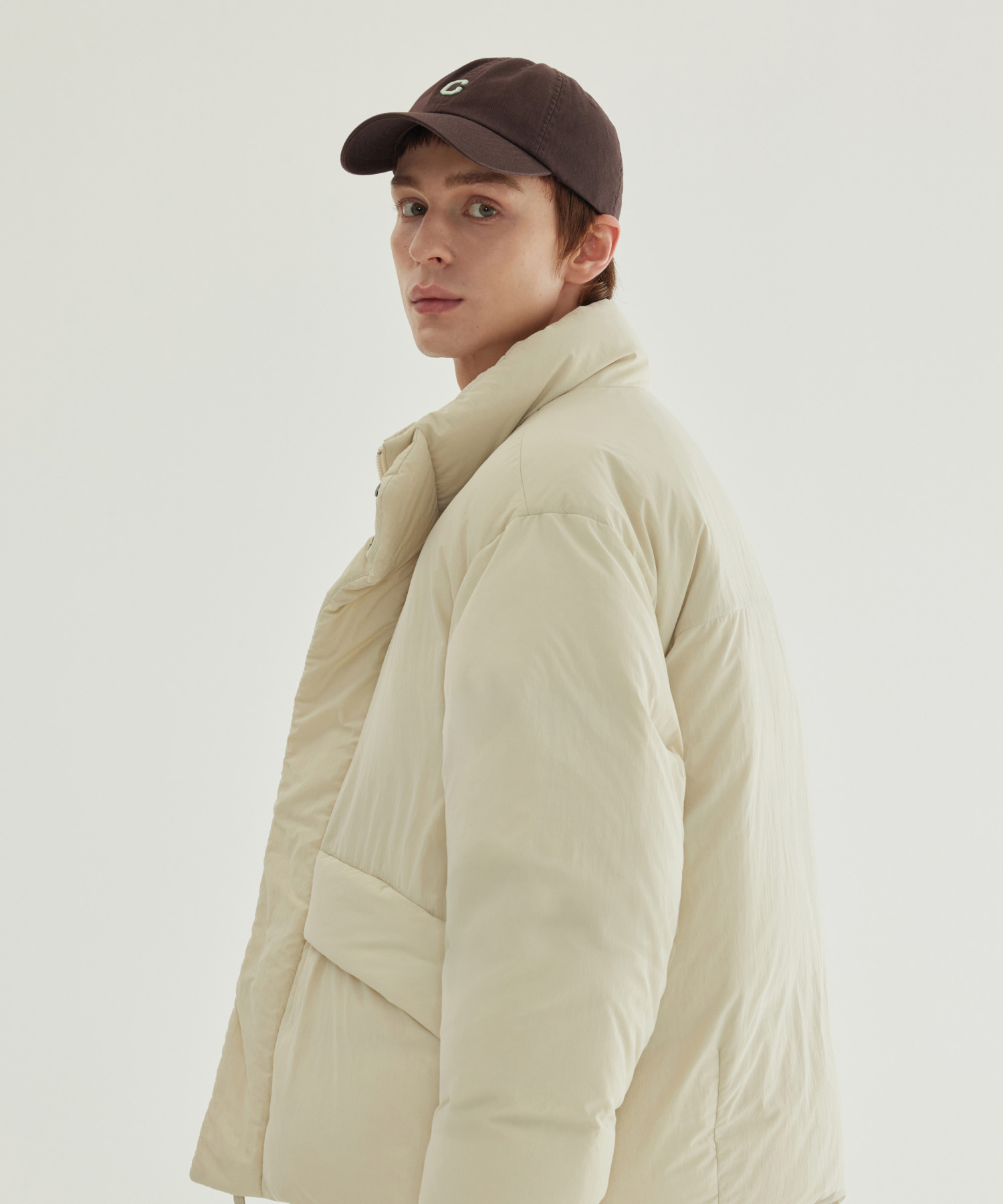 NON-QUILTED SHORT PUFFER - Ecru