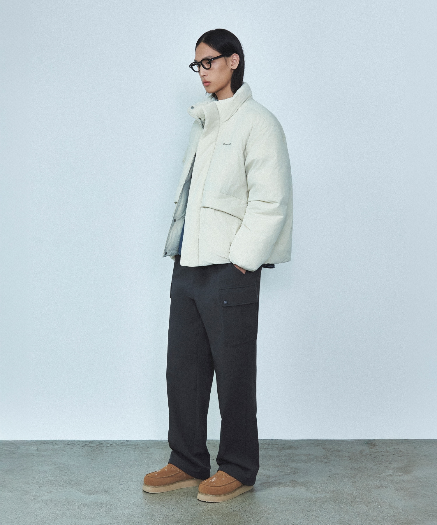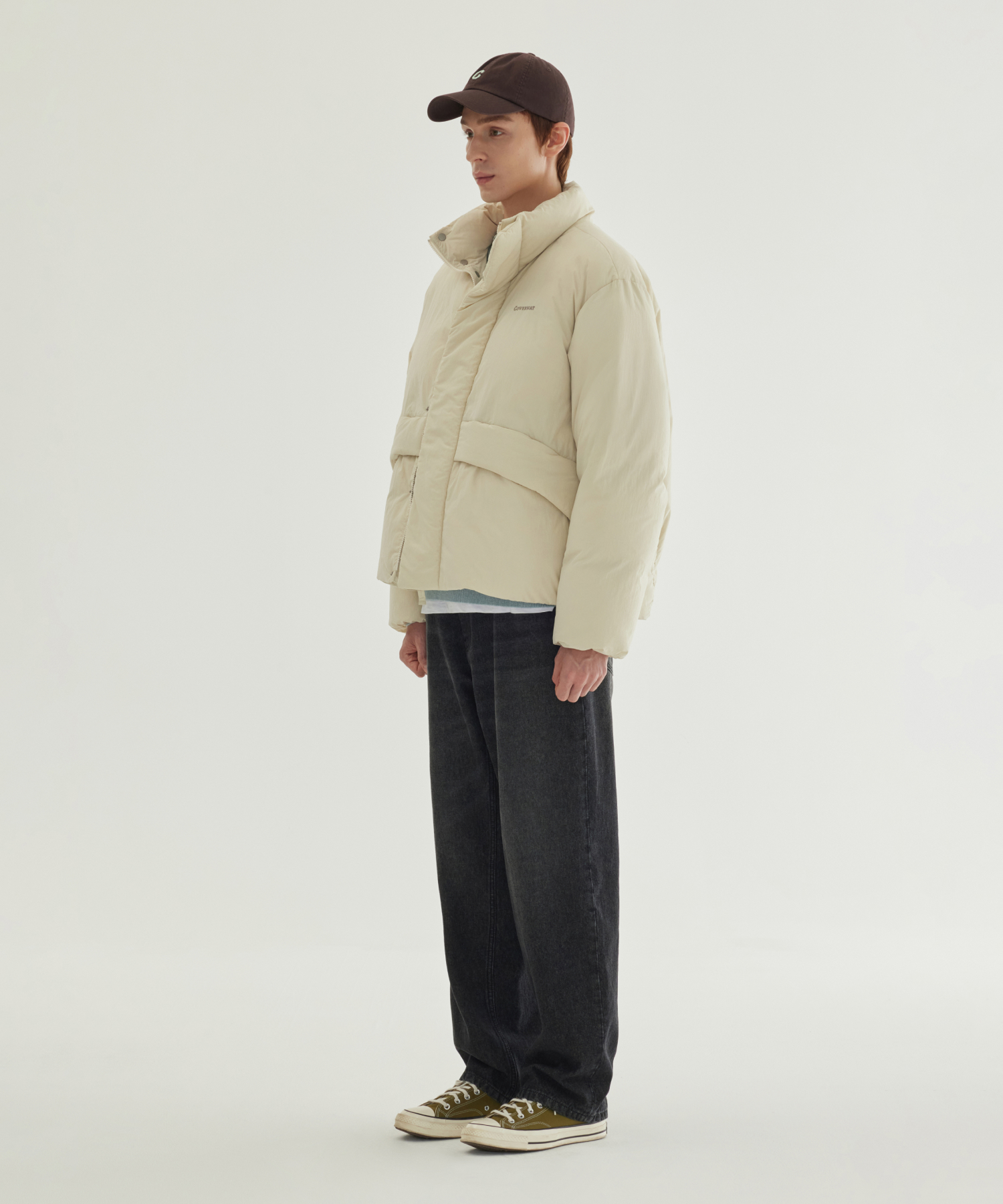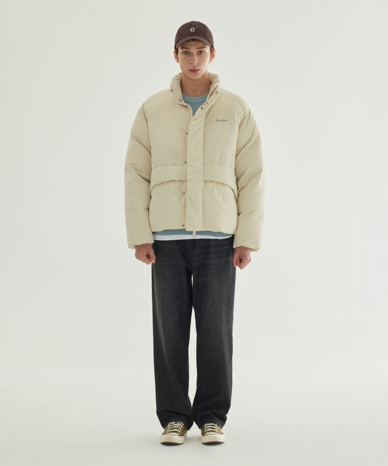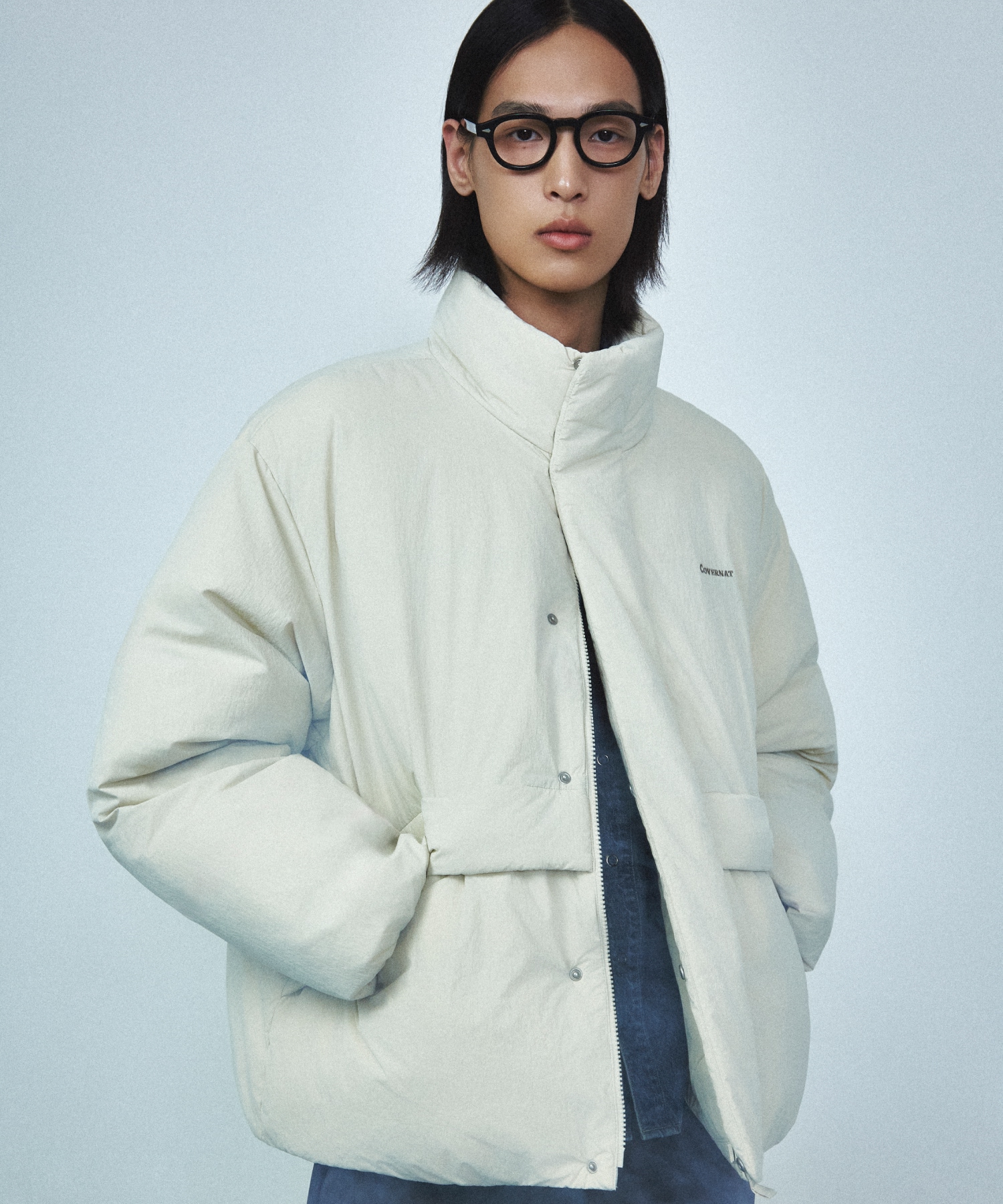 NON-QUILTED SHORT PUFFER - Ecru