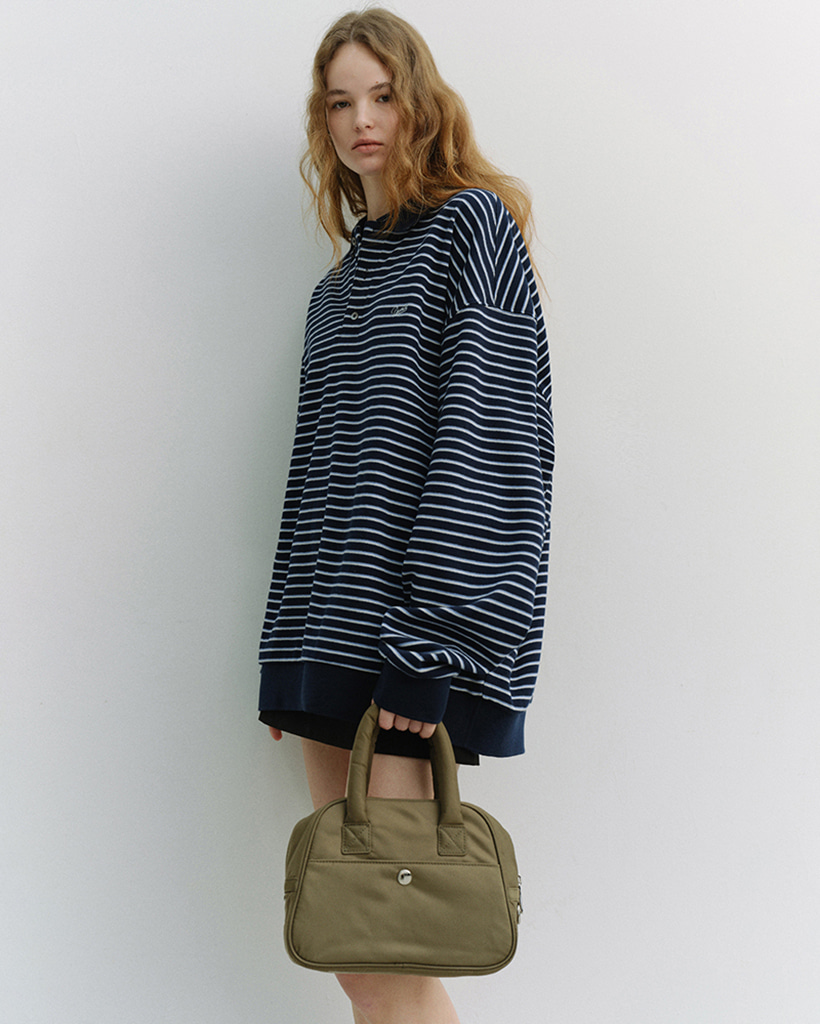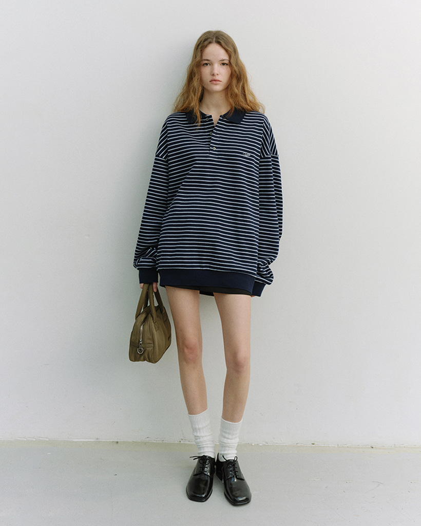 UNISEX STRIPED LOGO COLLARED T-SHIRT NAVY_UDTS6A120N2