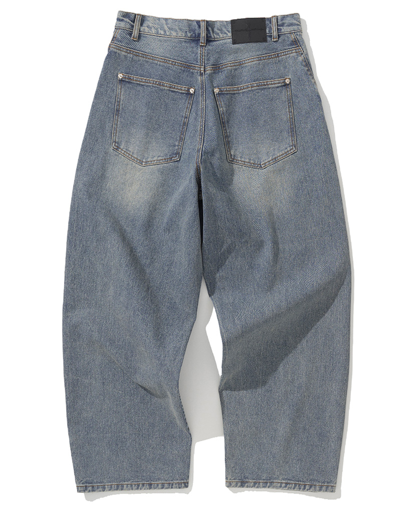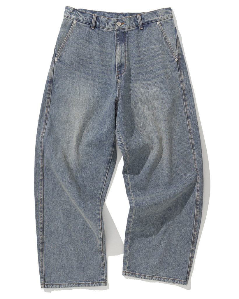 Curved Semi Wide Denim Pants - Deep Blue