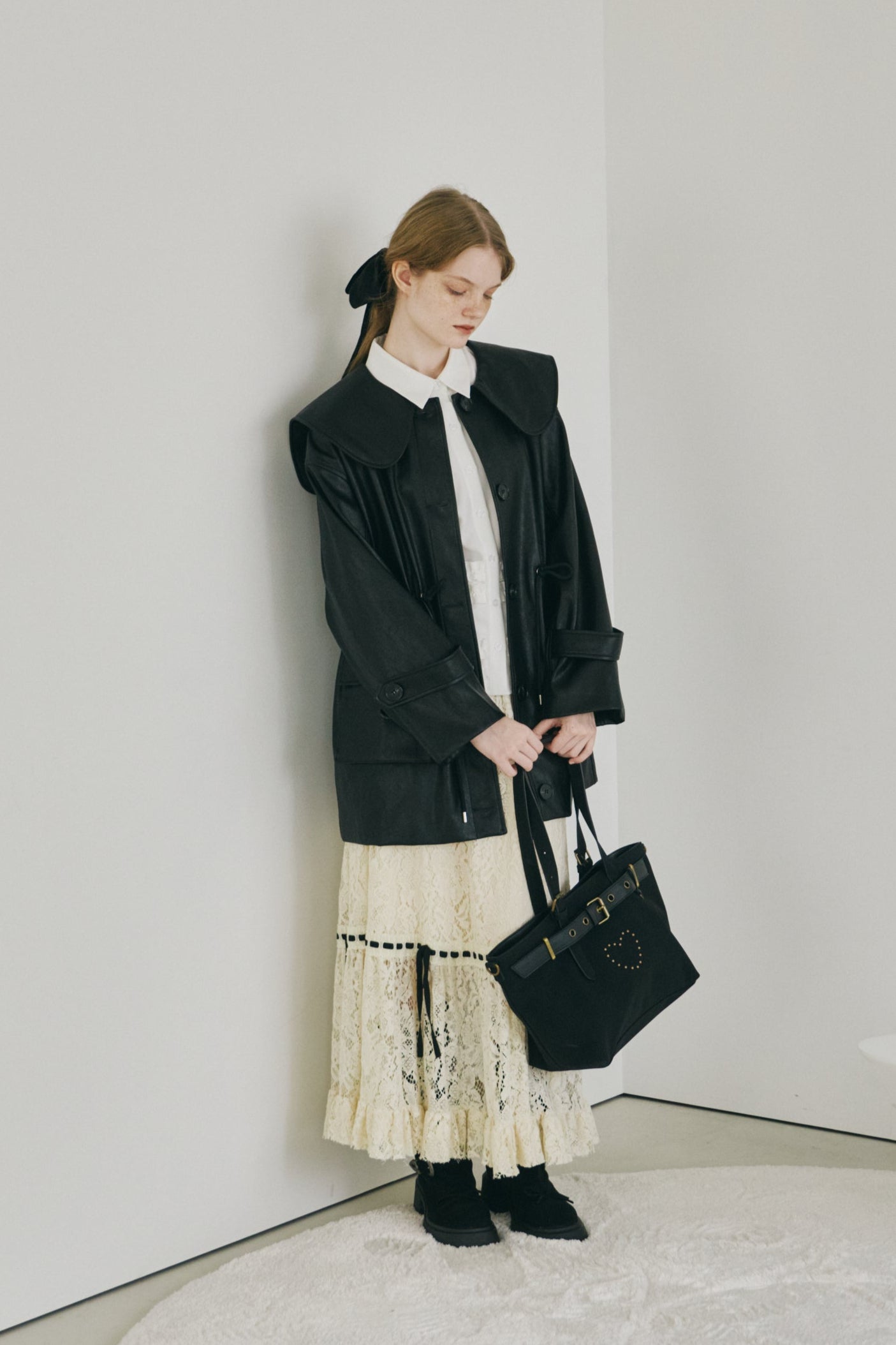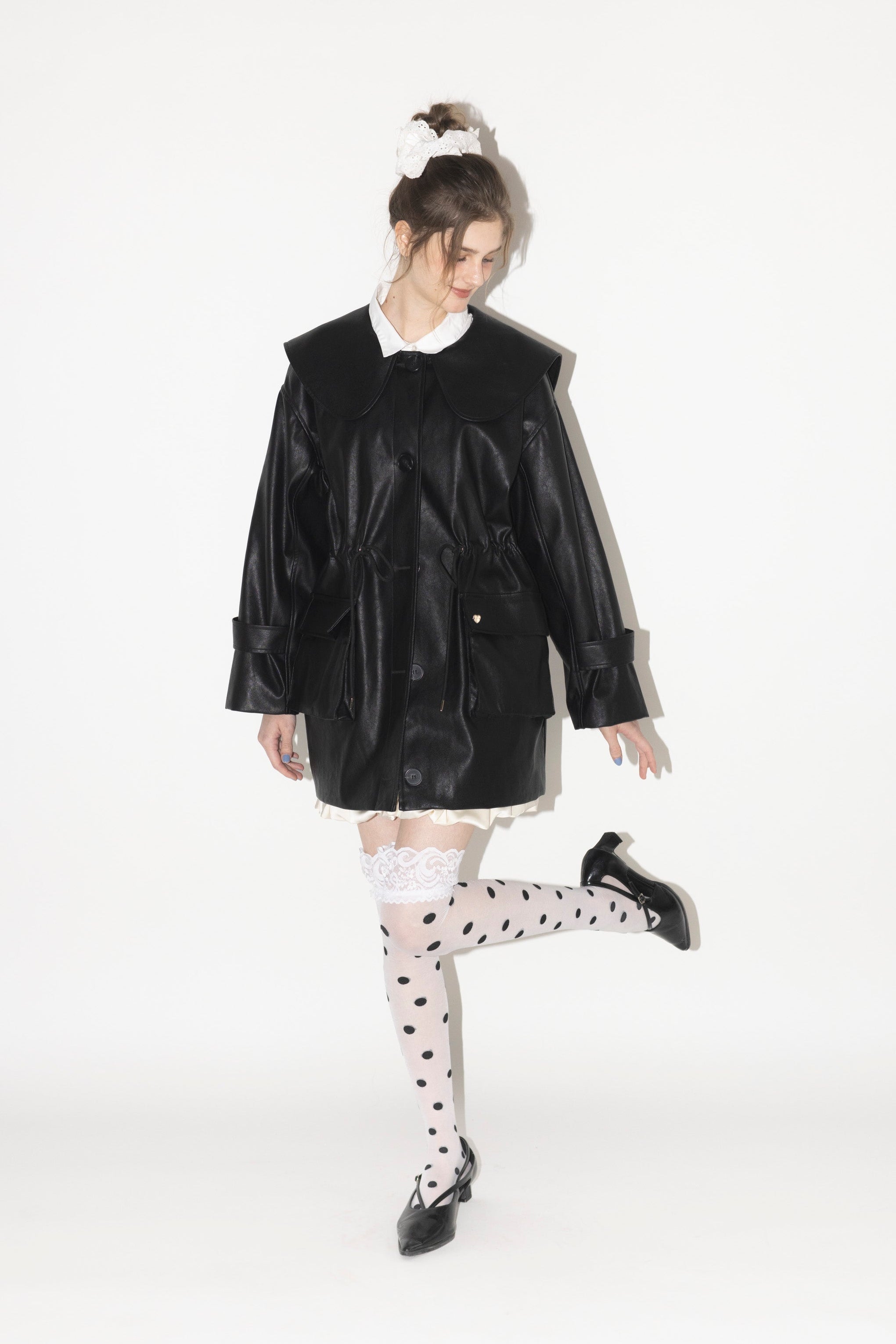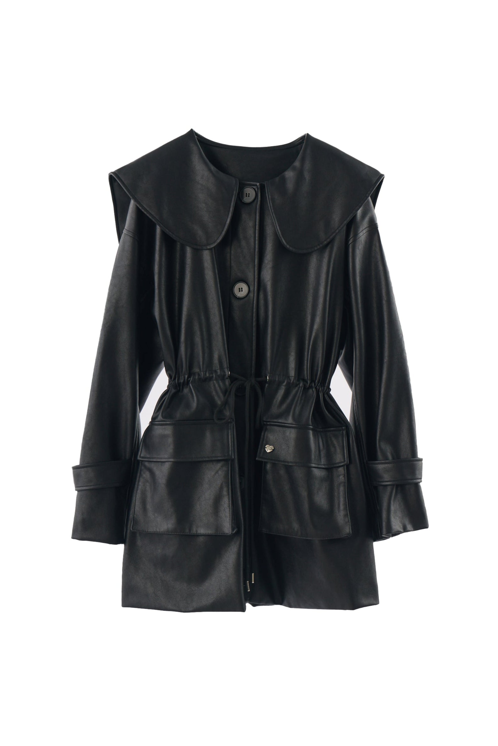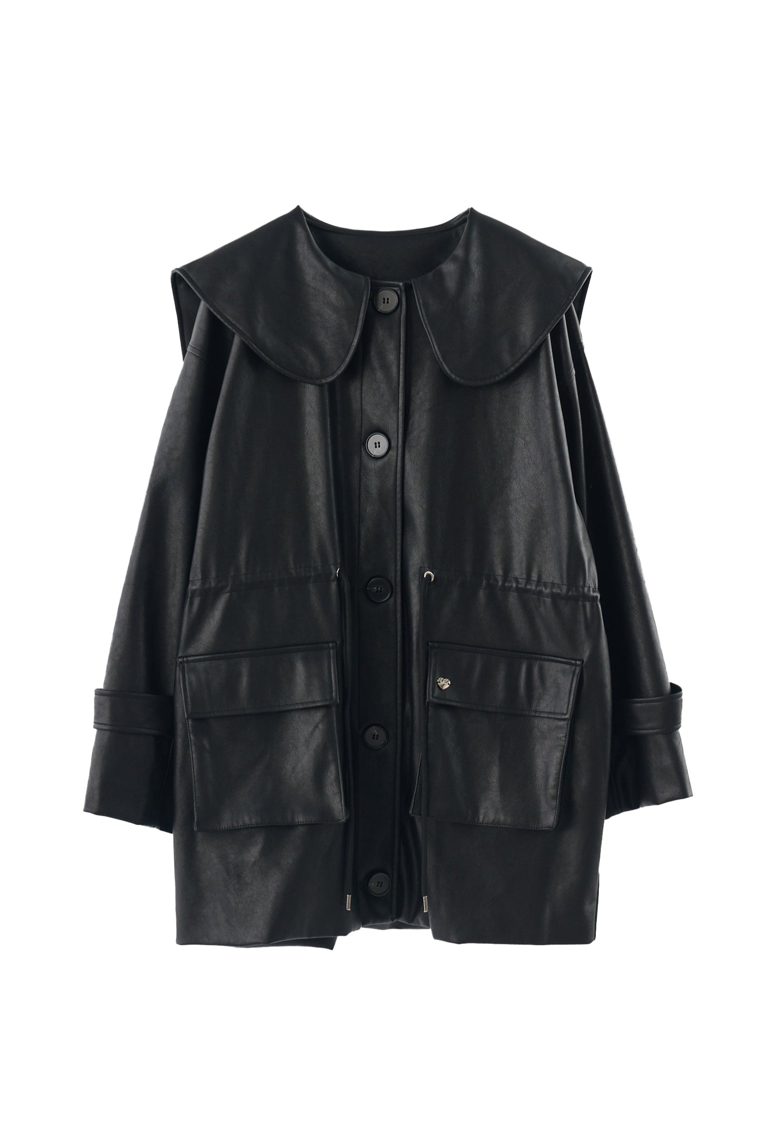 big collar vegan leather jacket