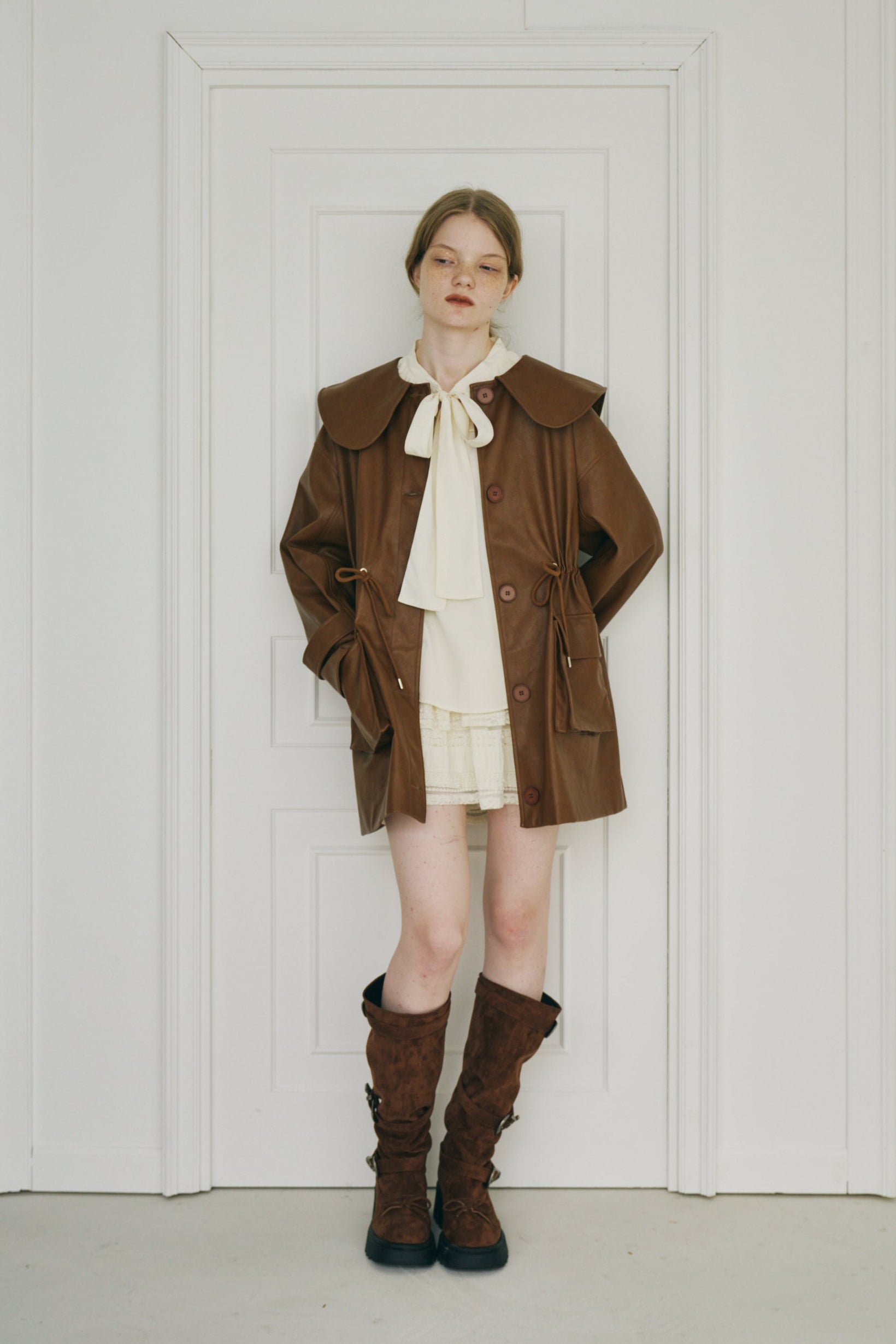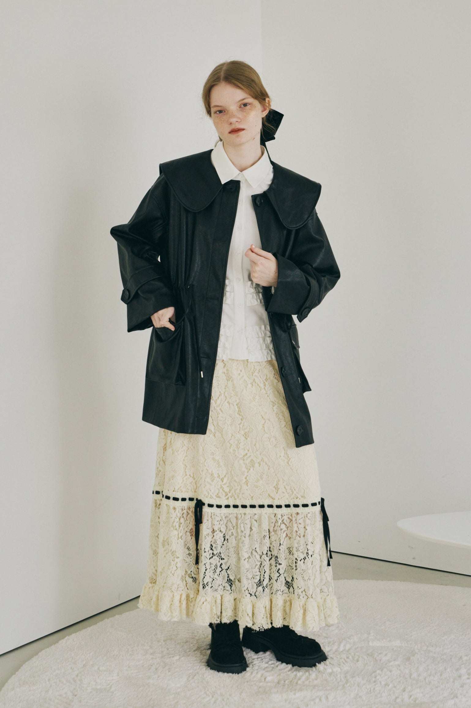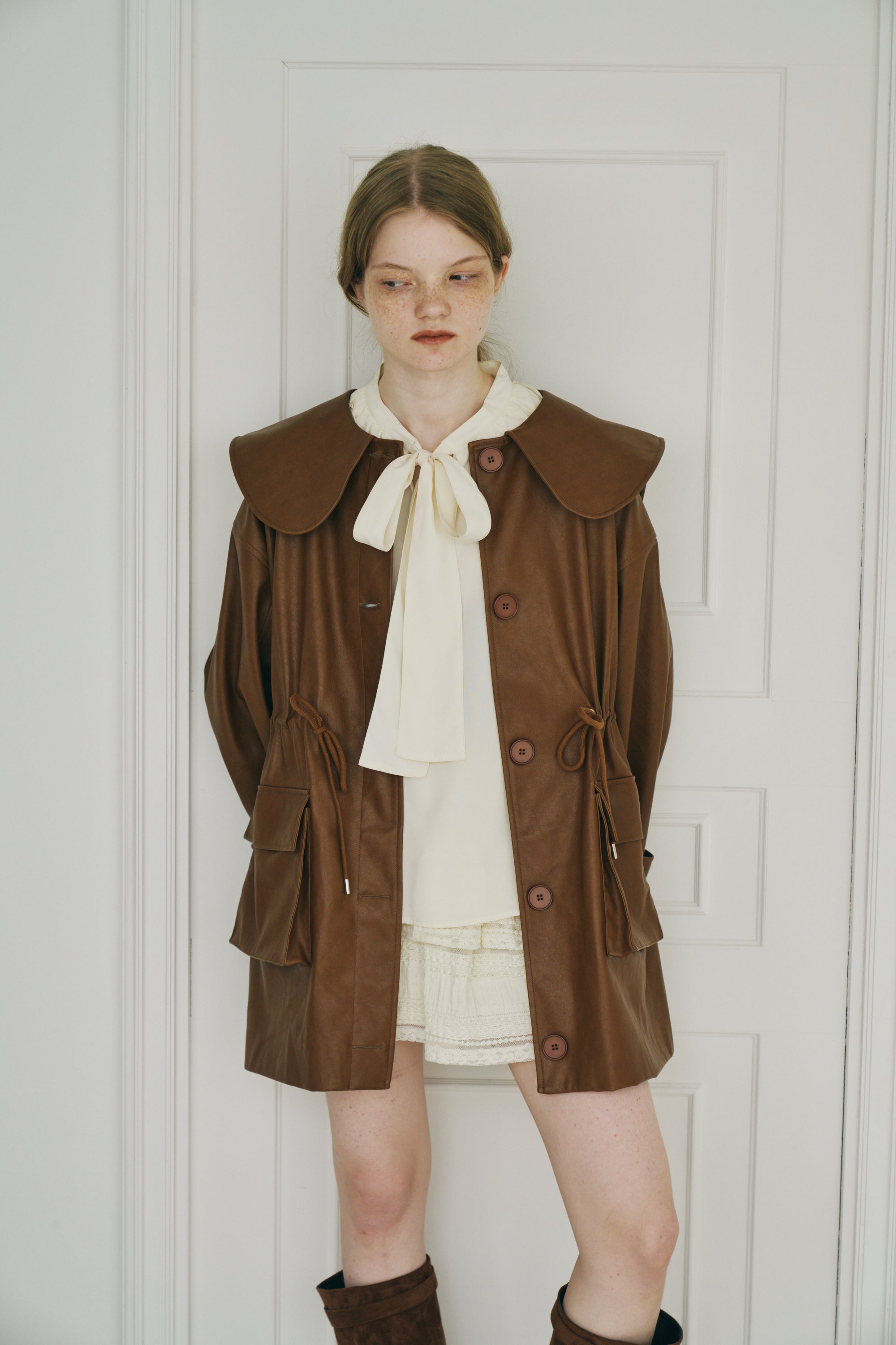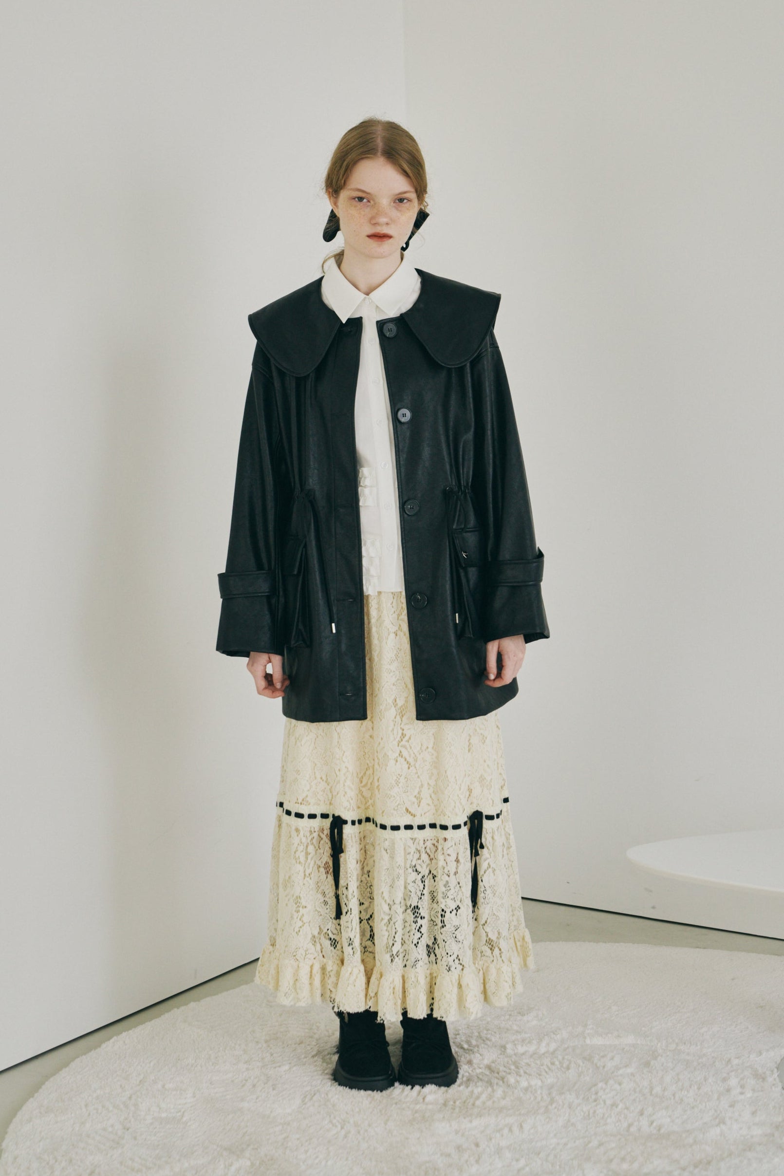 ・顔まわりを引き立てる大きめの襟
