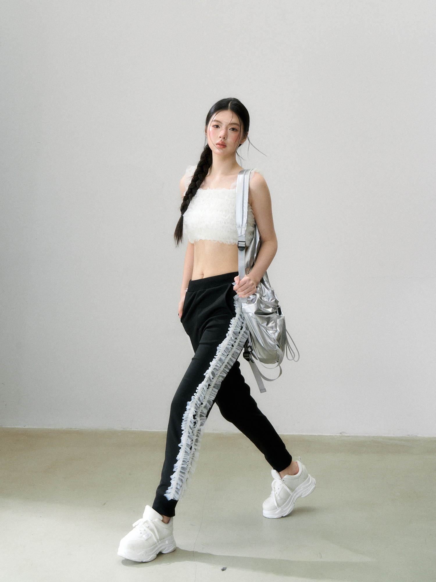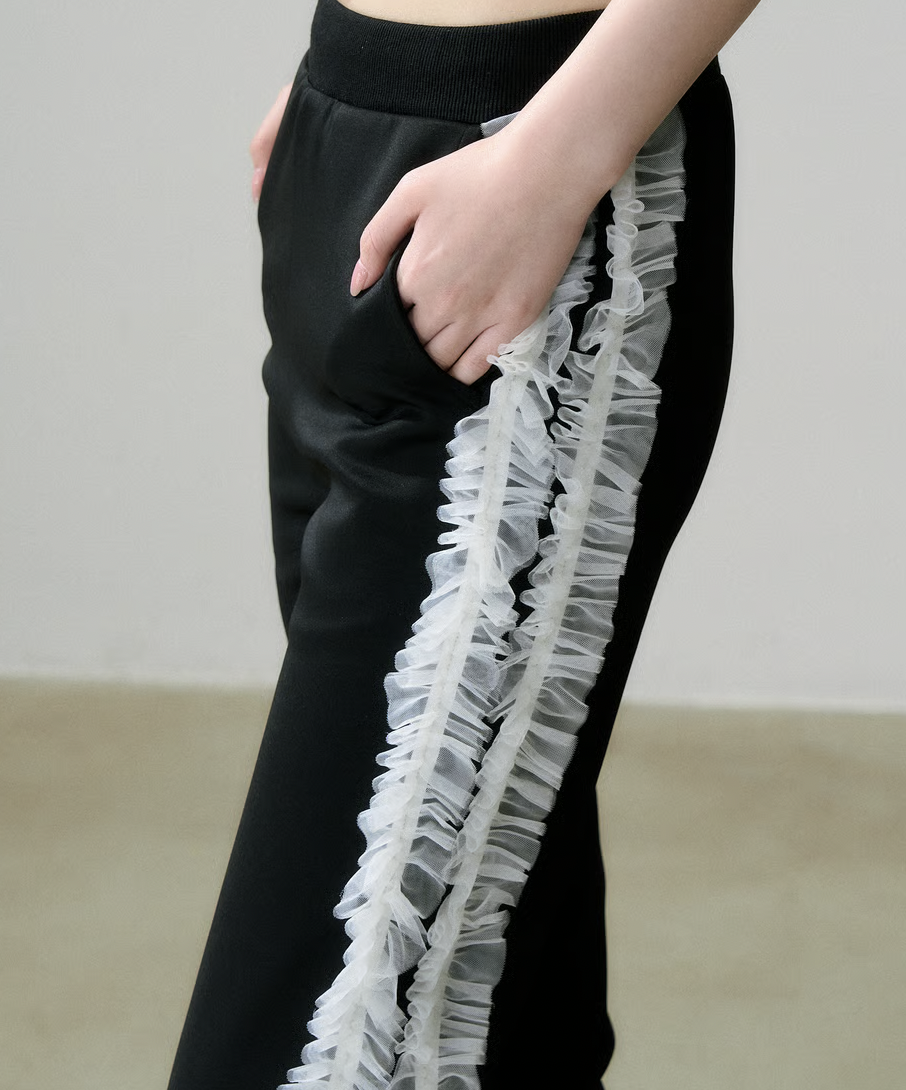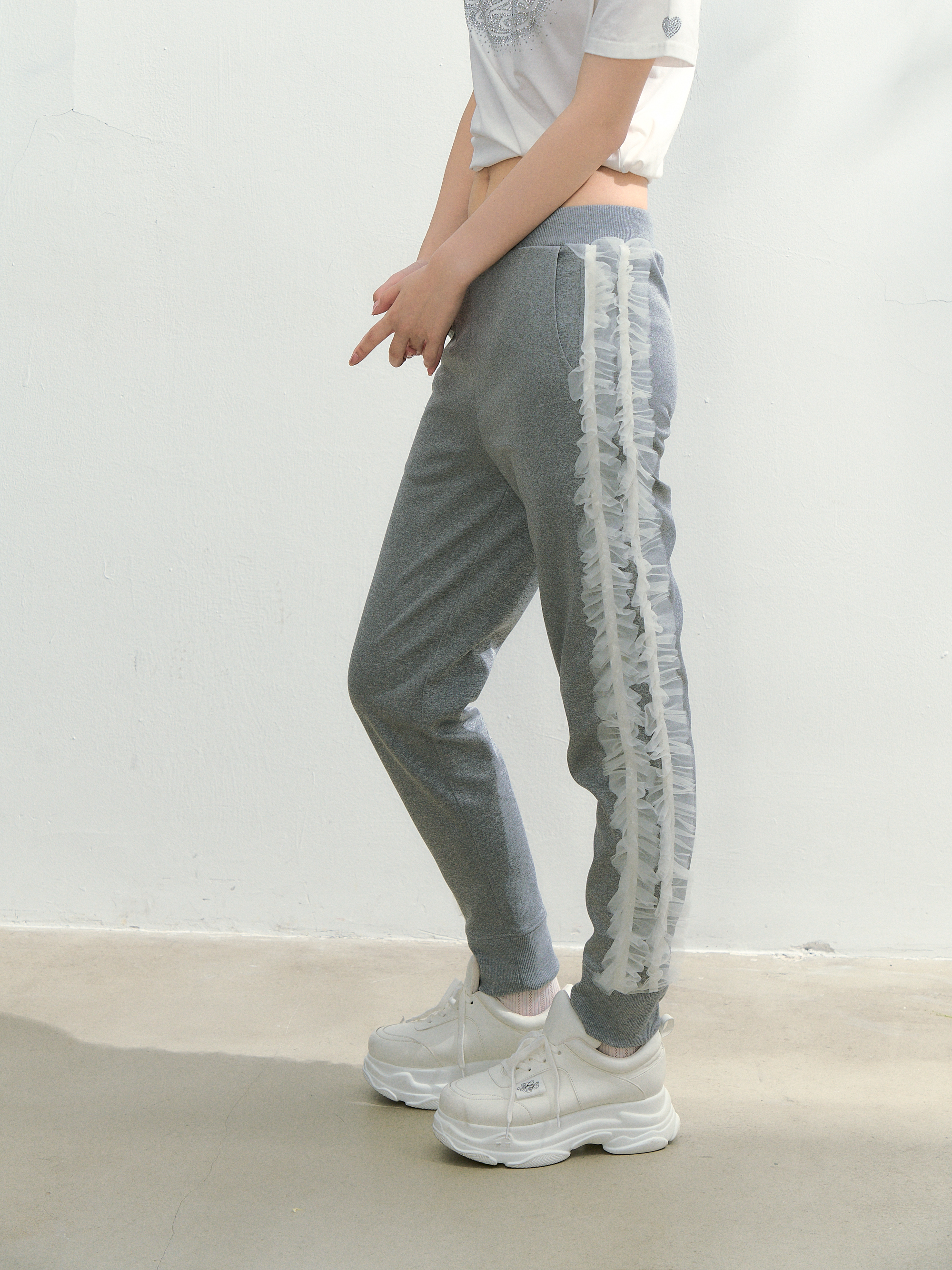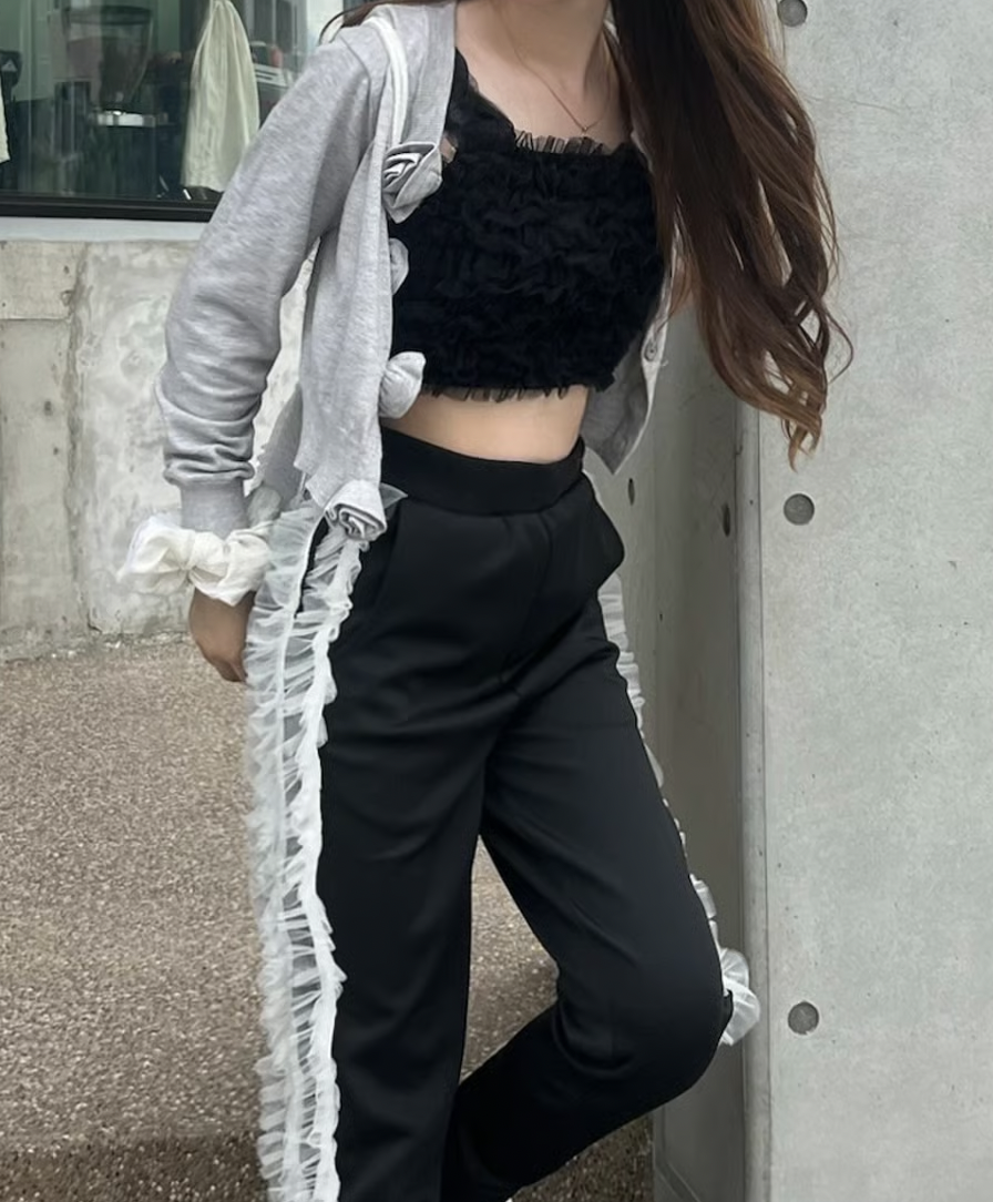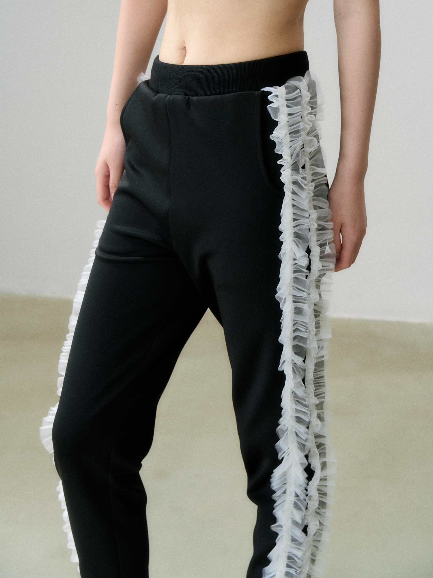 両サイドにあしらったたっぷりのチュールフリルが目を引く、甘さとラフさを兼ね備えた一本。