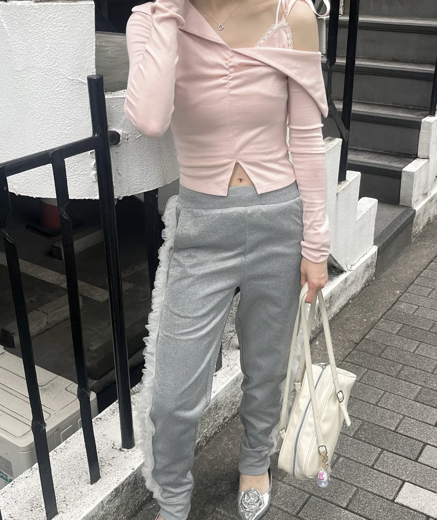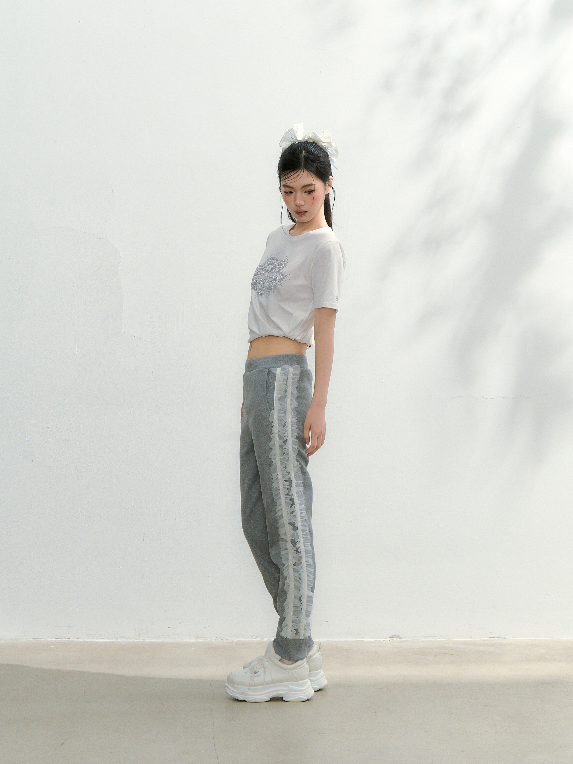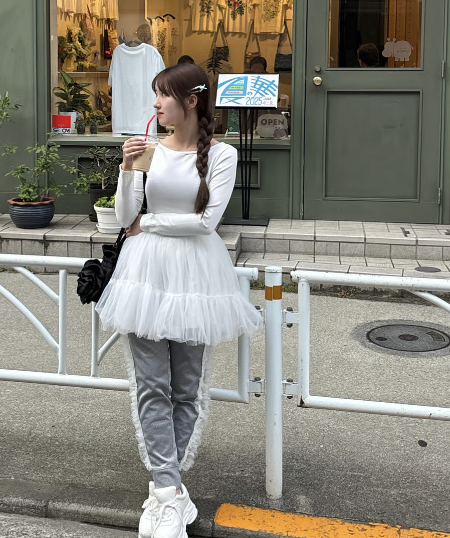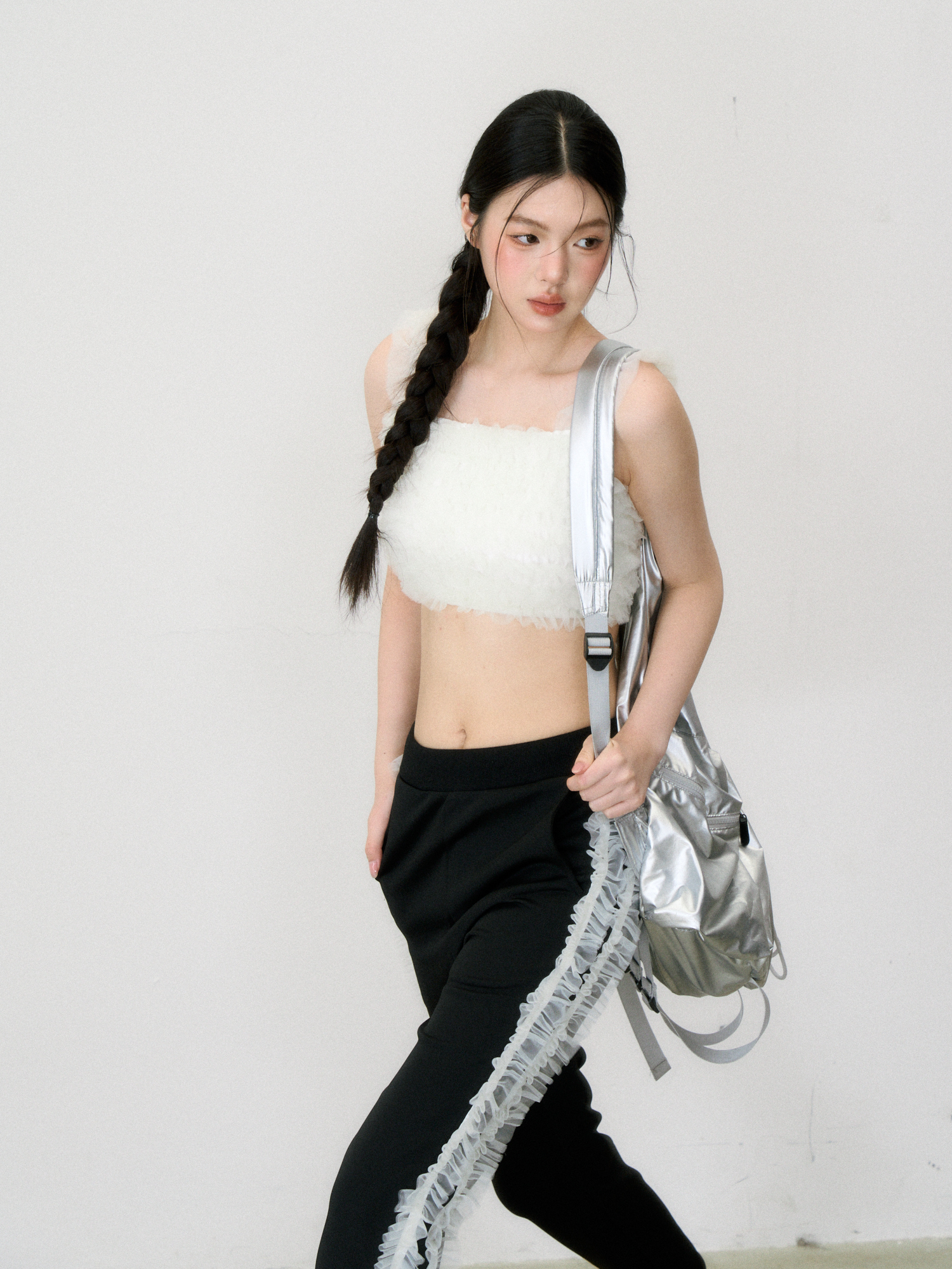 両サイドにあしらったたっぷりのチュールフリルが目を引く、甘さとラフさを兼ね備えた一本。