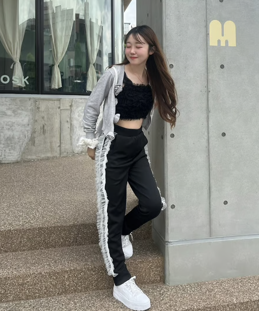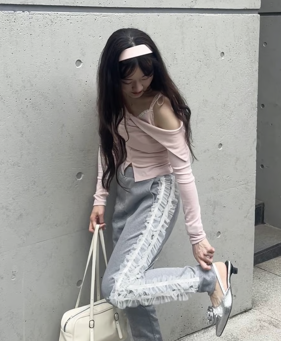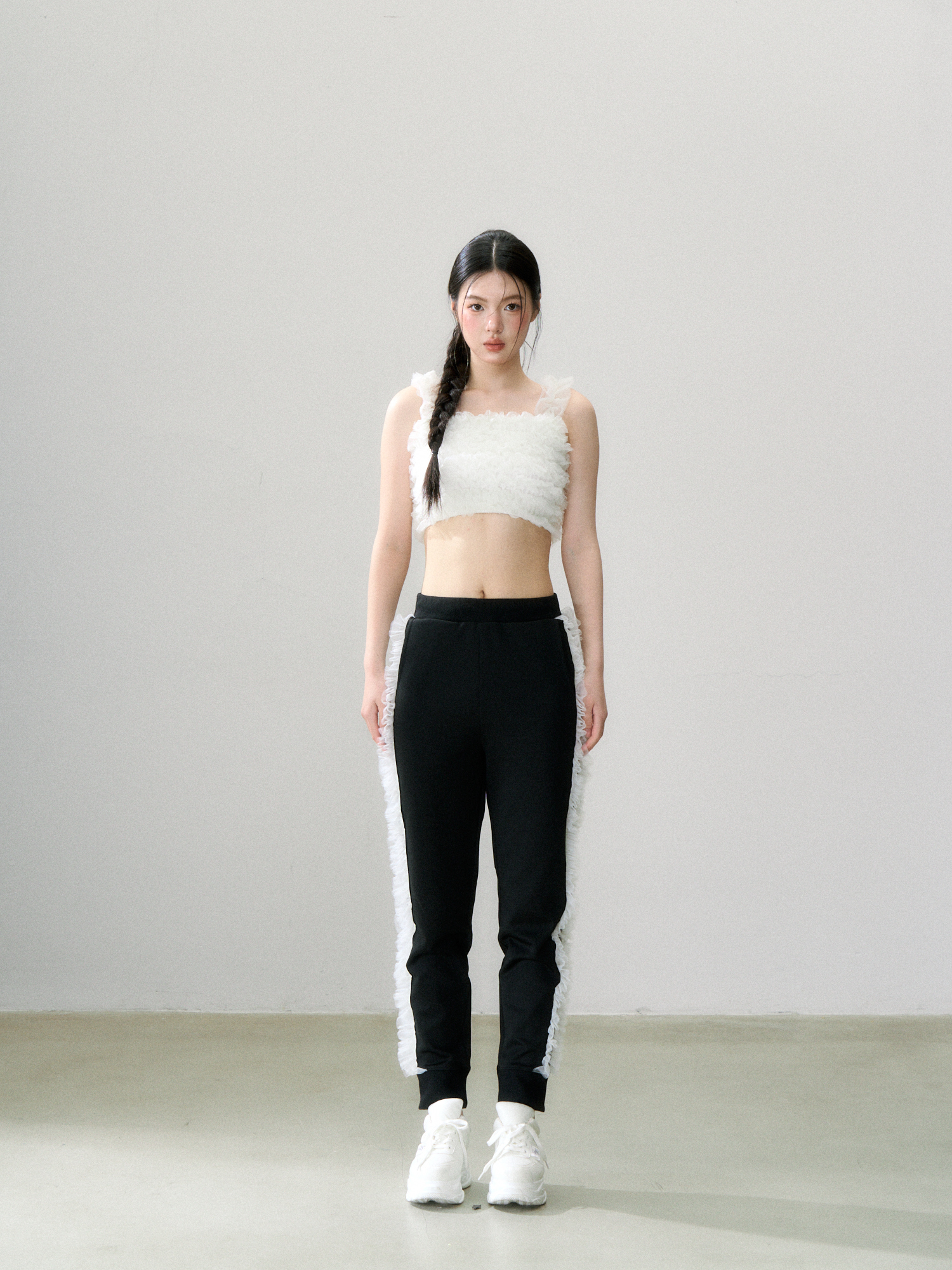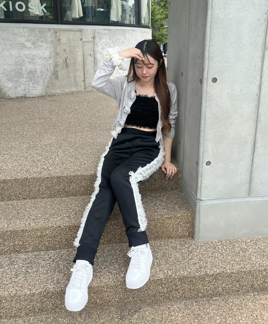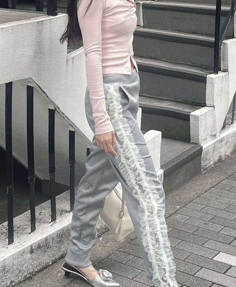 両サイドにあしらったたっぷりのチュールフリルが目を引く、甘さとラフさを兼ね備えた一本。