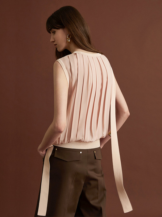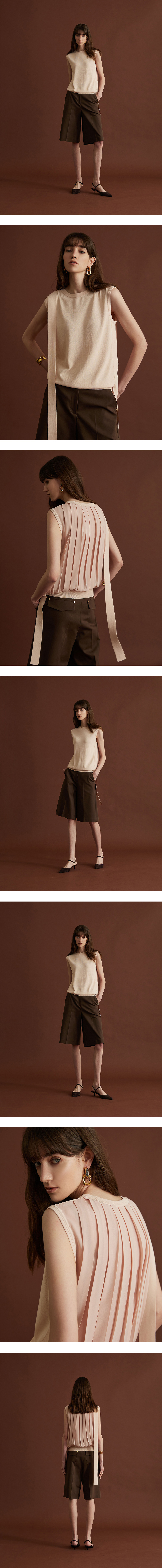세련된 우아함이 돋보이는 플리츠 디테일 블라우스는 뒷면의 플리츠 디테일과 롱 스트랩이 포인트인