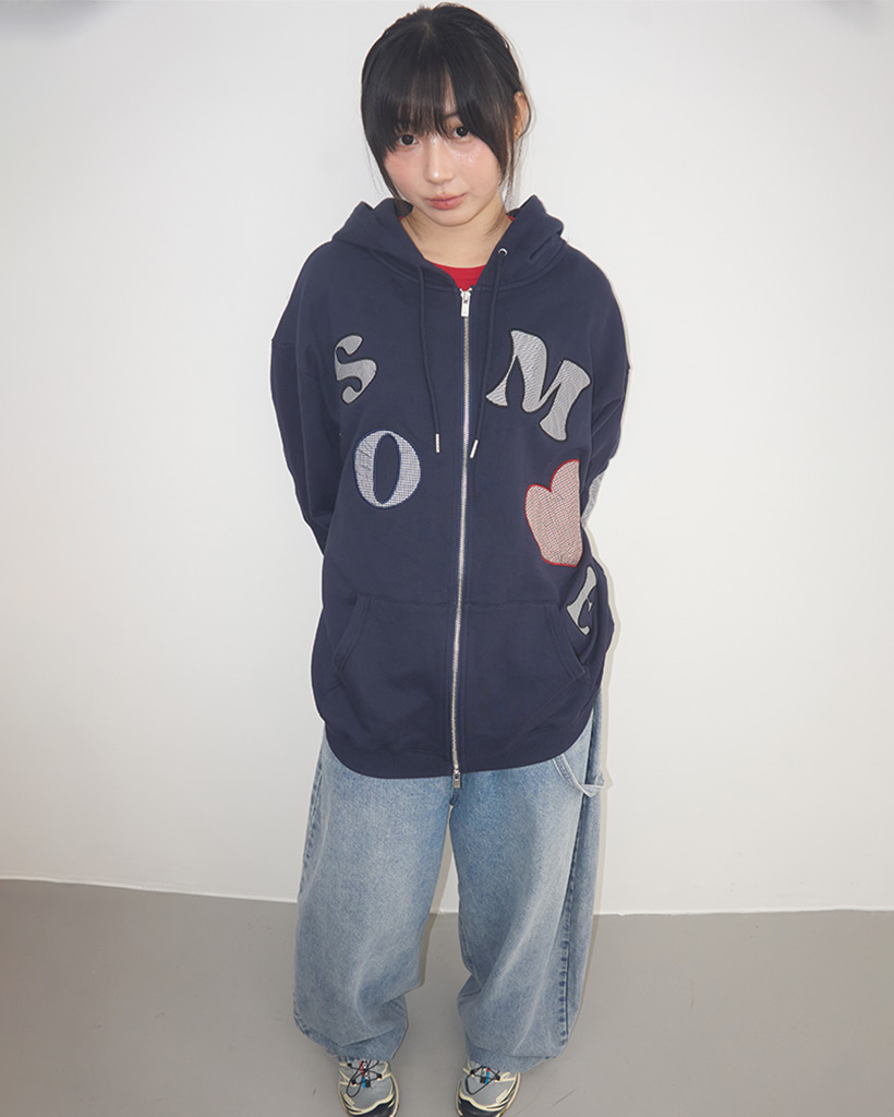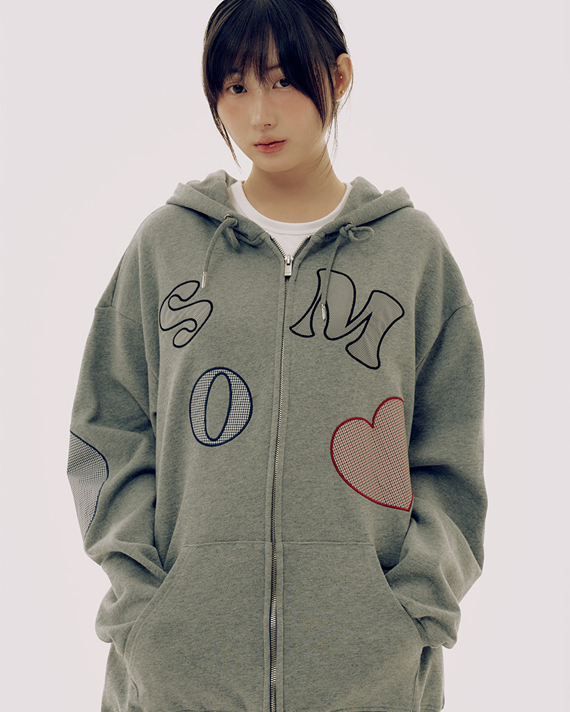 Some Logo Patch Mix Applique Two-Way Overfit Sweat Hoodie_3COLOR
