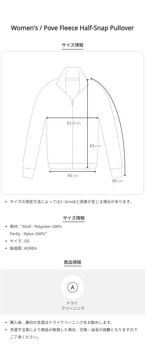 ※ フリース特性により、保管および着用時に毛抜けが発生する場合がありますので、洗濯後の着用をおすすめします。