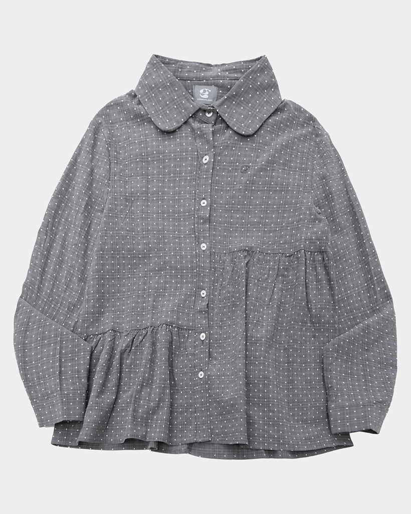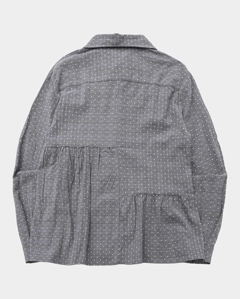 Dot Unbalanced Frill Layered Lovely Long Sleeve Blouse Shirt [Gray]