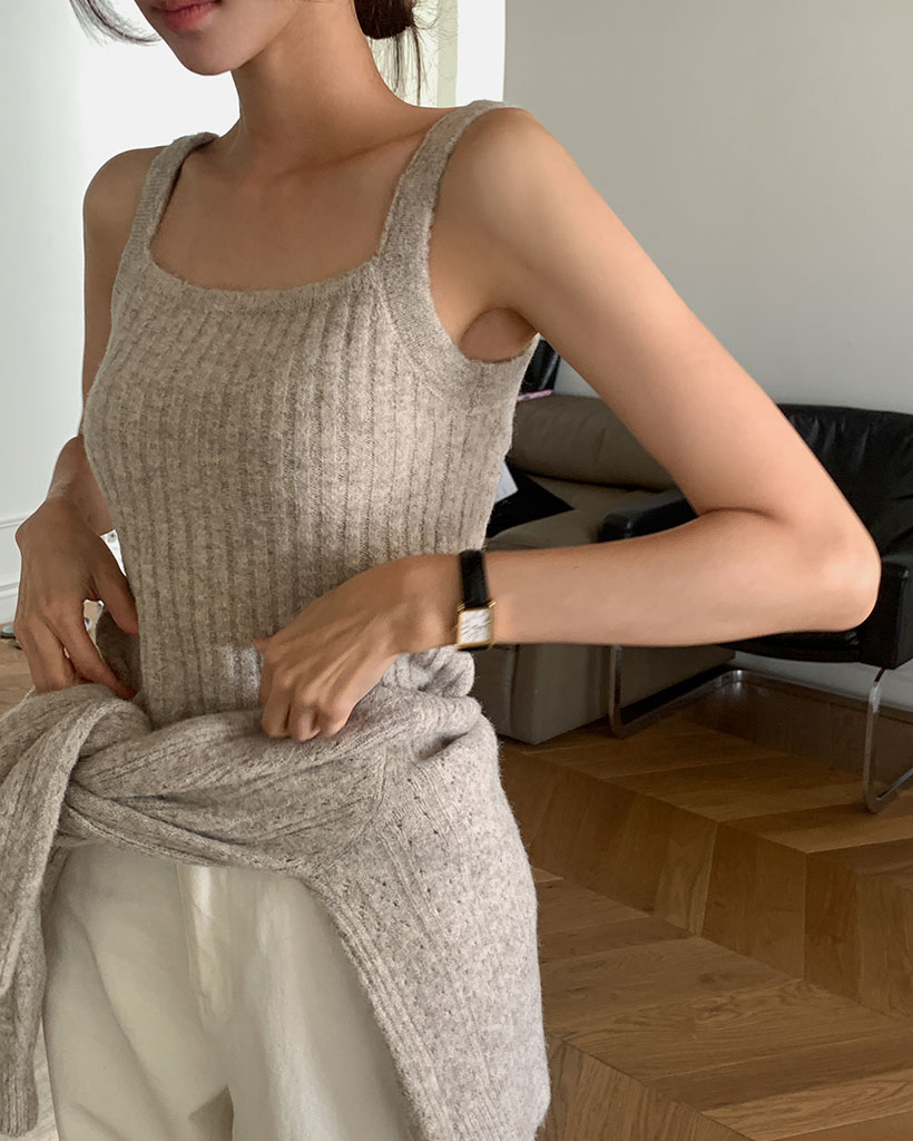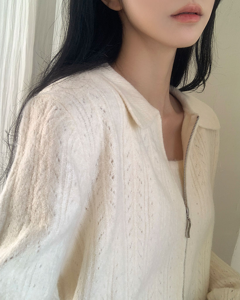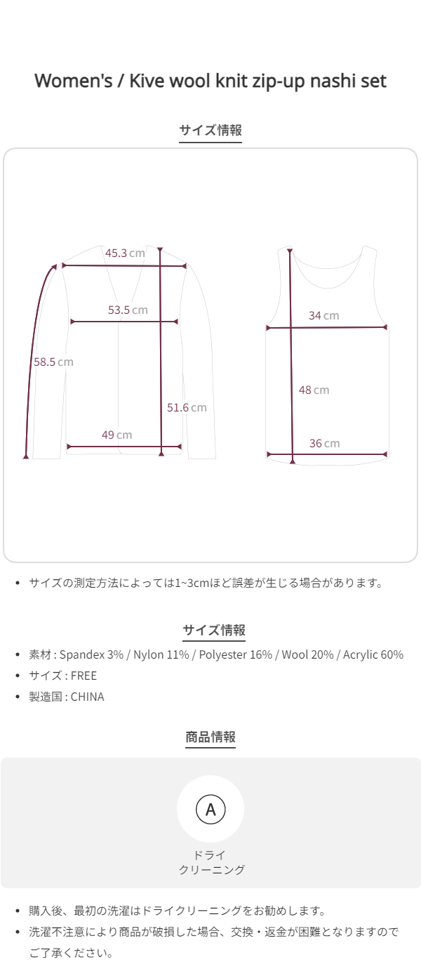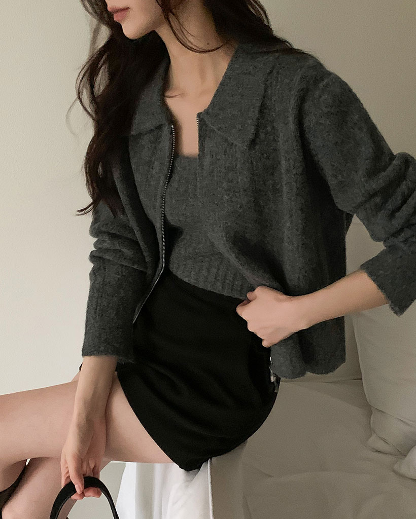 Kive wool knit zip-up nashi set