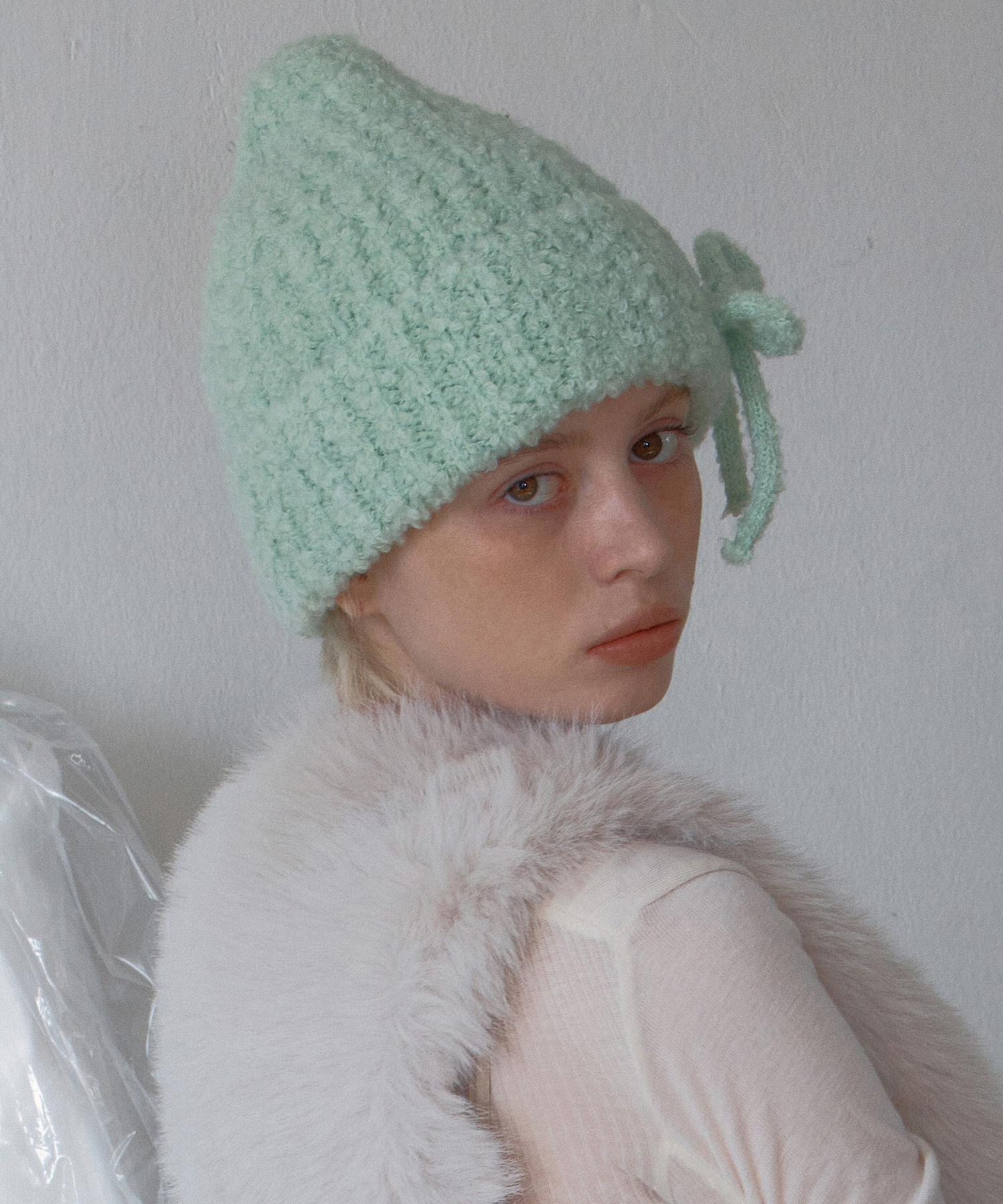 RIBBON BEANIE / MOHAIR BOUCLE / ML(冬 リボン ビニ)