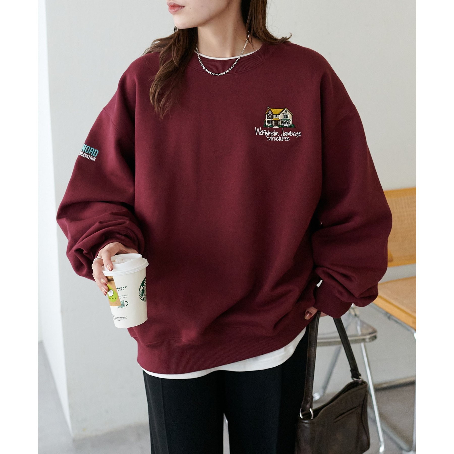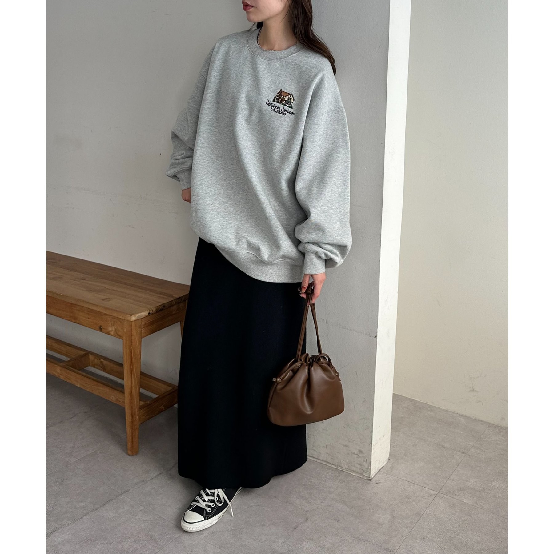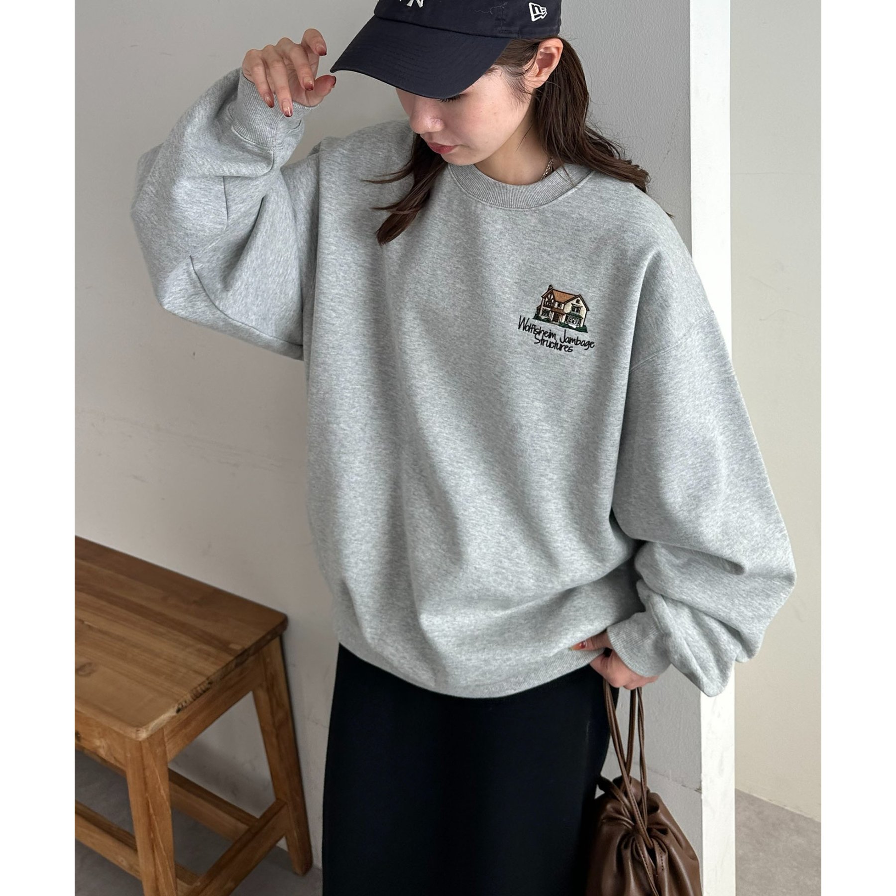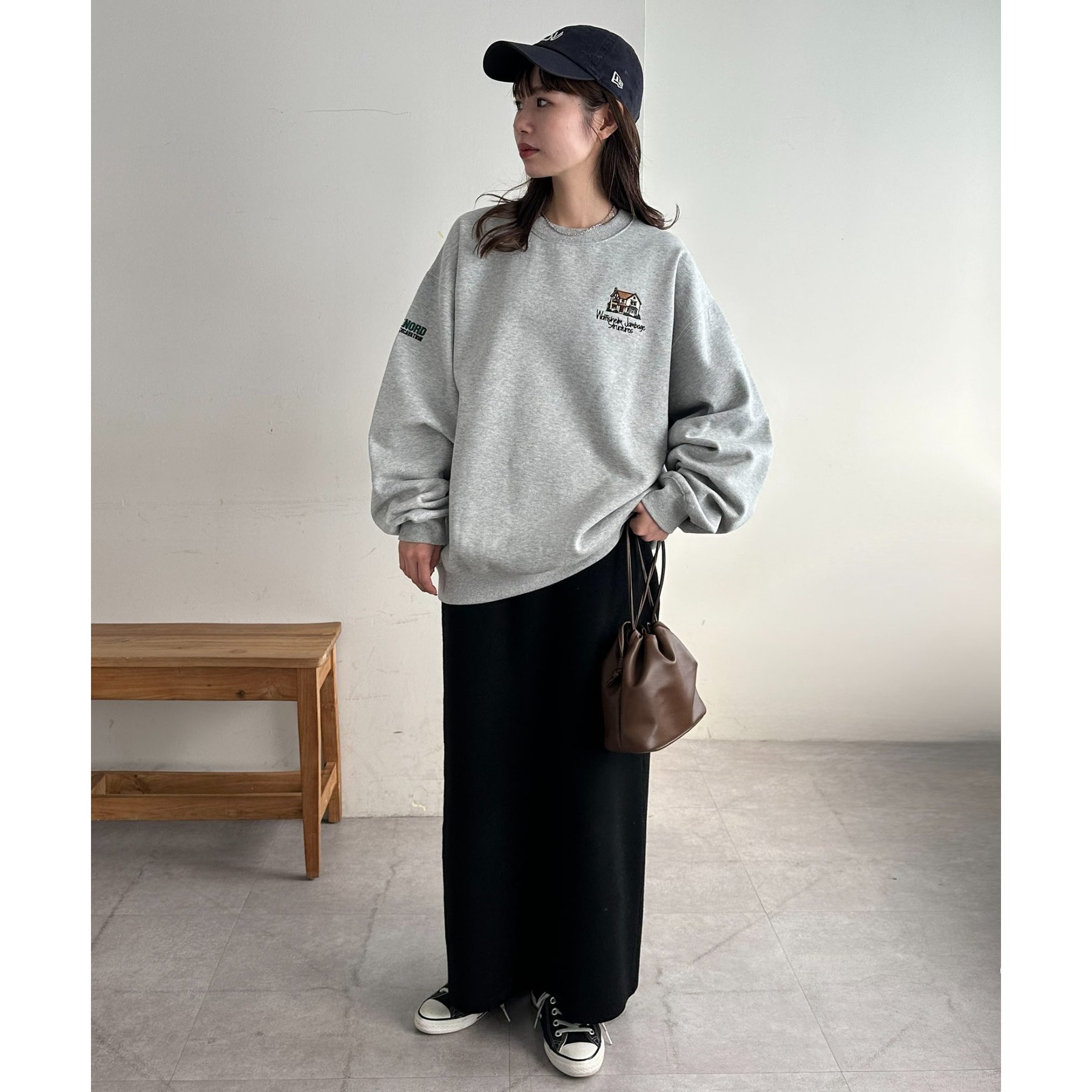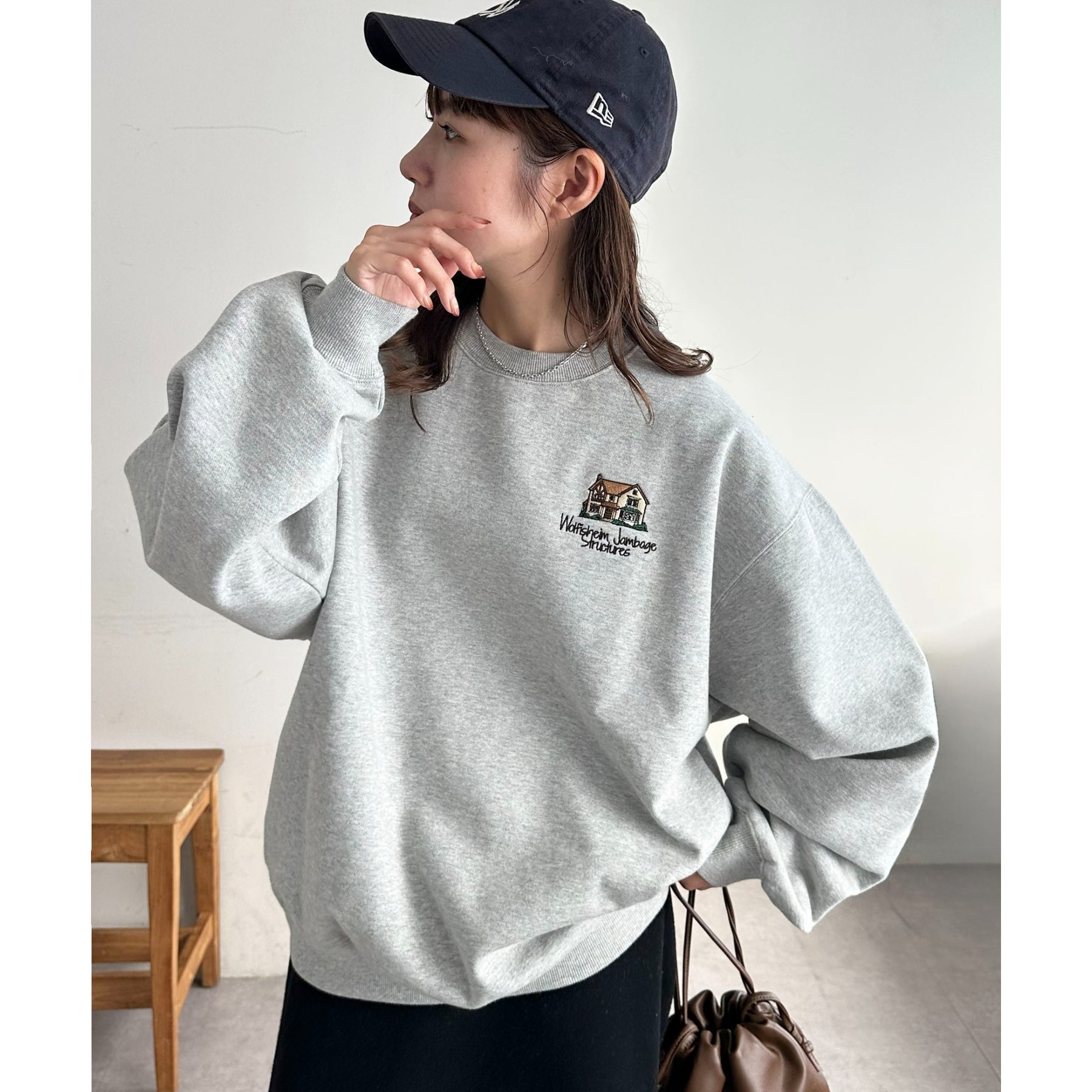 162cmレディーススタッフ:スウェットですが、ワンポイントのデザインなので、カジュアル感が出すぎないのが良い!