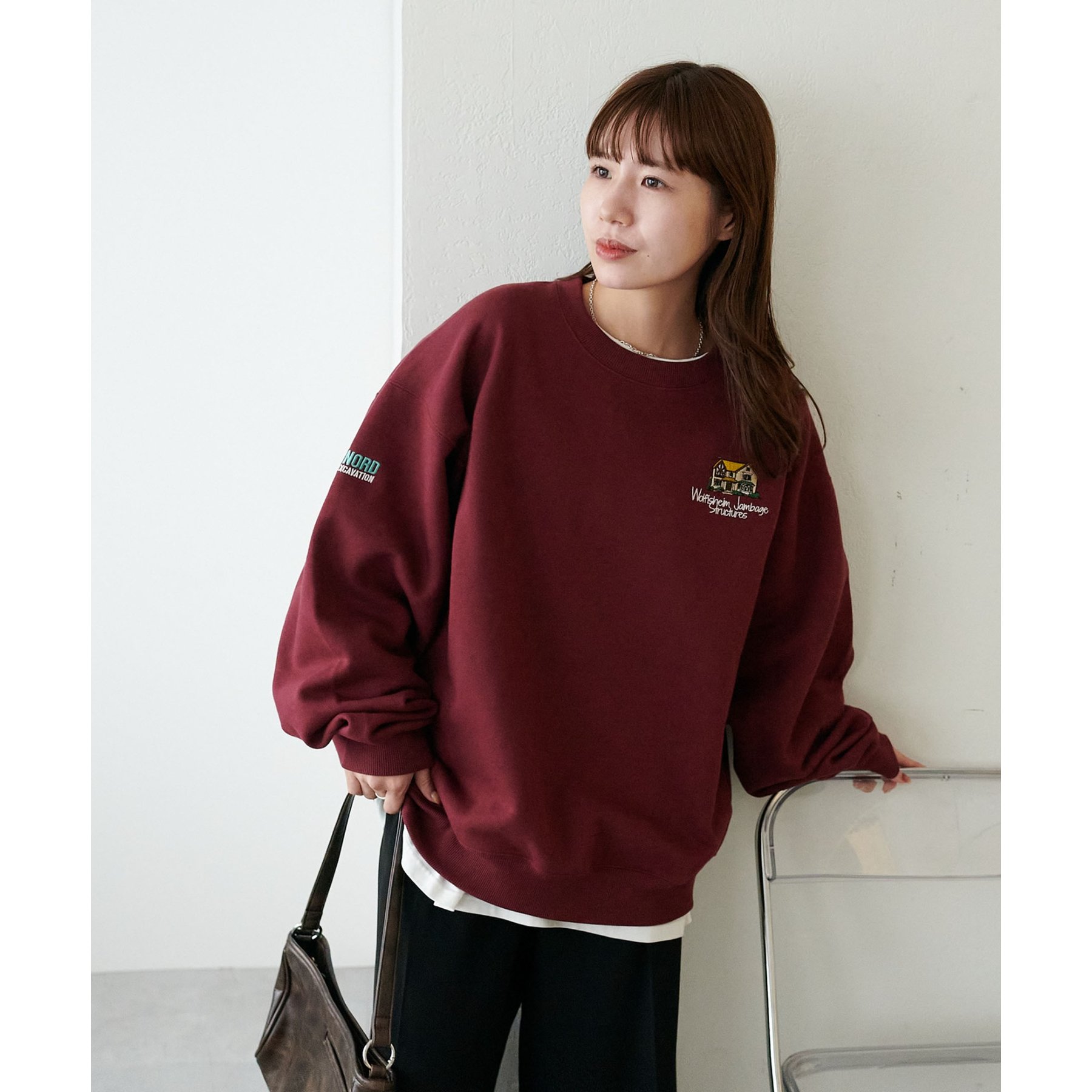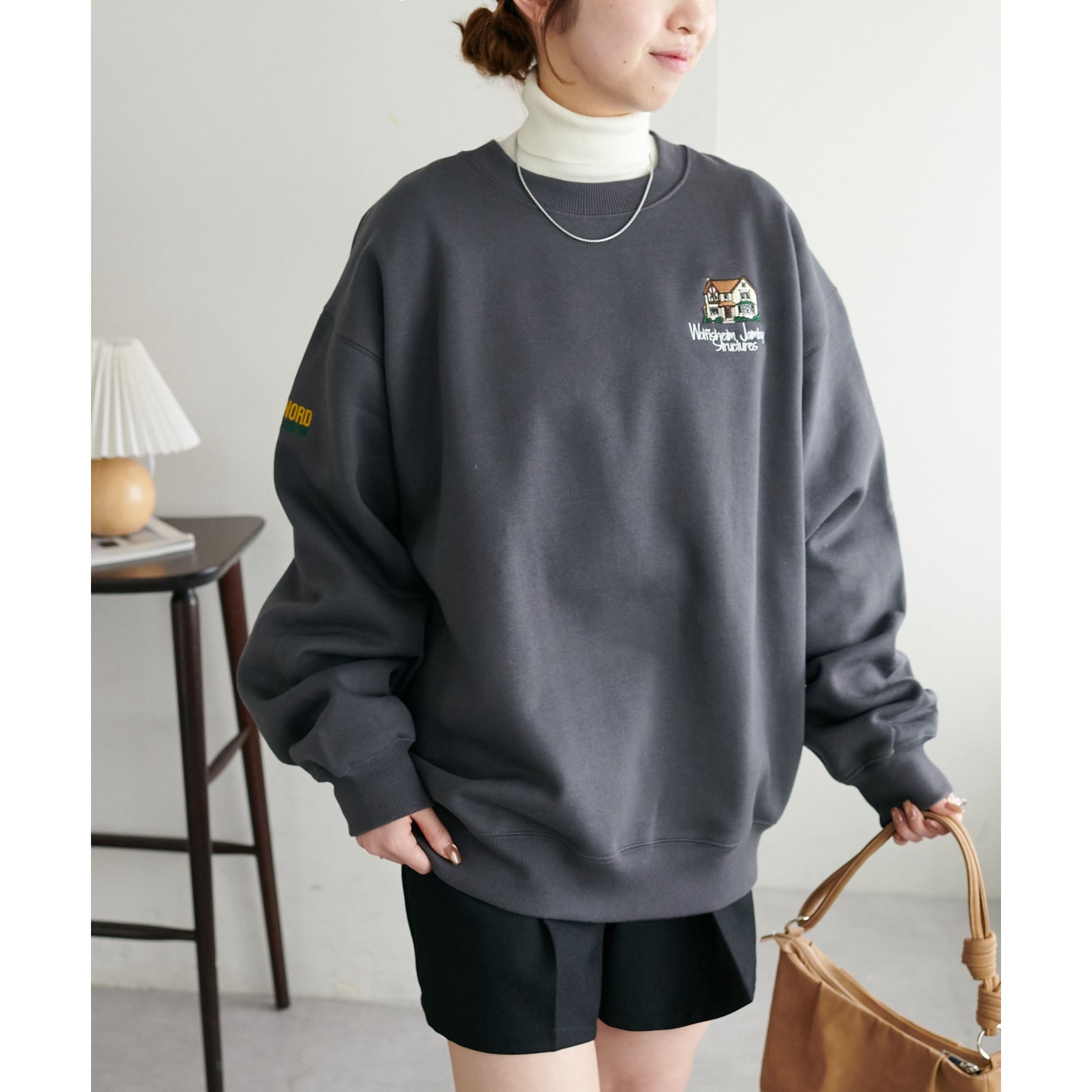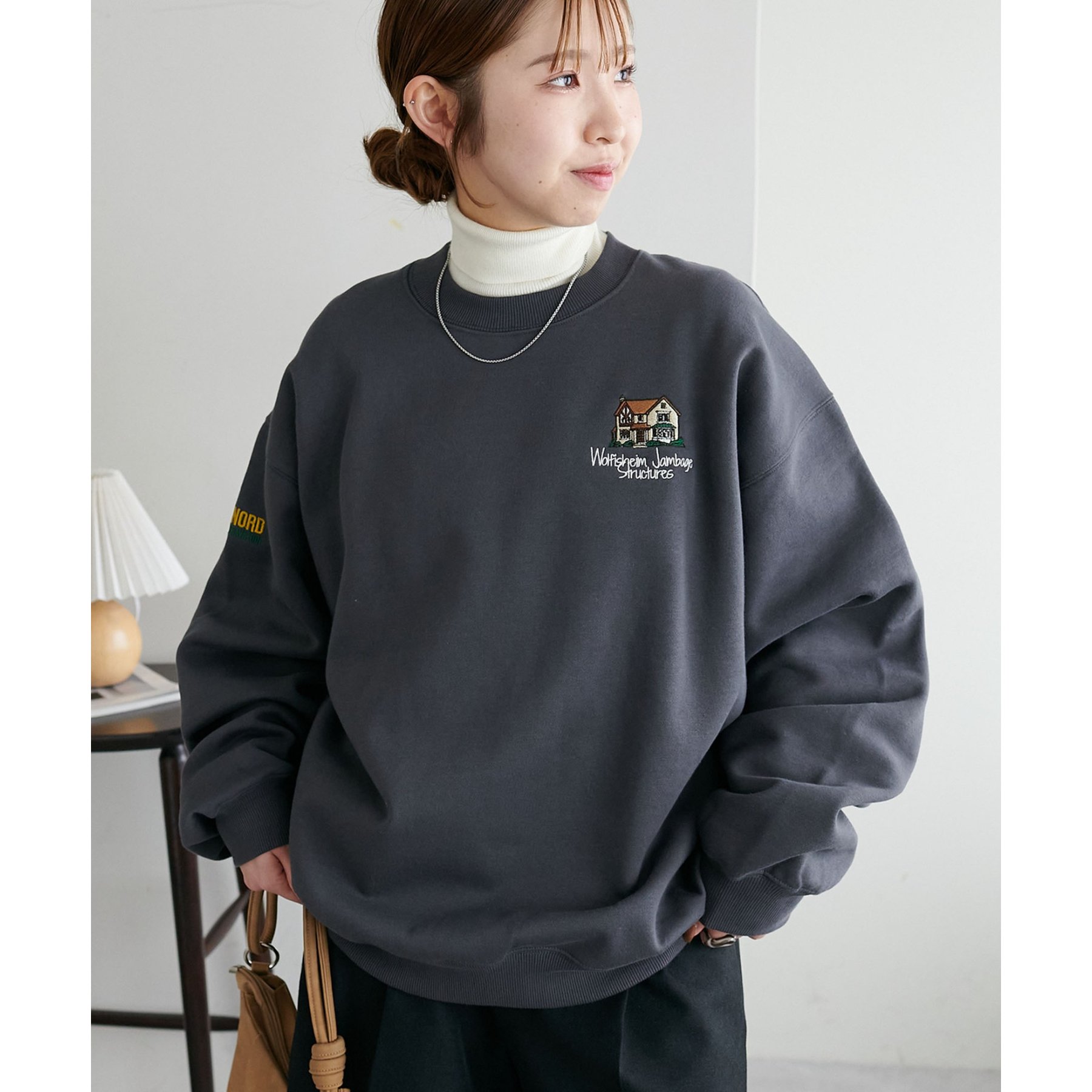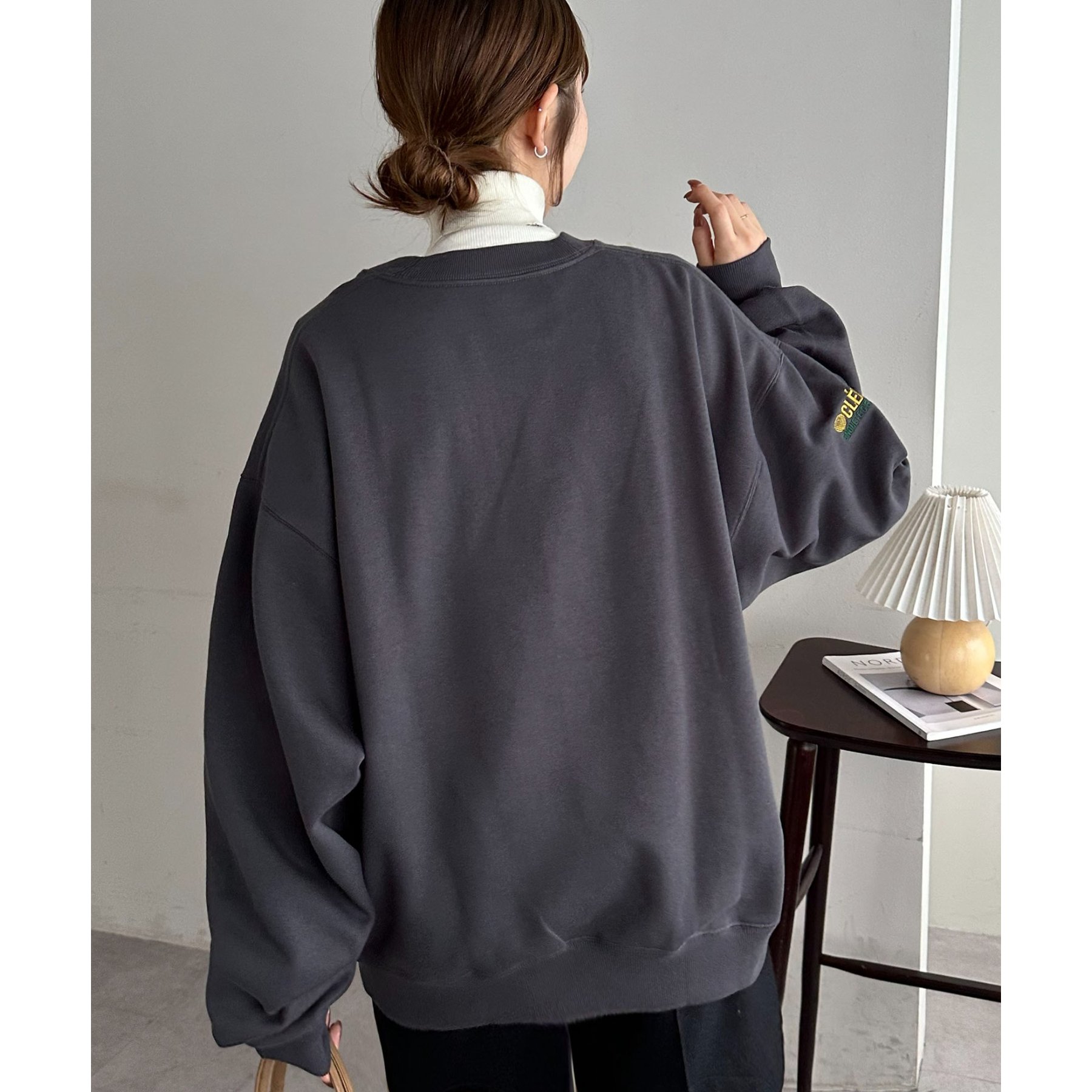 155cmレディーススタッフ:ユニセックスのアイテムなので、ゆったりとした着心地です。裏起毛で一枚で着ても暖かいですが、真冬はシャツやタートルネックをインナーに忍ばせてレイヤードコーデにしたいです◎