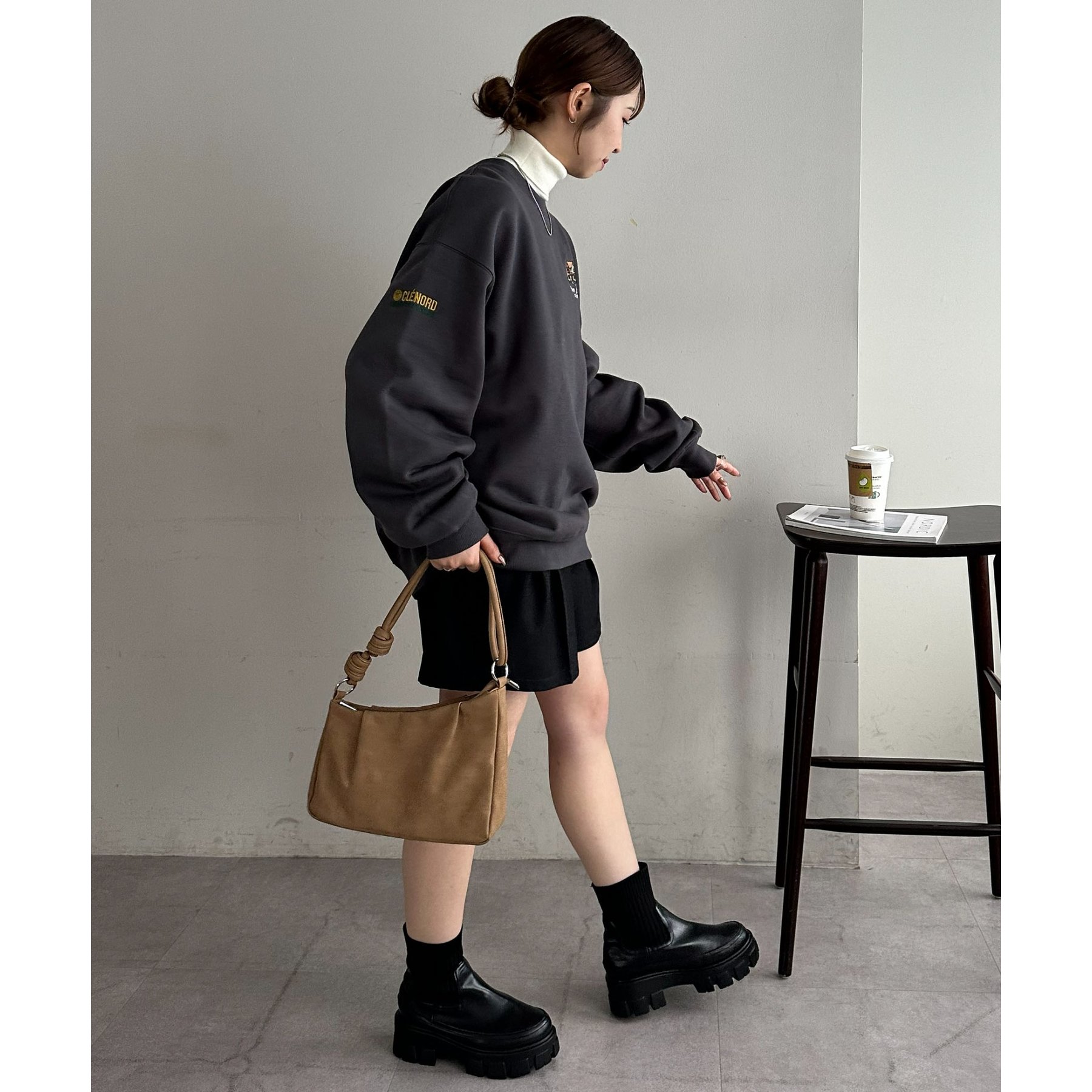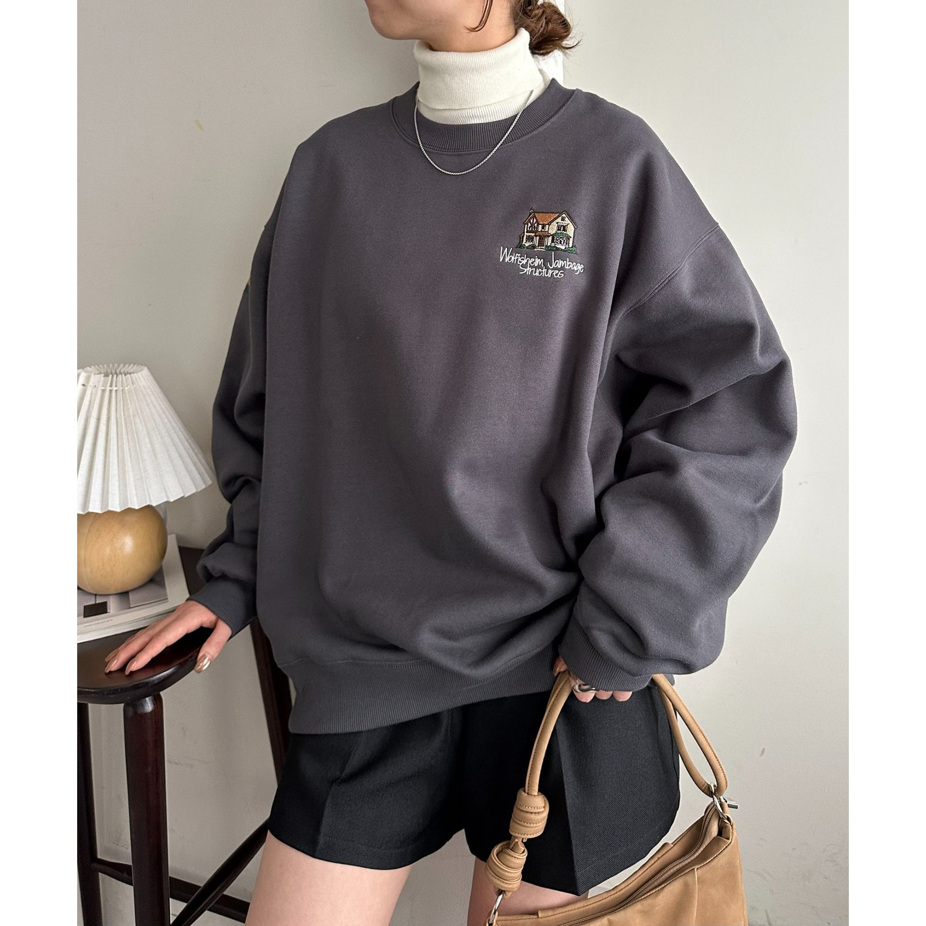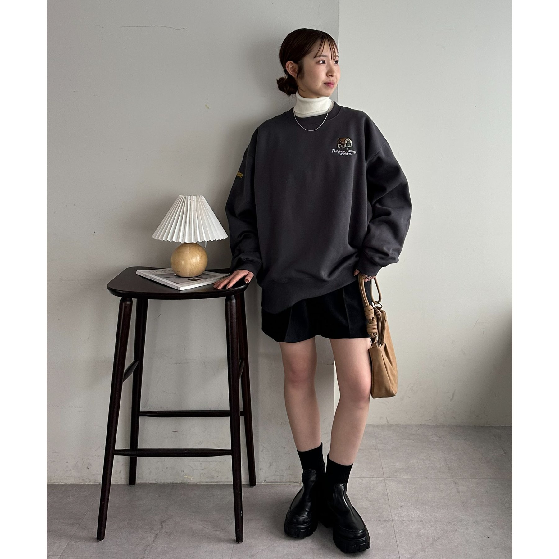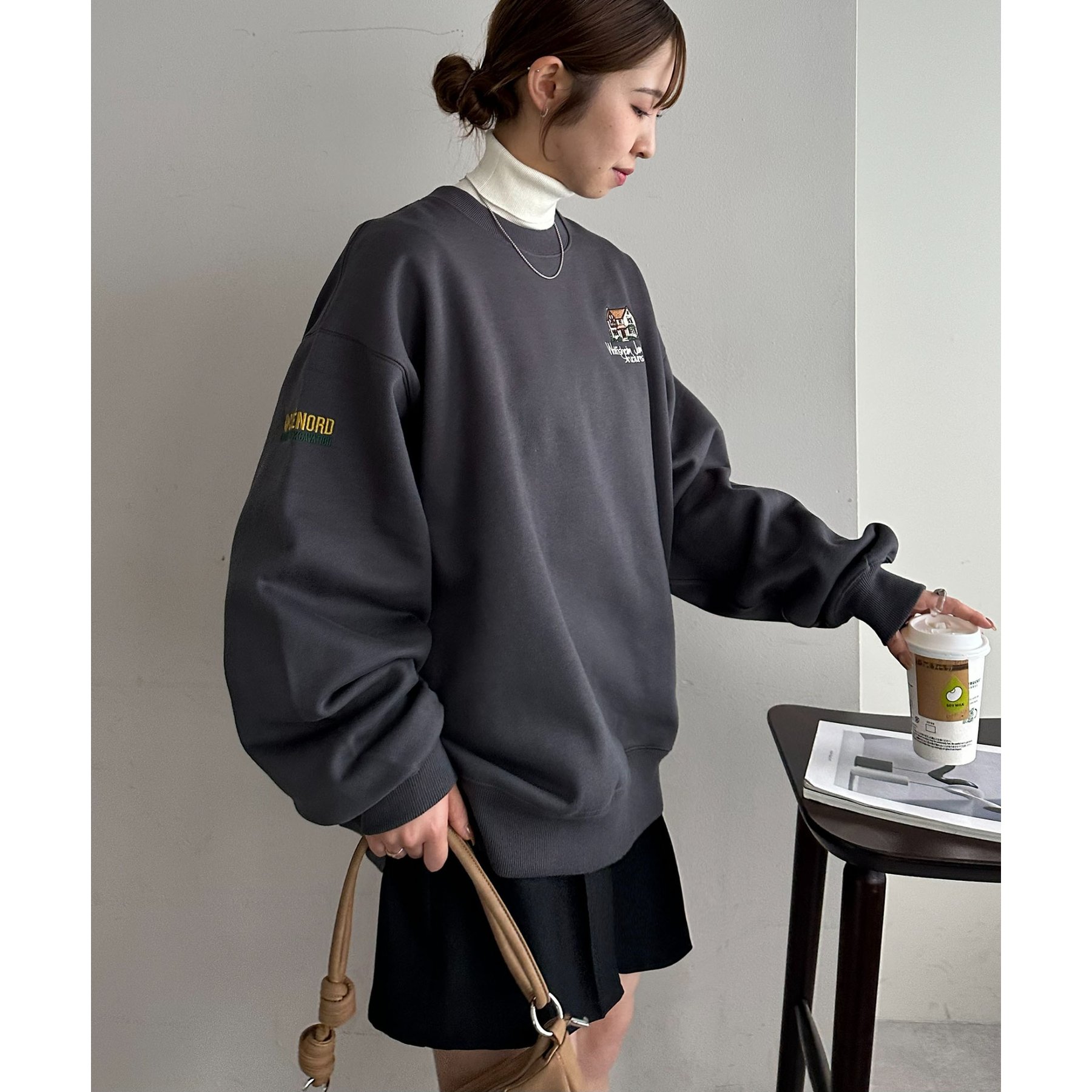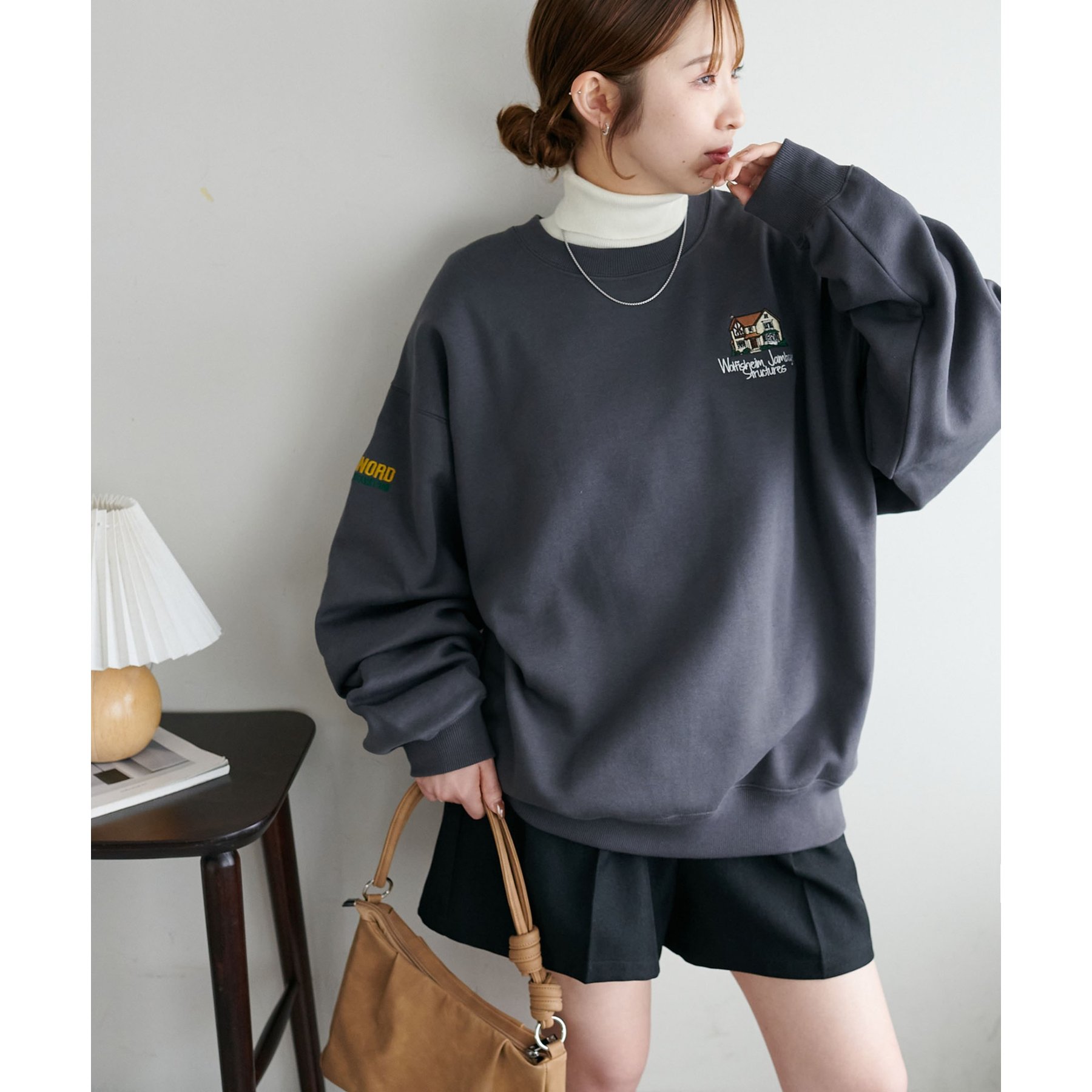 155cmレディーススタッフ:ユニセックスのアイテムなので、ゆったりとした着心地です。裏起毛で一枚で着ても暖かいですが、真冬はシャツやタートルネックをインナーに忍ばせてレイヤードコーデにしたいです◎