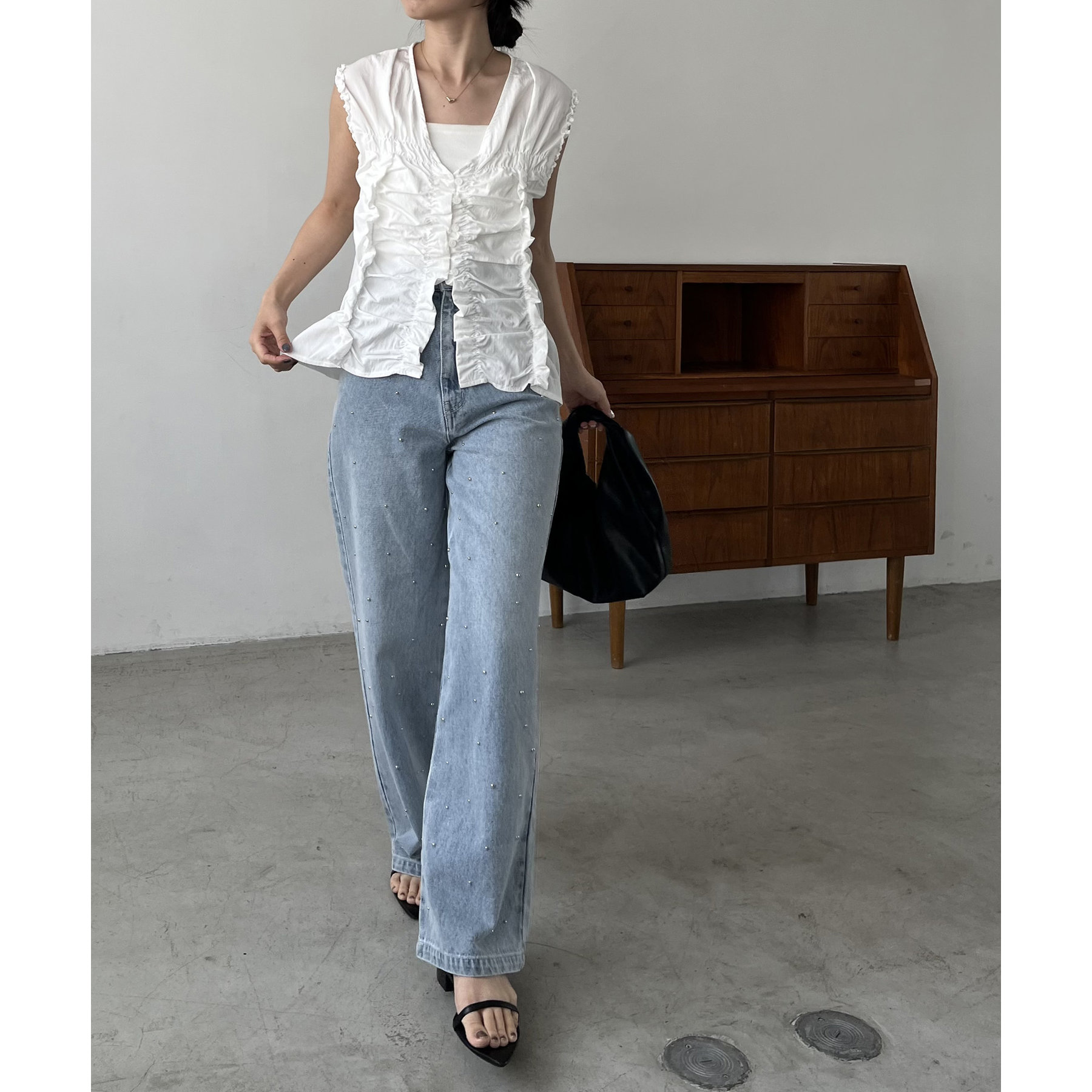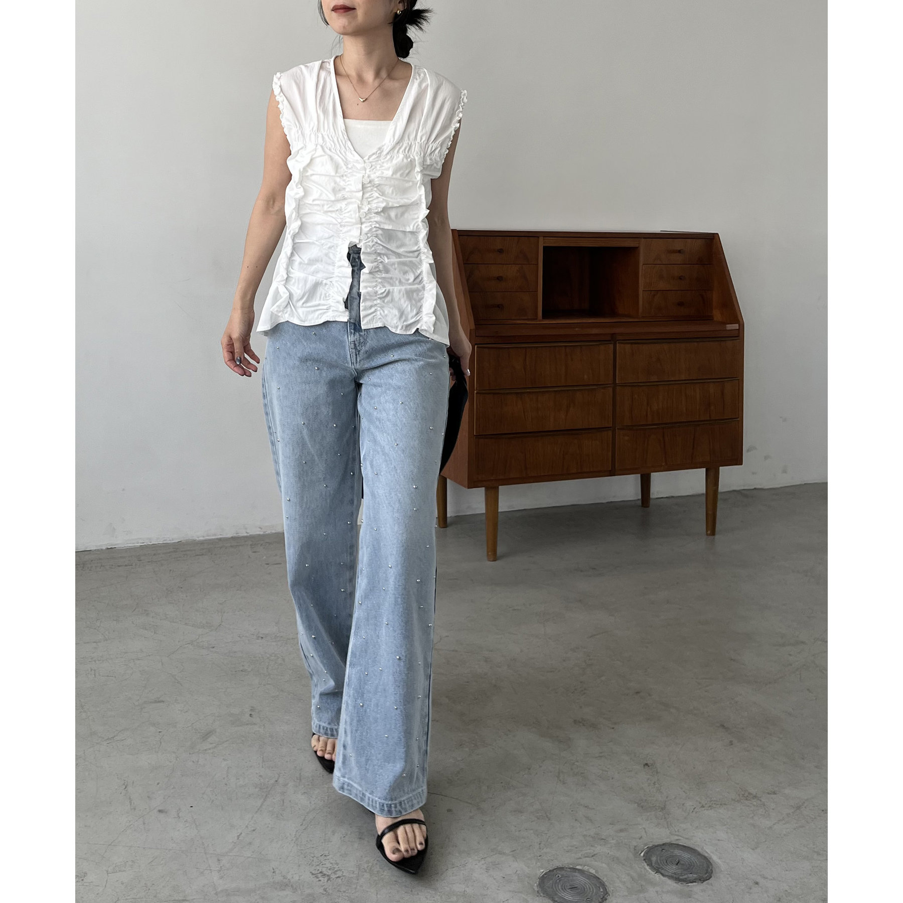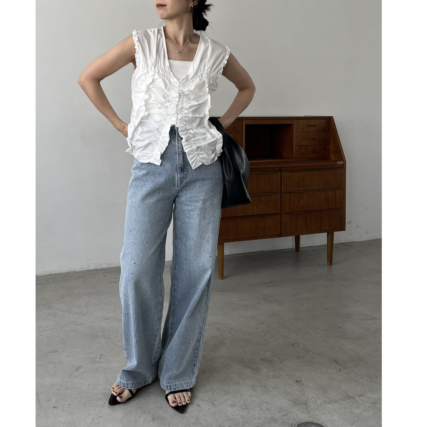 【ホワイト着用アイテム①】シルバードットデニム
