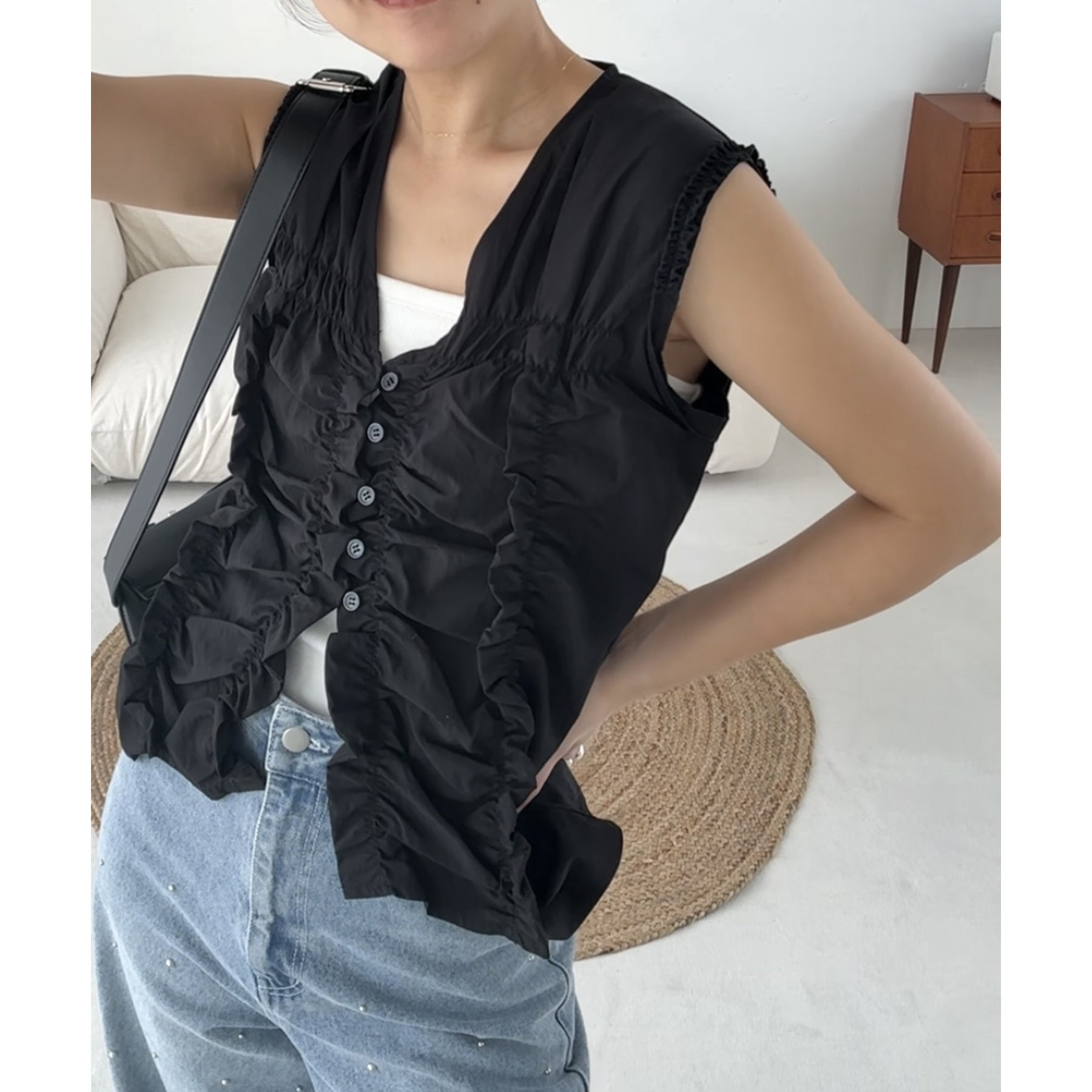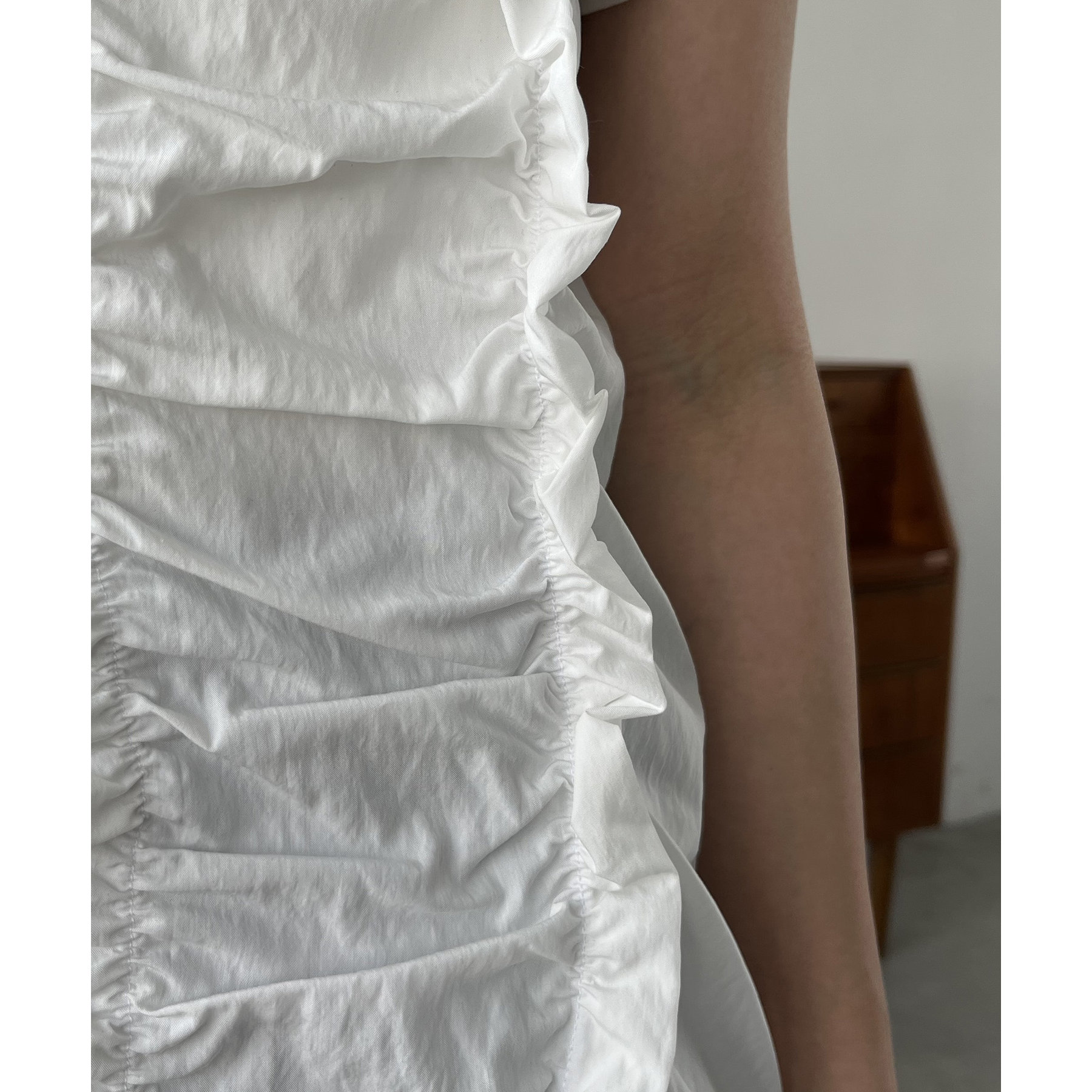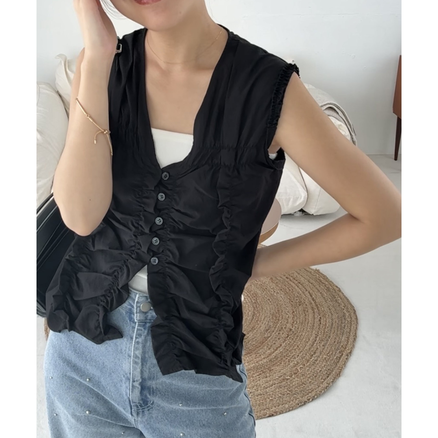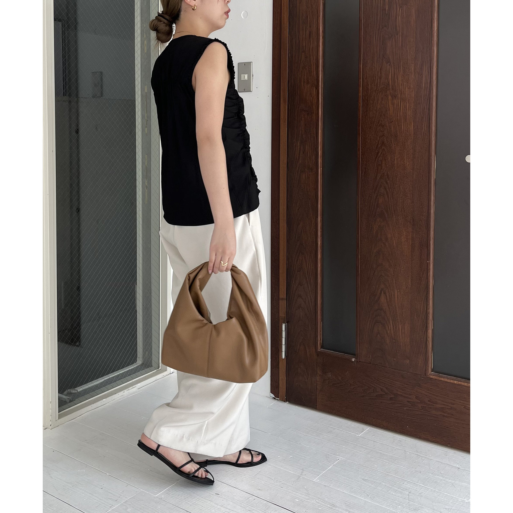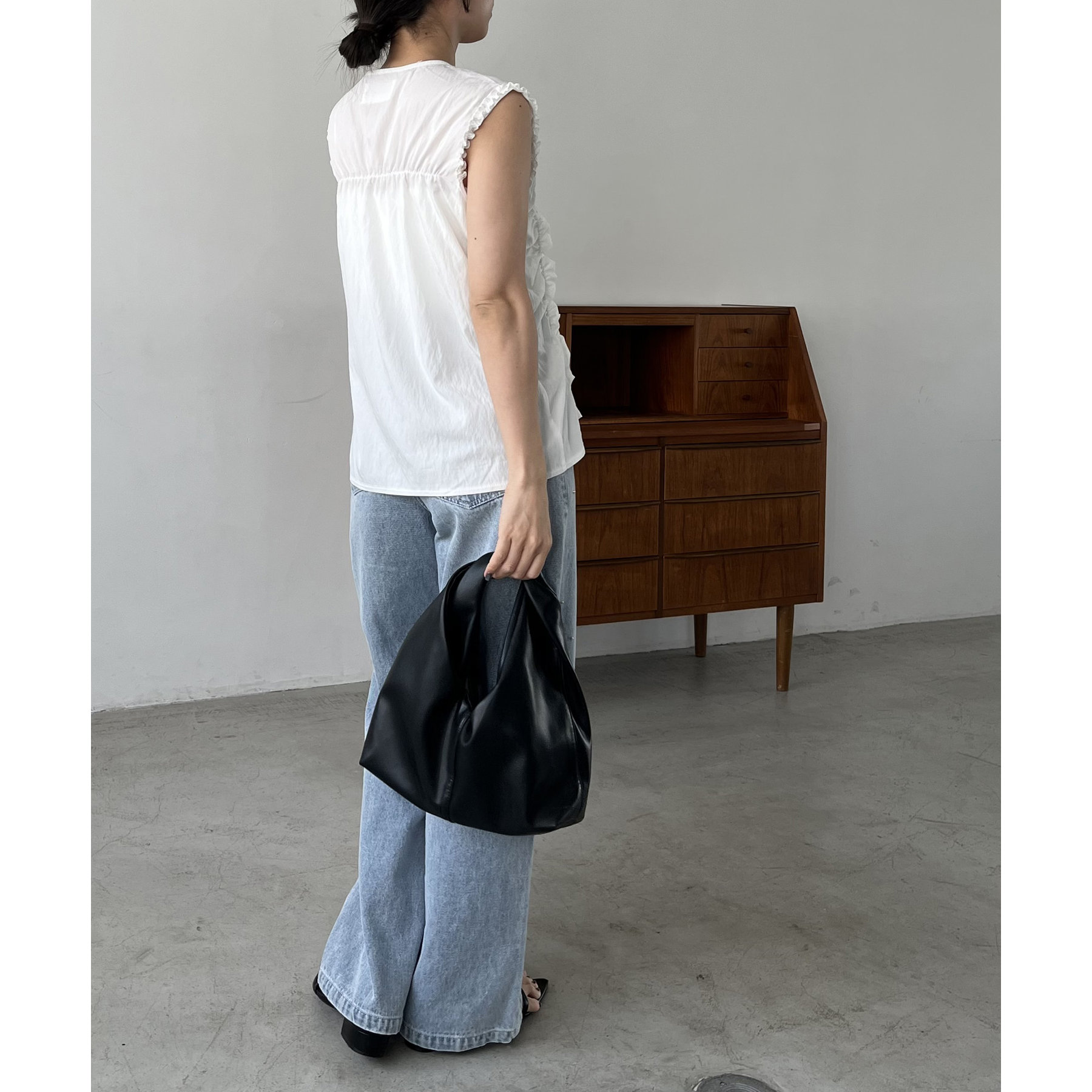 前面にたっぷりと入ったギャザーデザインがこなれ感をプラス