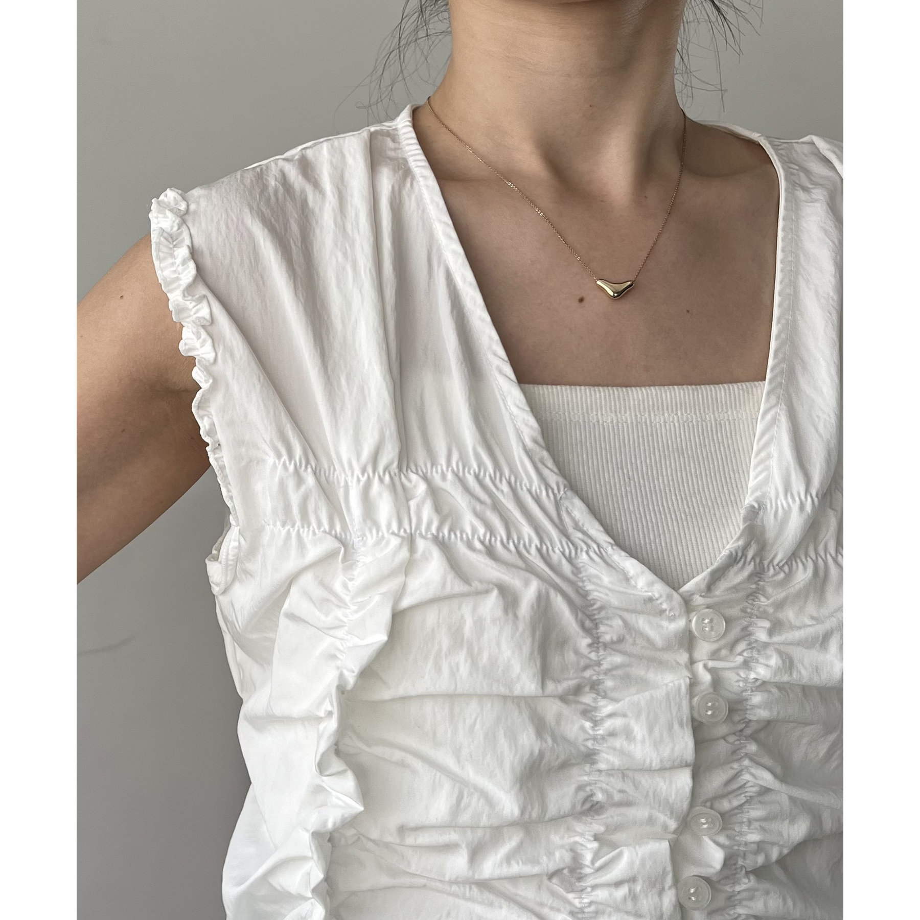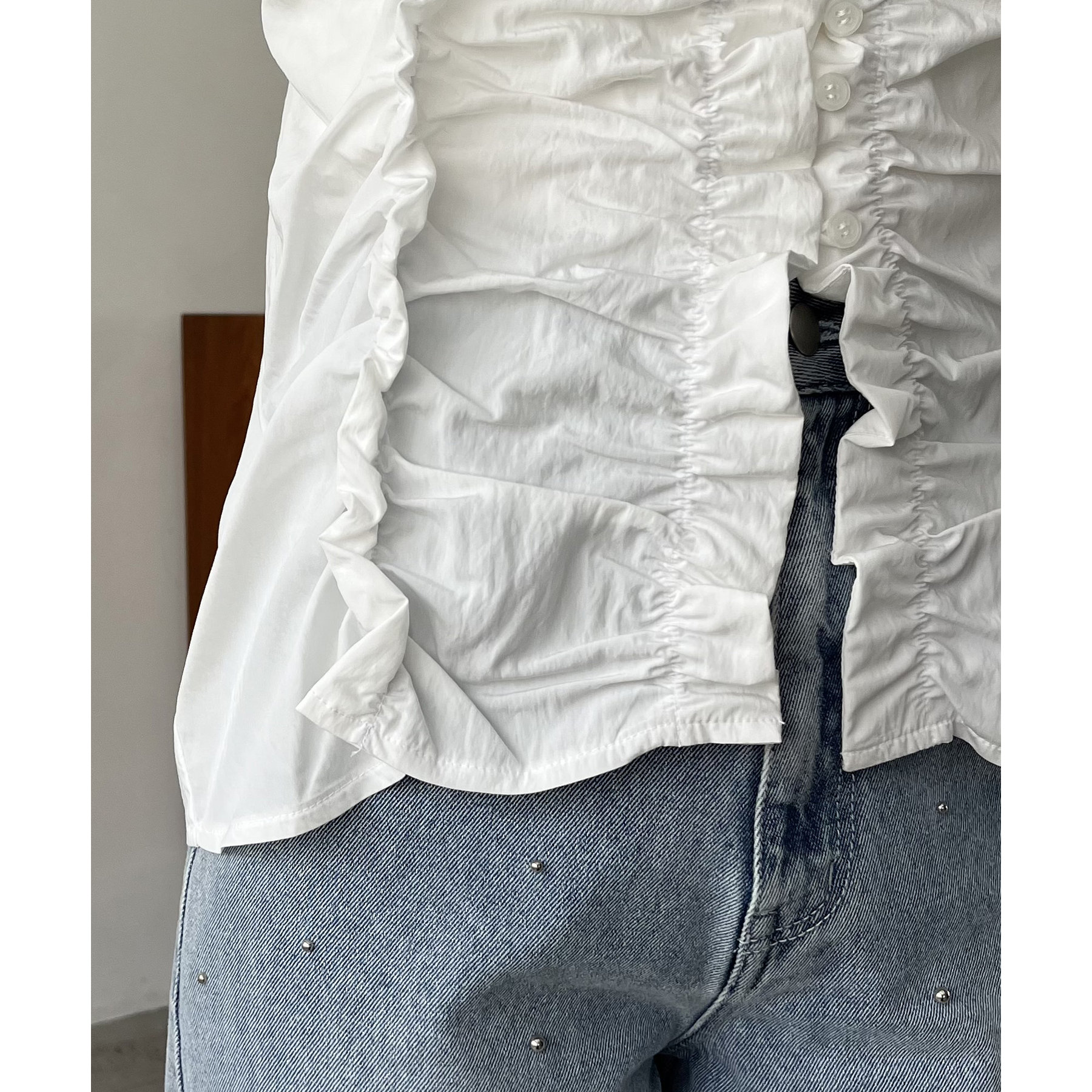 ・フロントがボタン仕様なので、お好みの開き感で着られる