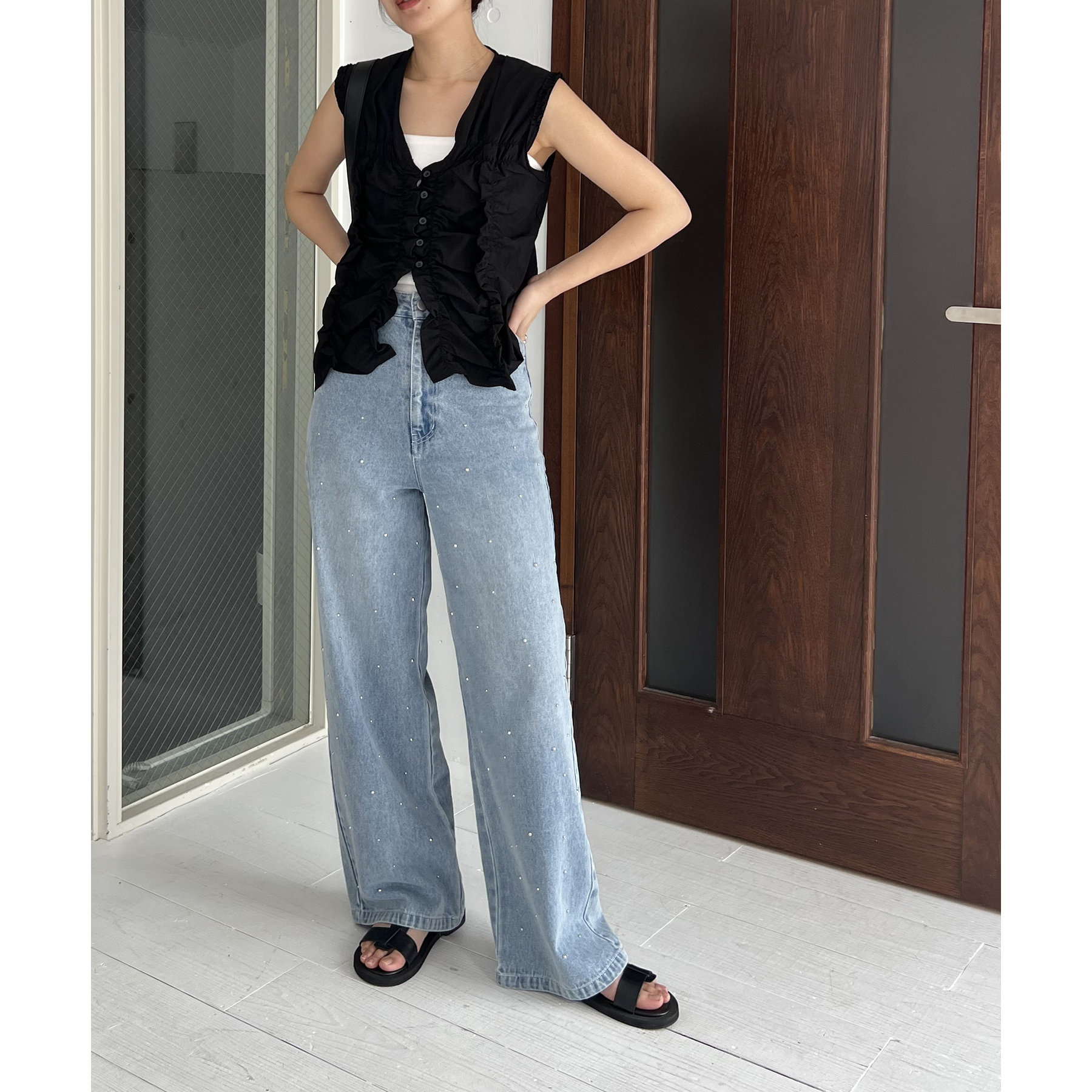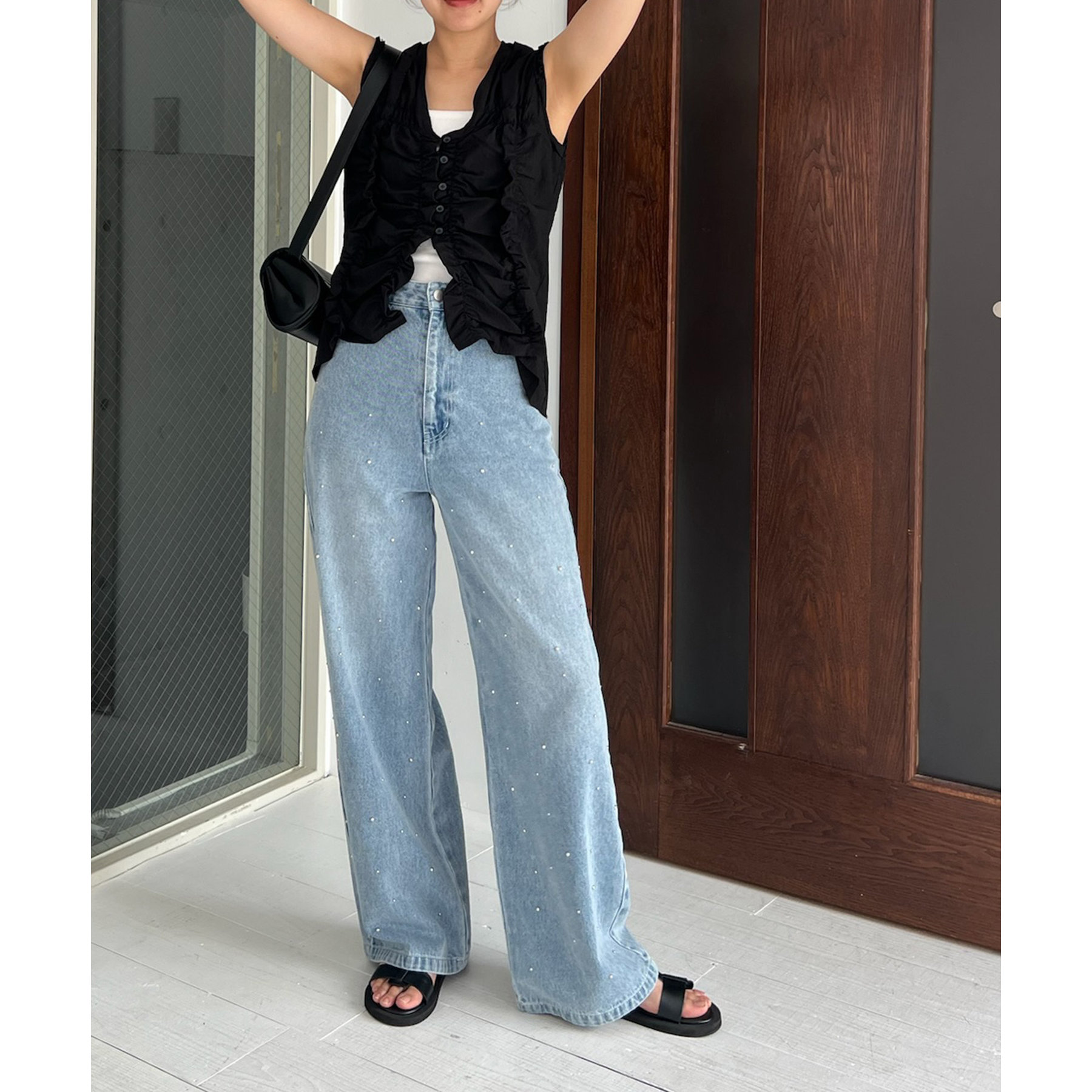 【ブラック着用アイテム②】シルバードットデニム