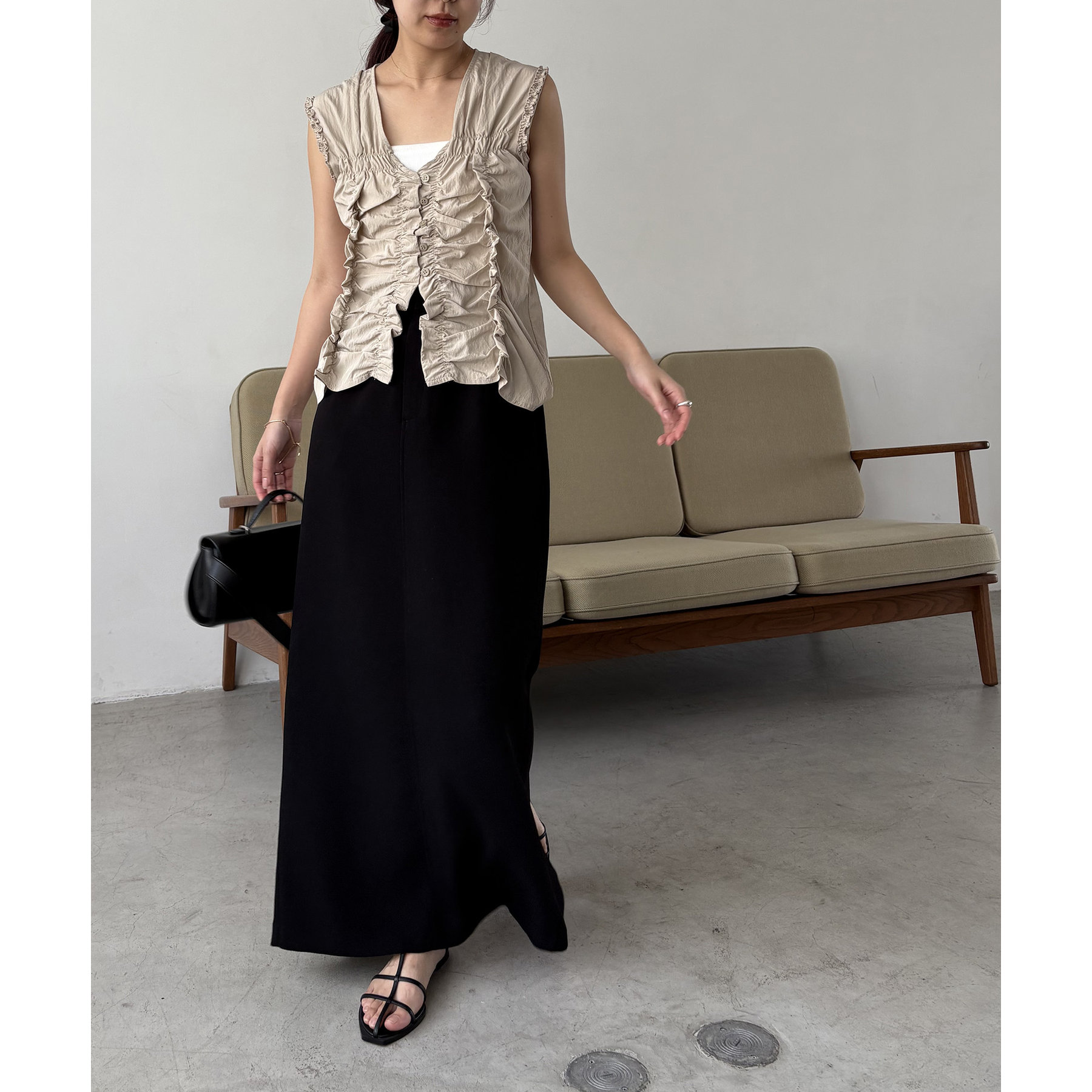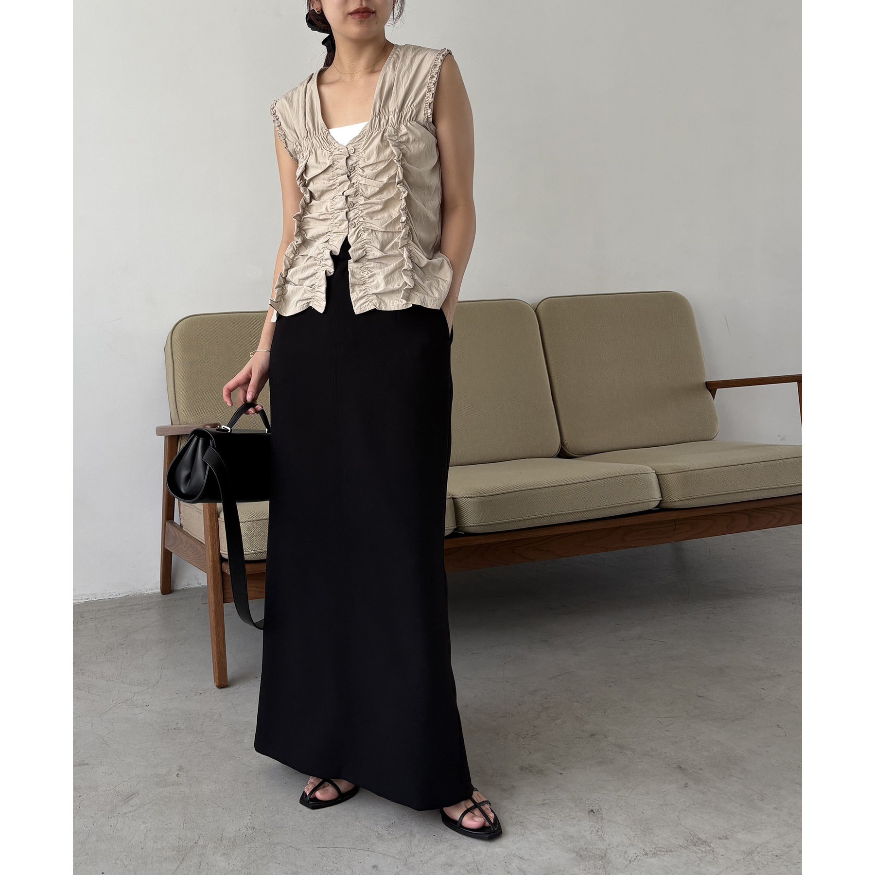 【ベージュ着用アイテム】マキシIラインスカート