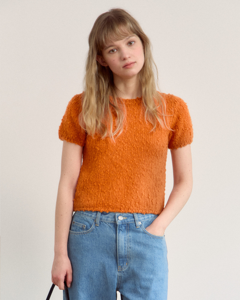 ウールの含有量が高く、糸の編み目を程よくゆるめて仕上げたことで、ふんわりとしたボリューム感と、どこか愛らしい雰囲気を漂わせています。