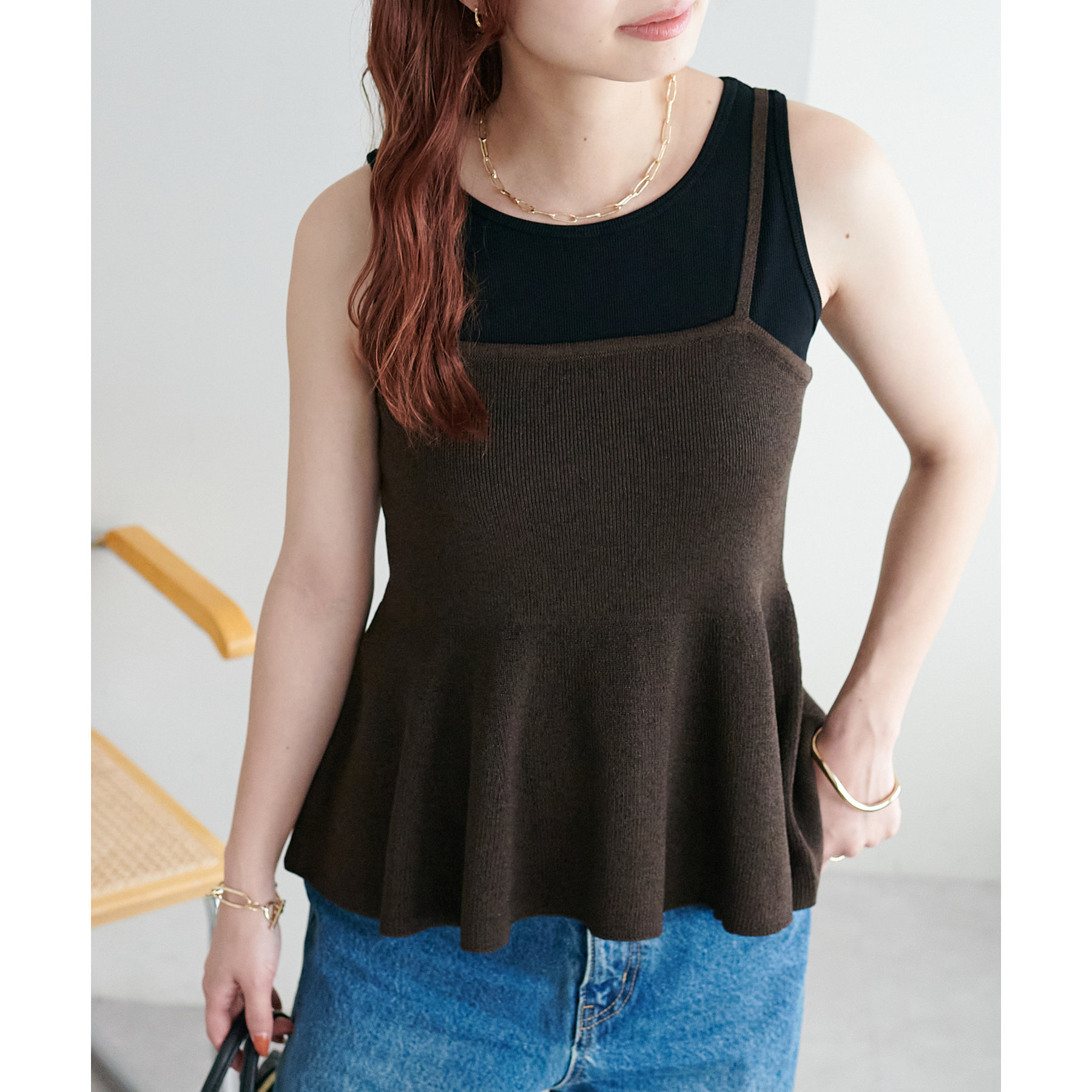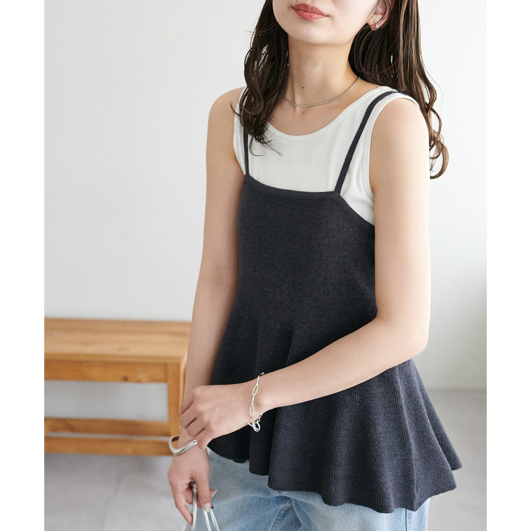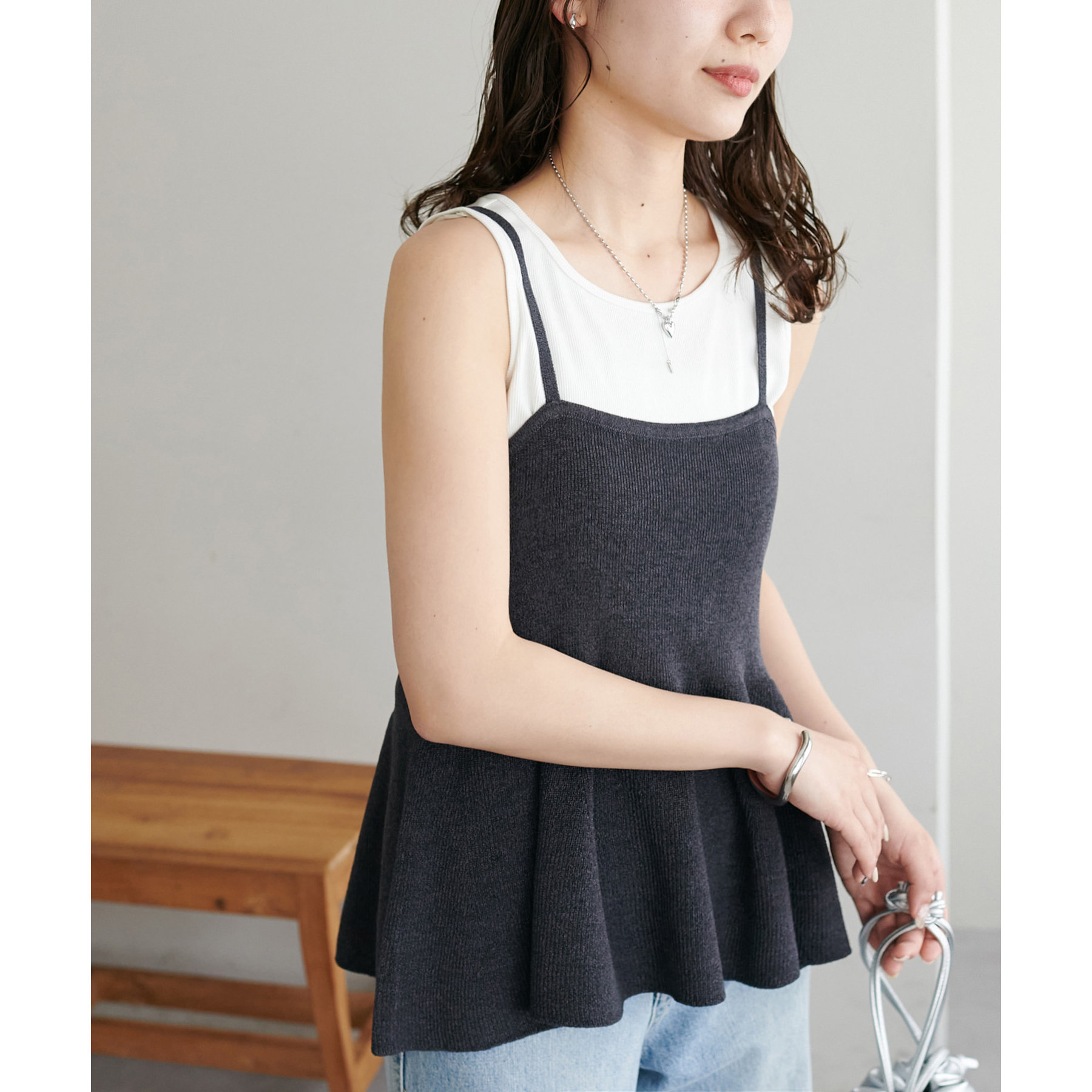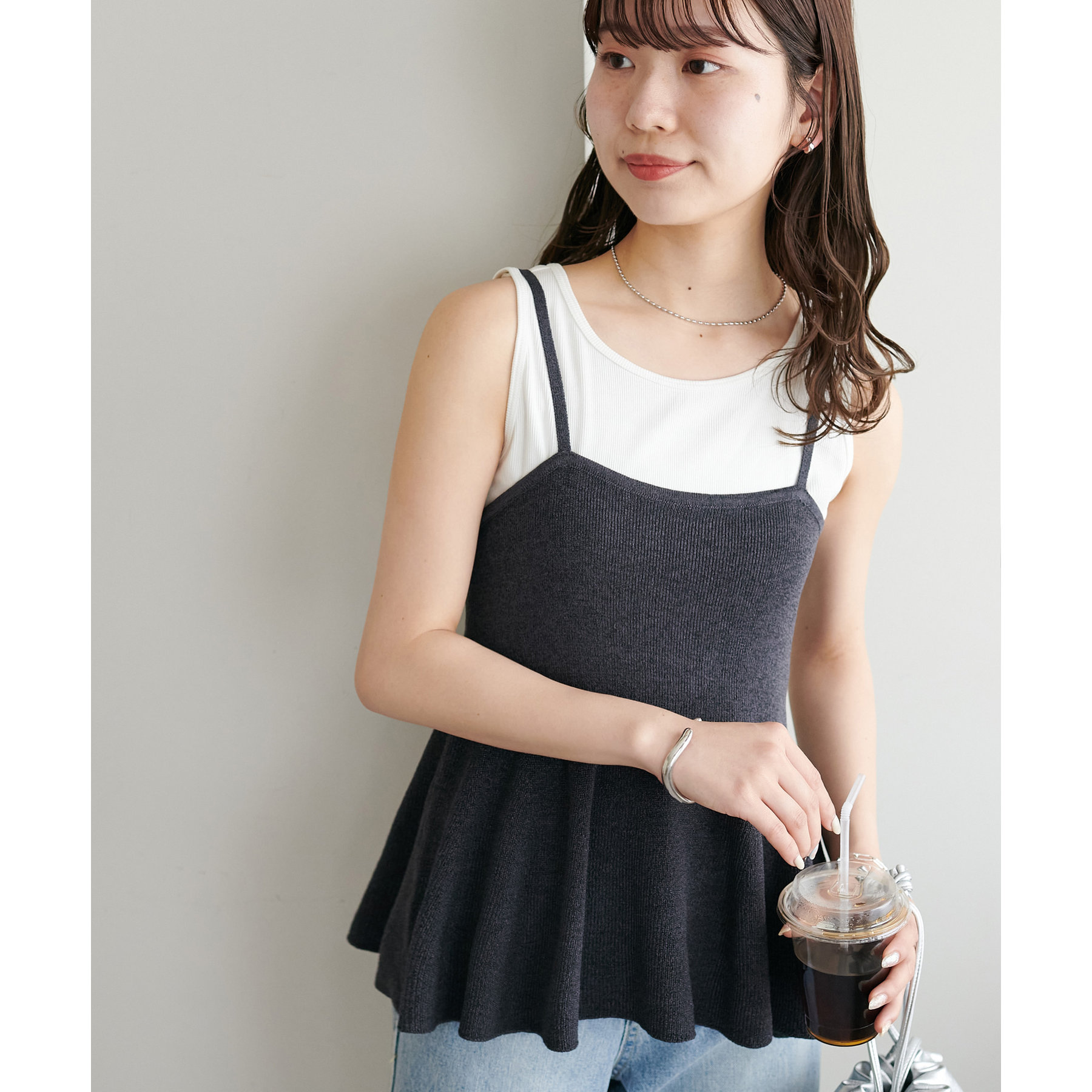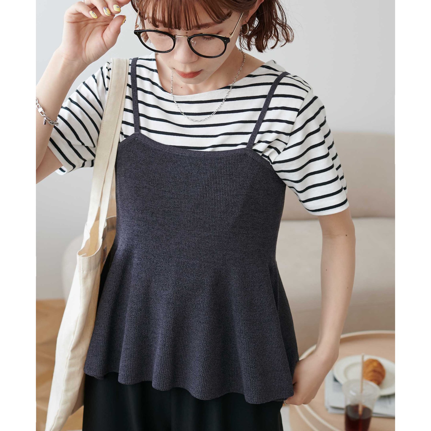 女性らしさ溢れるペプラムキャミ