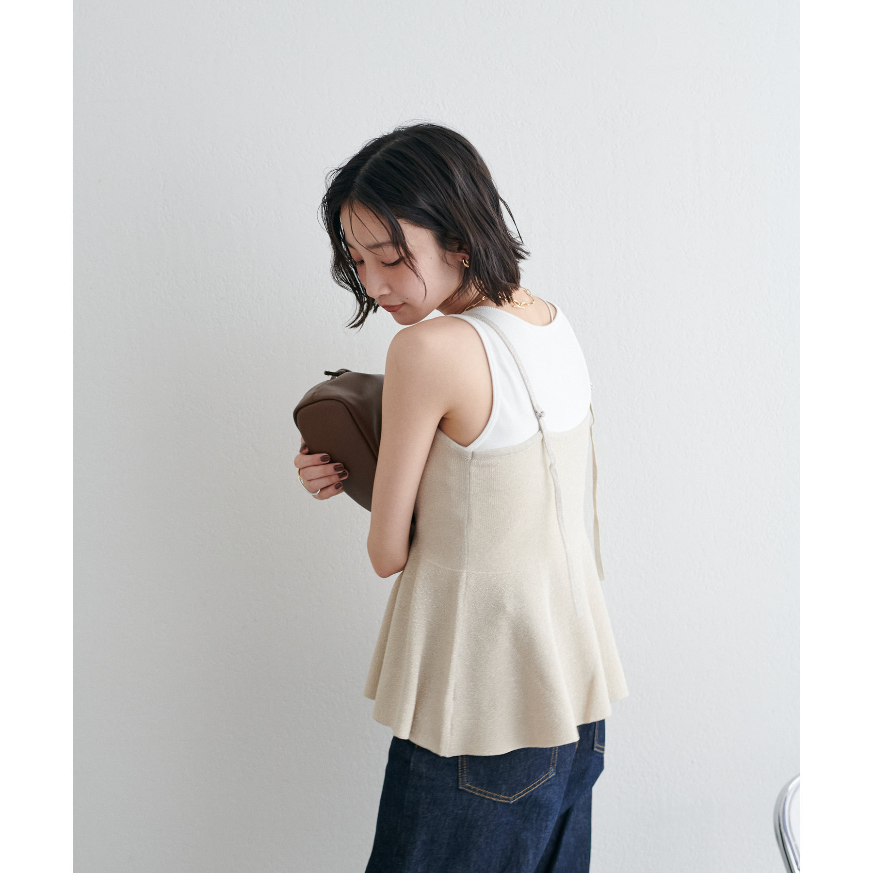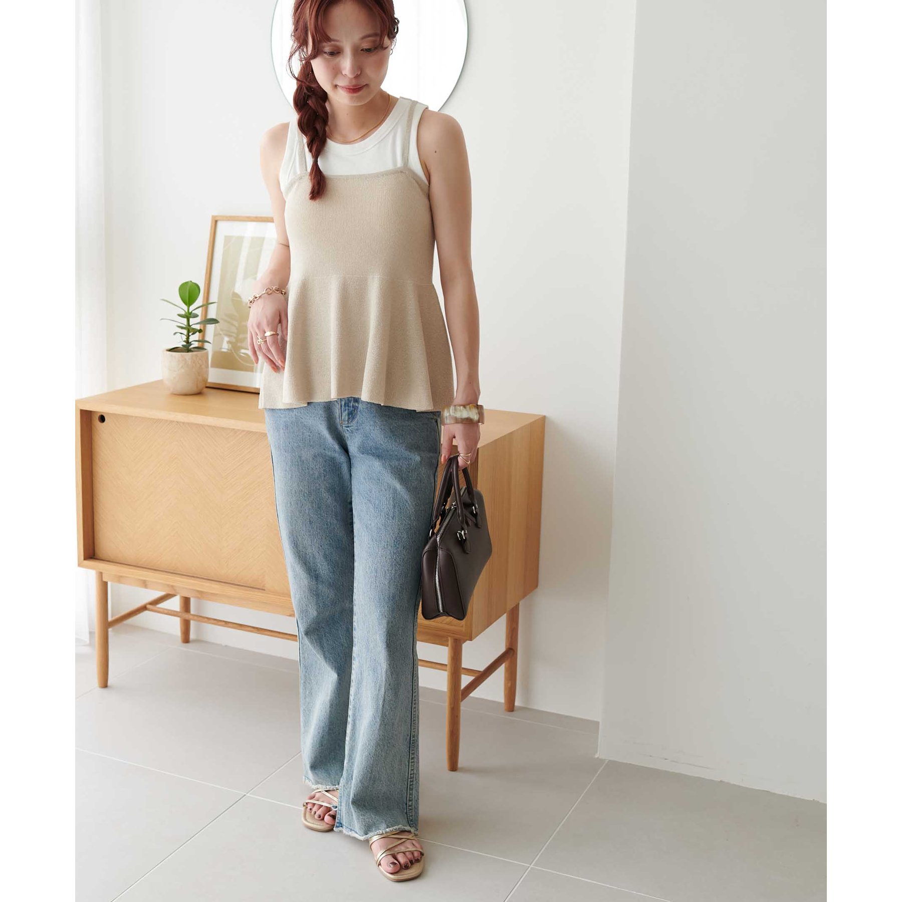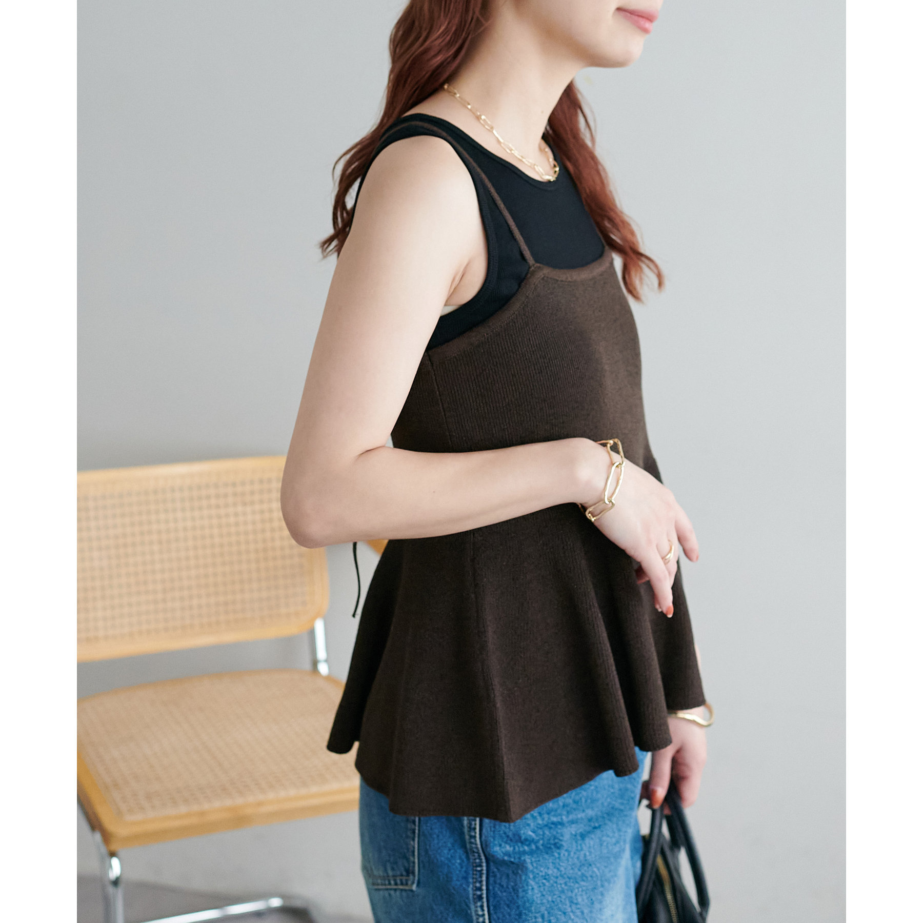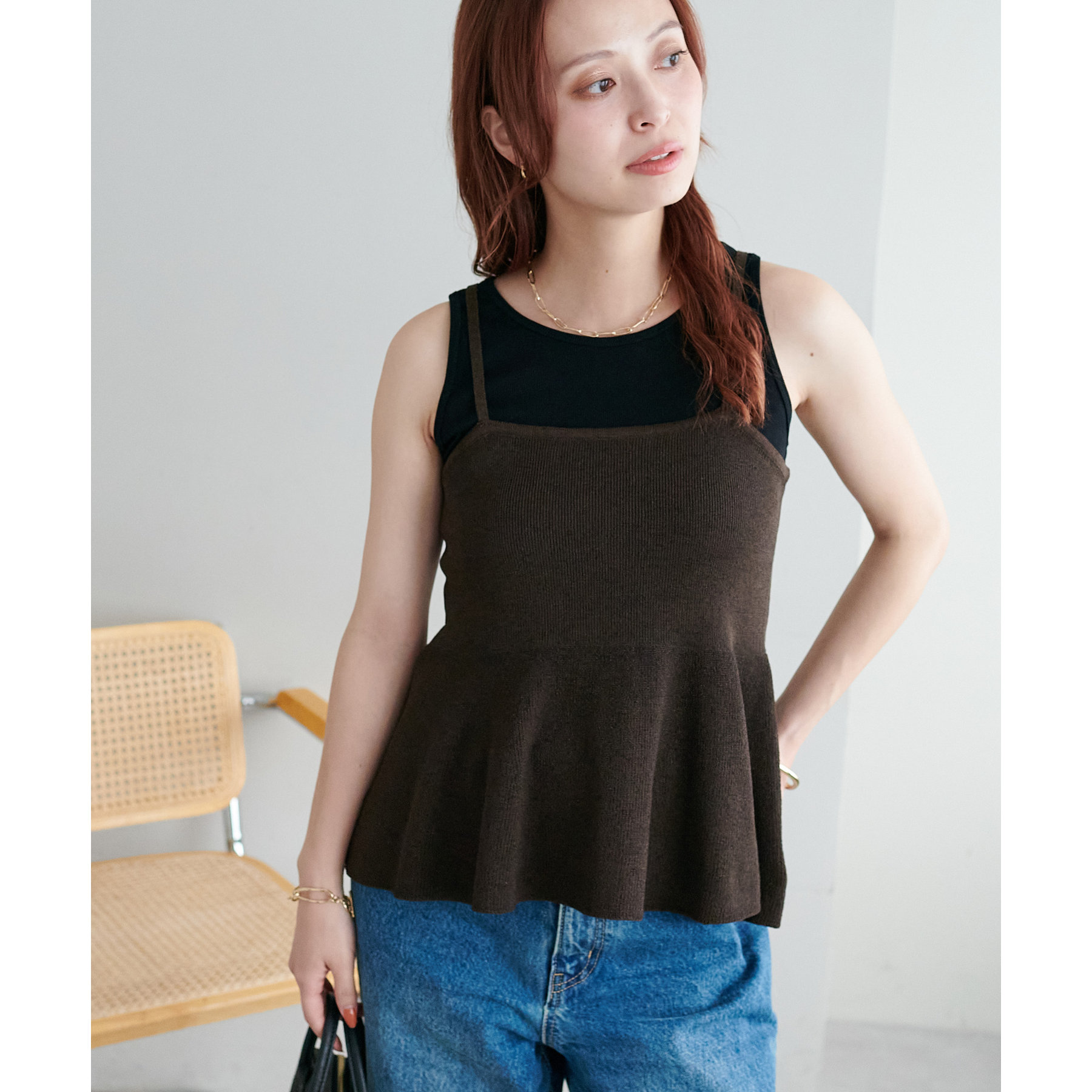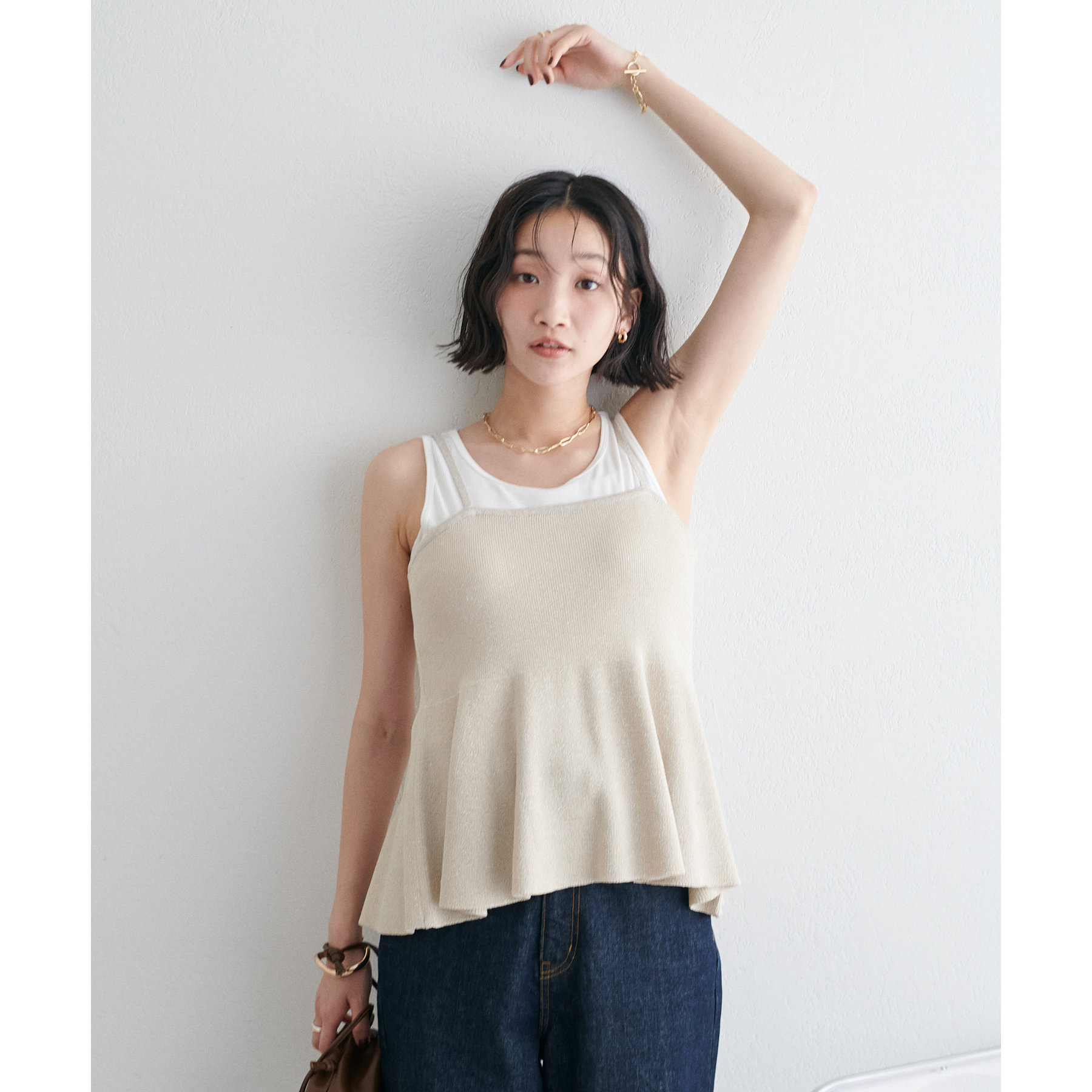 女性らしさ溢れるペプラムキャミ