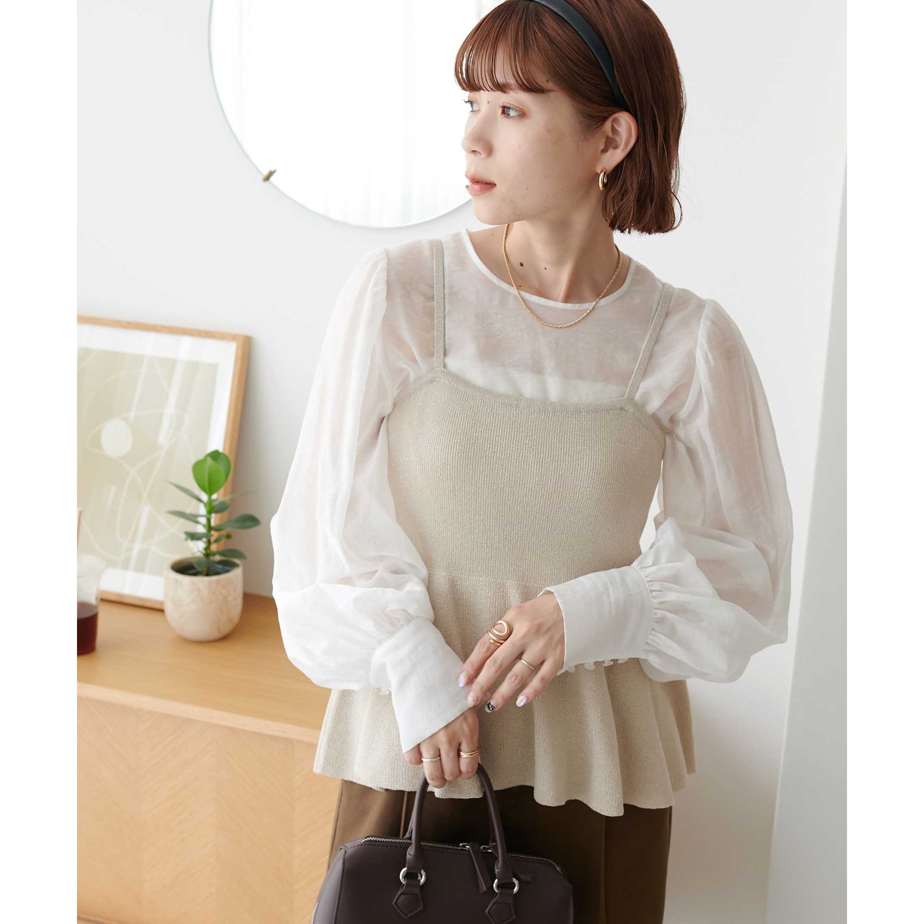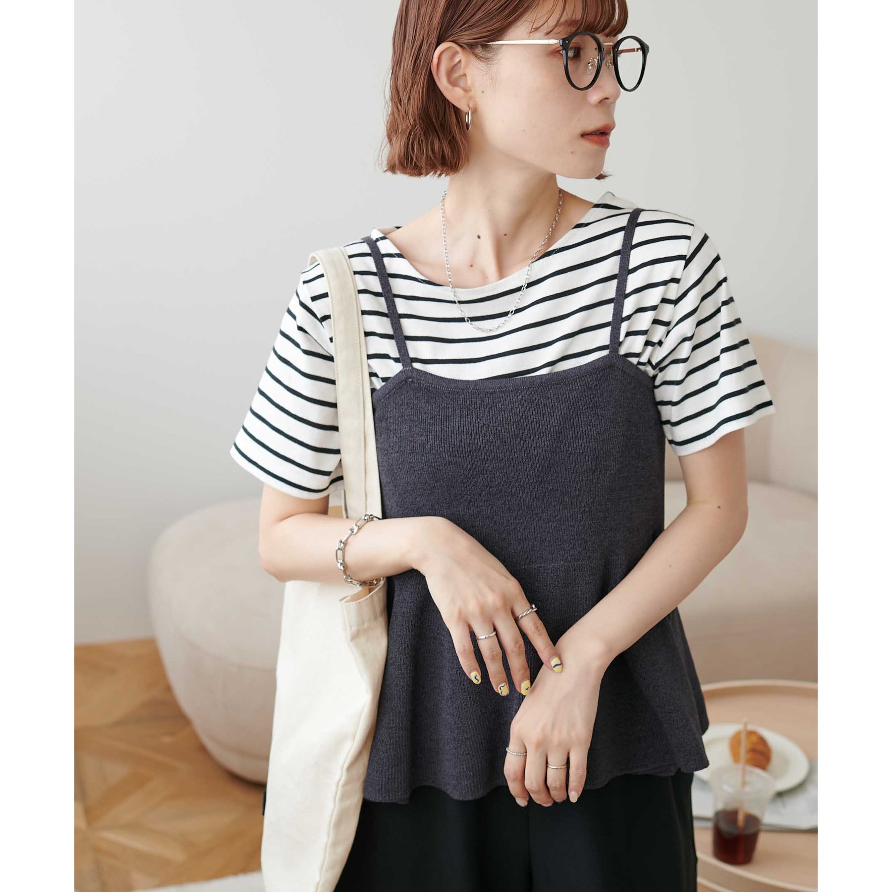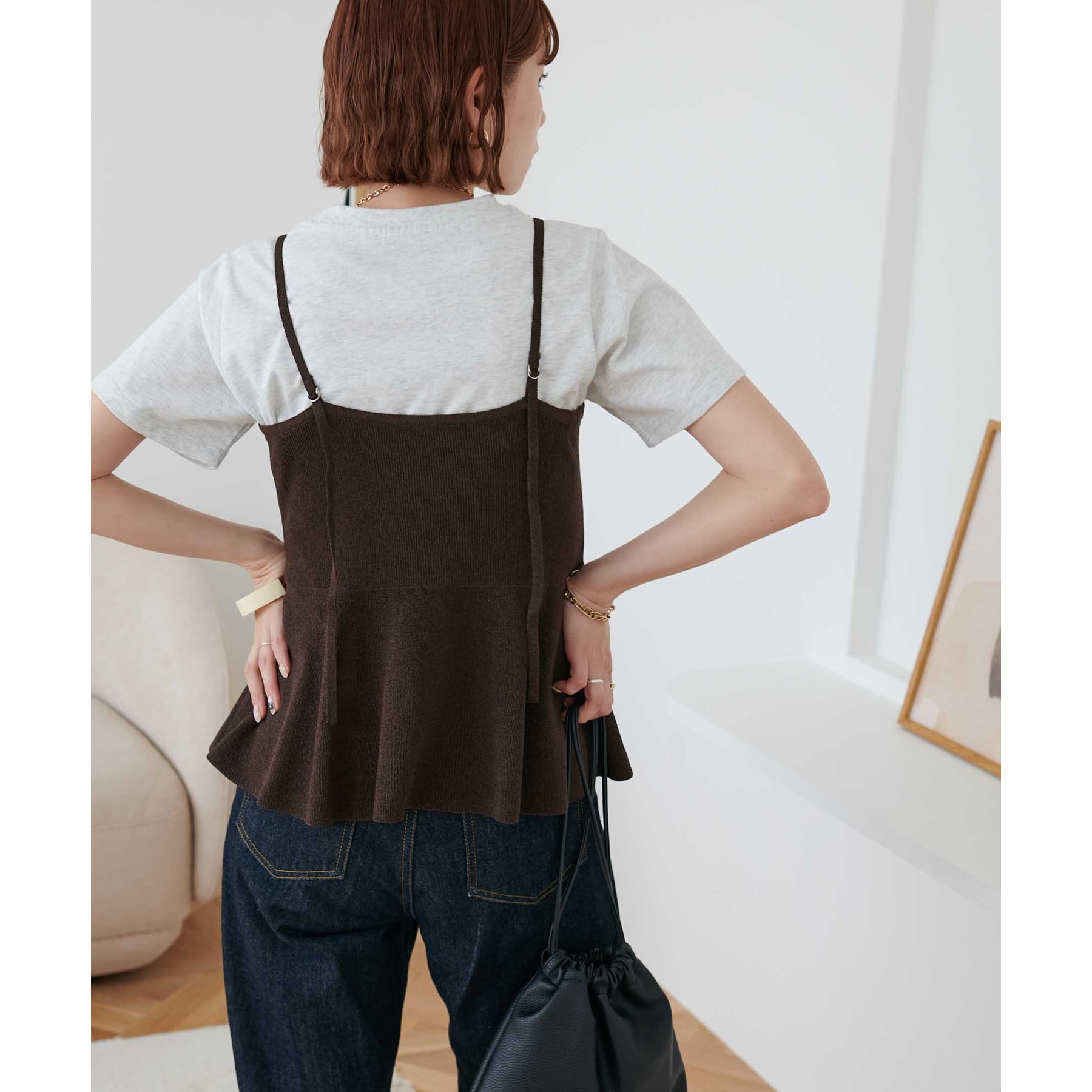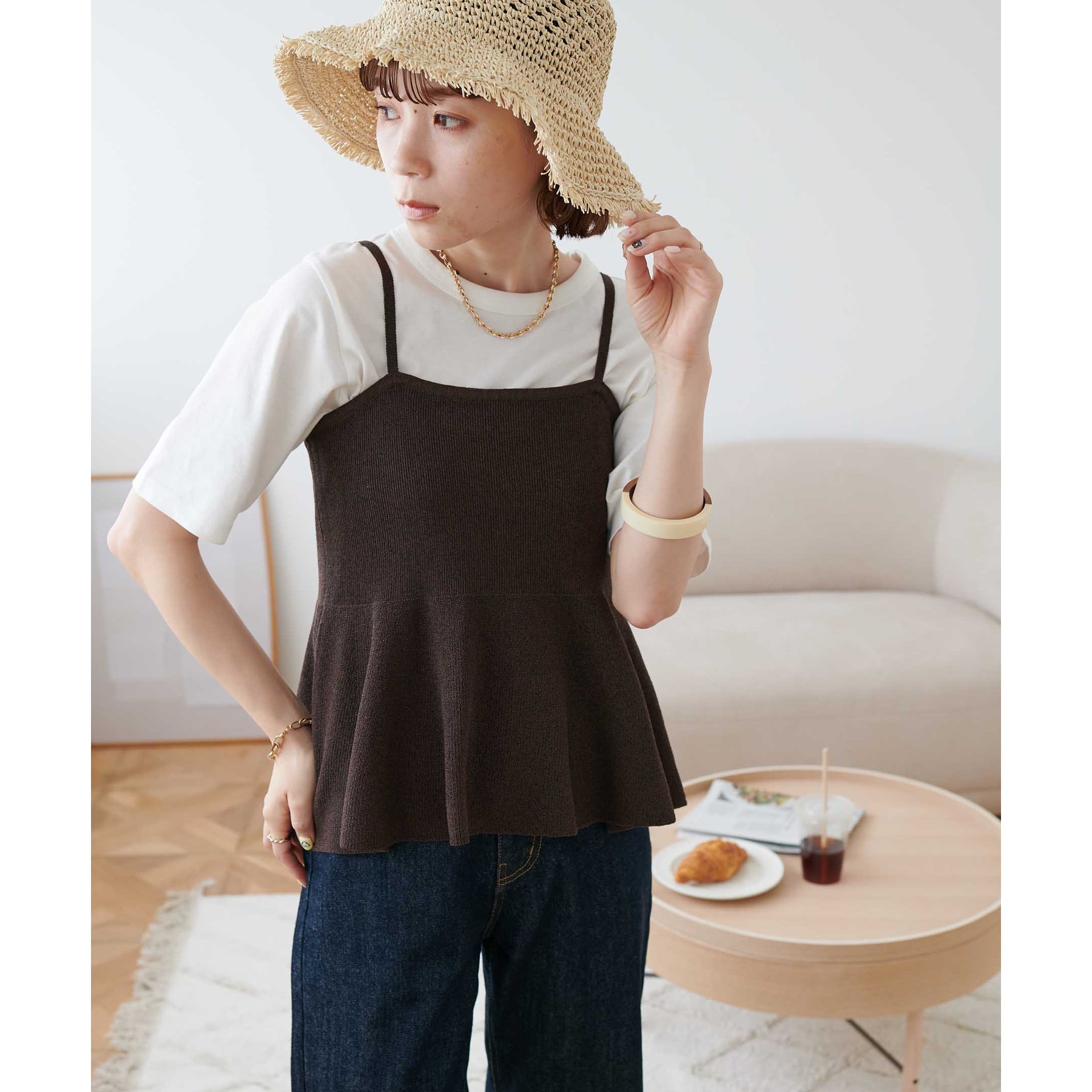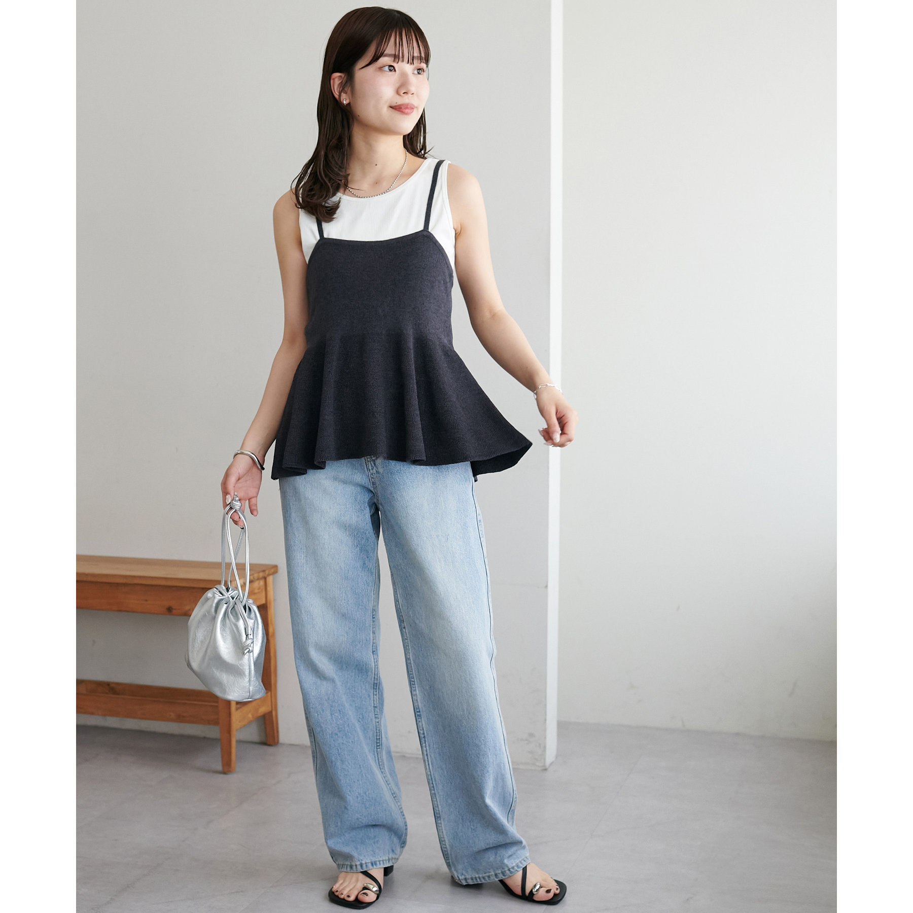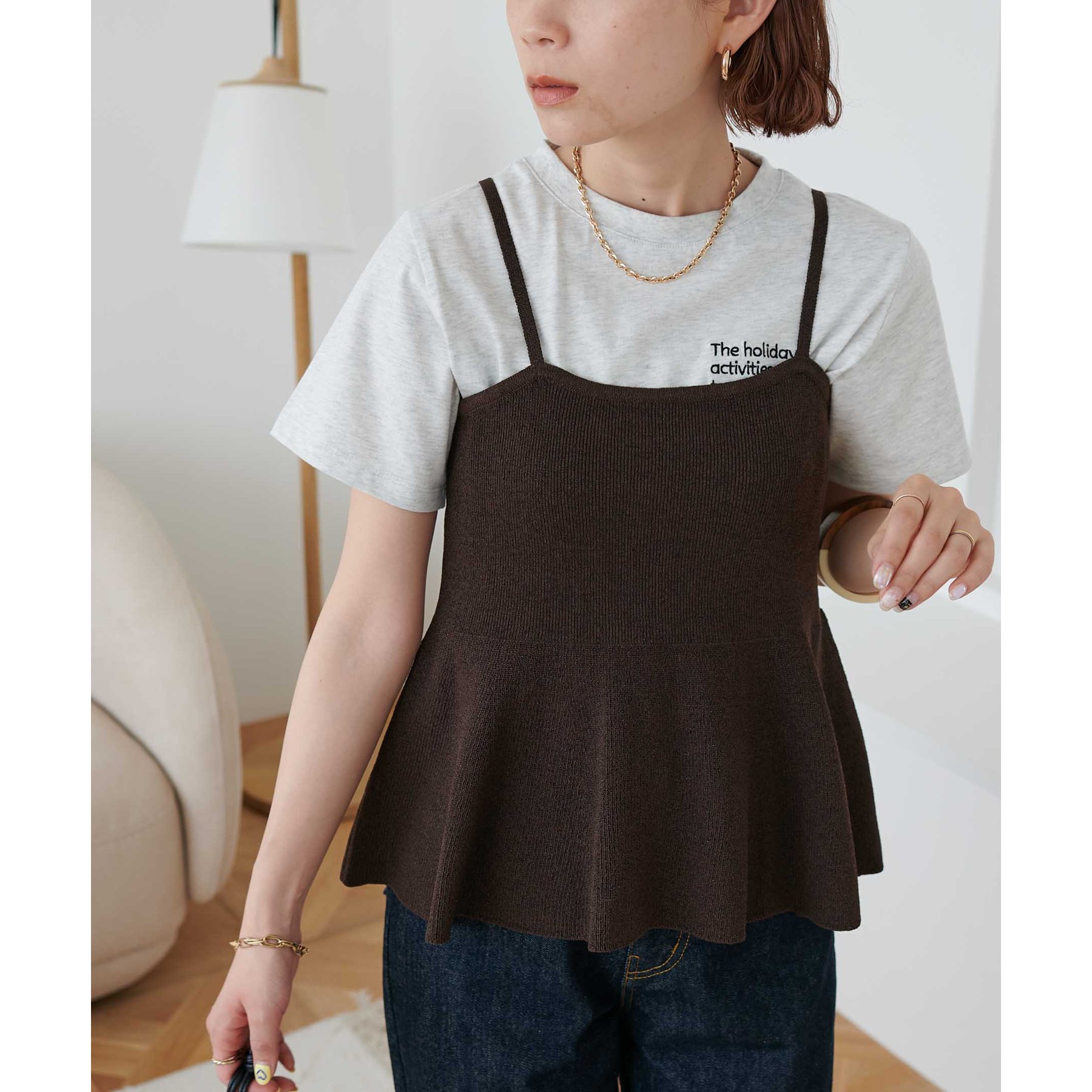 女性らしさ溢れるペプラムキャミ