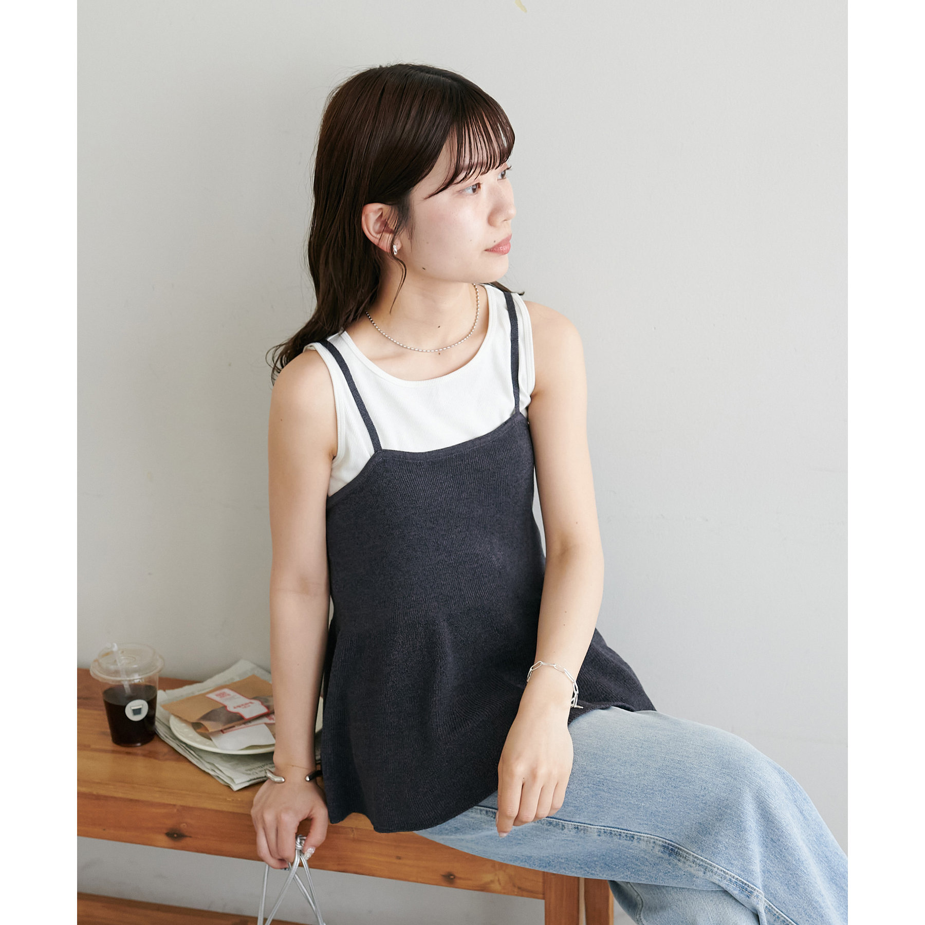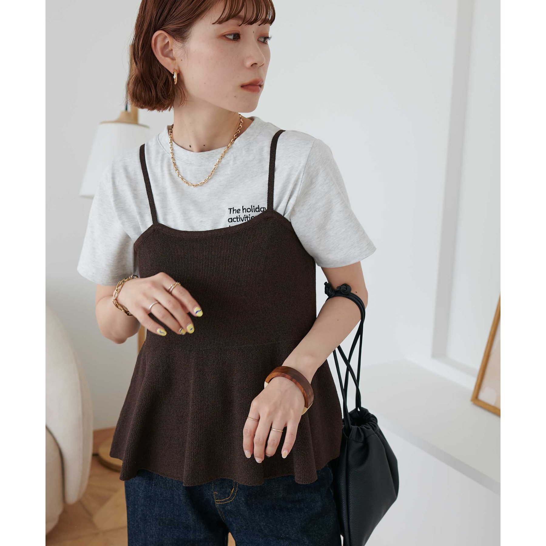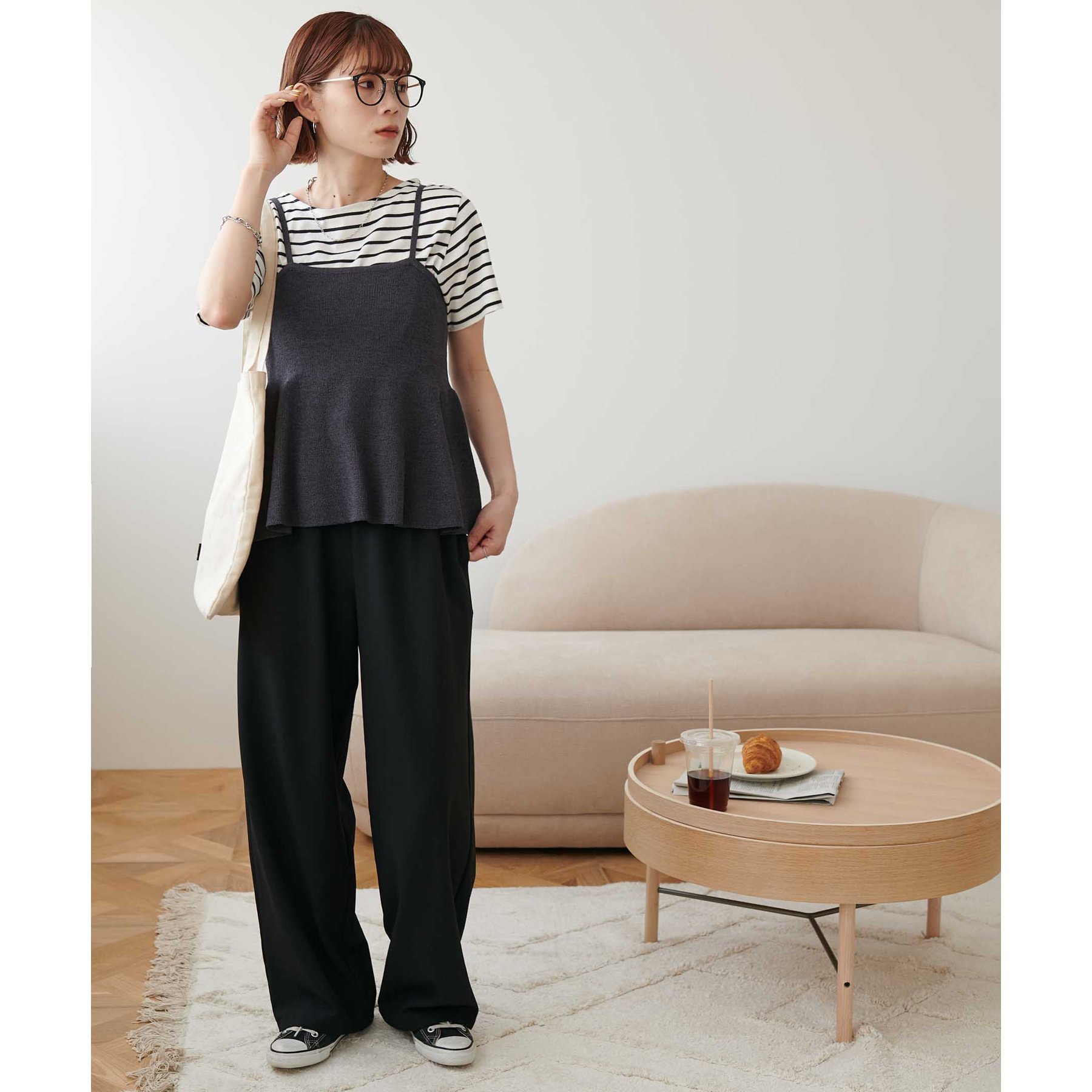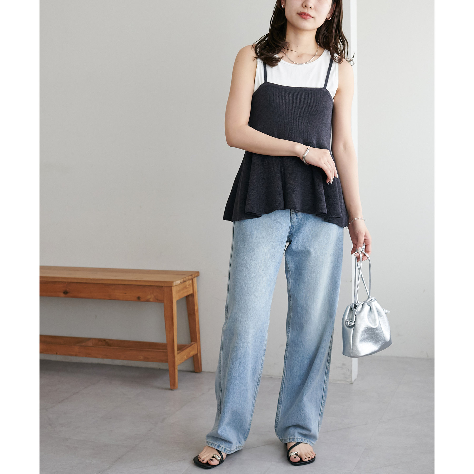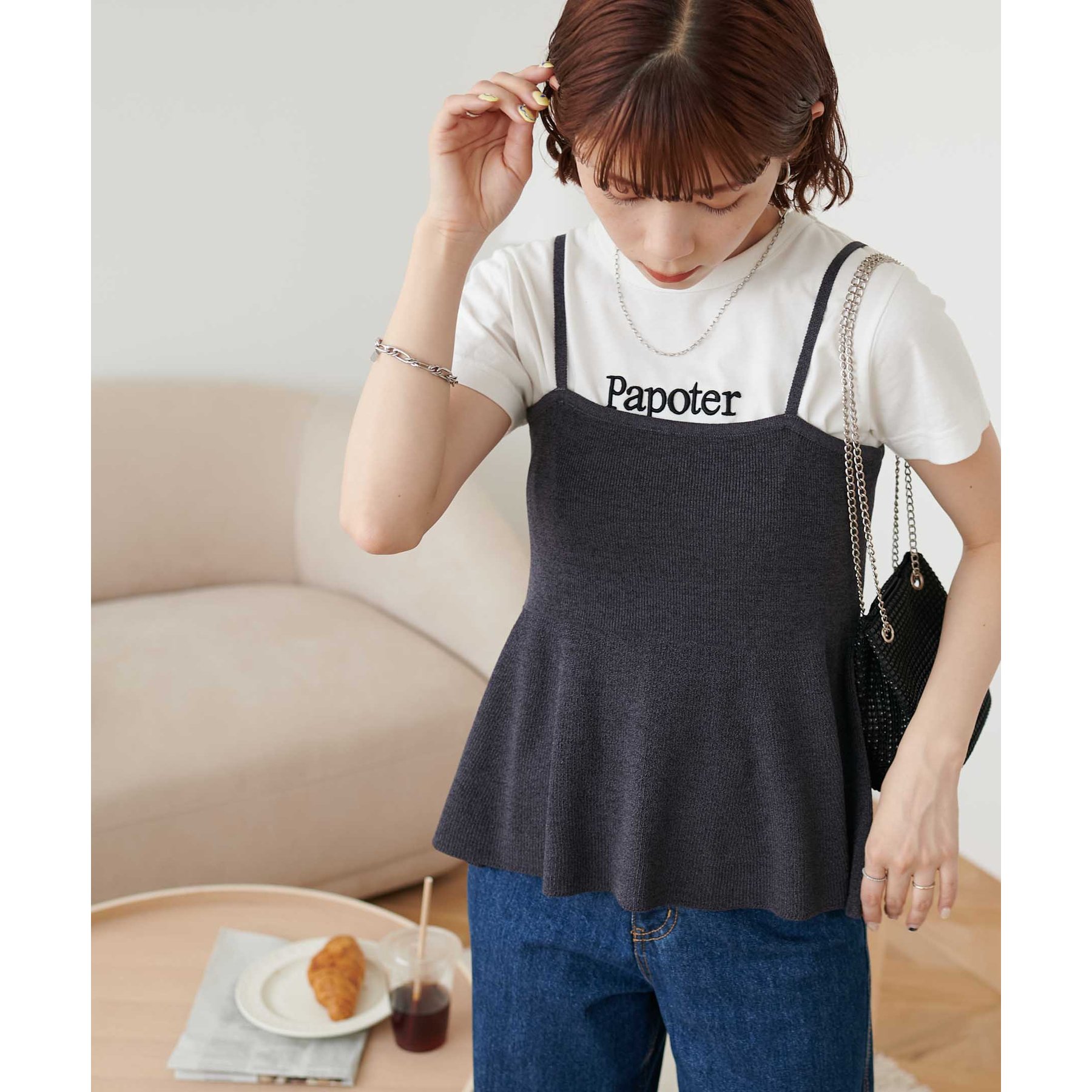 女性らしさ溢れるペプラムキャミ