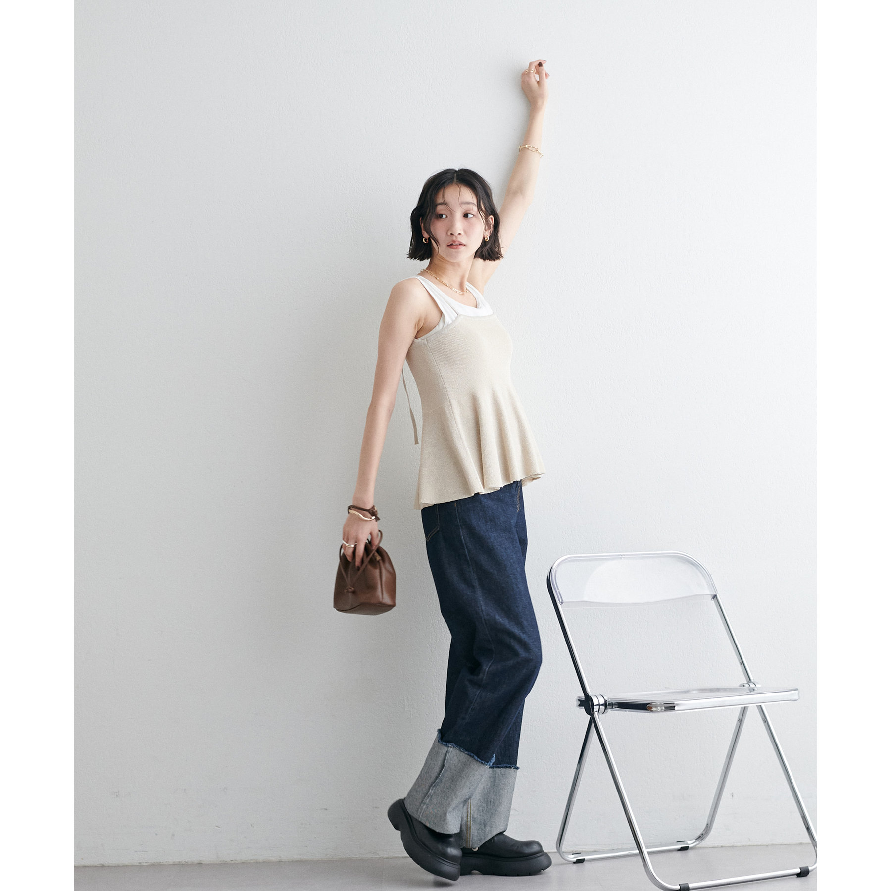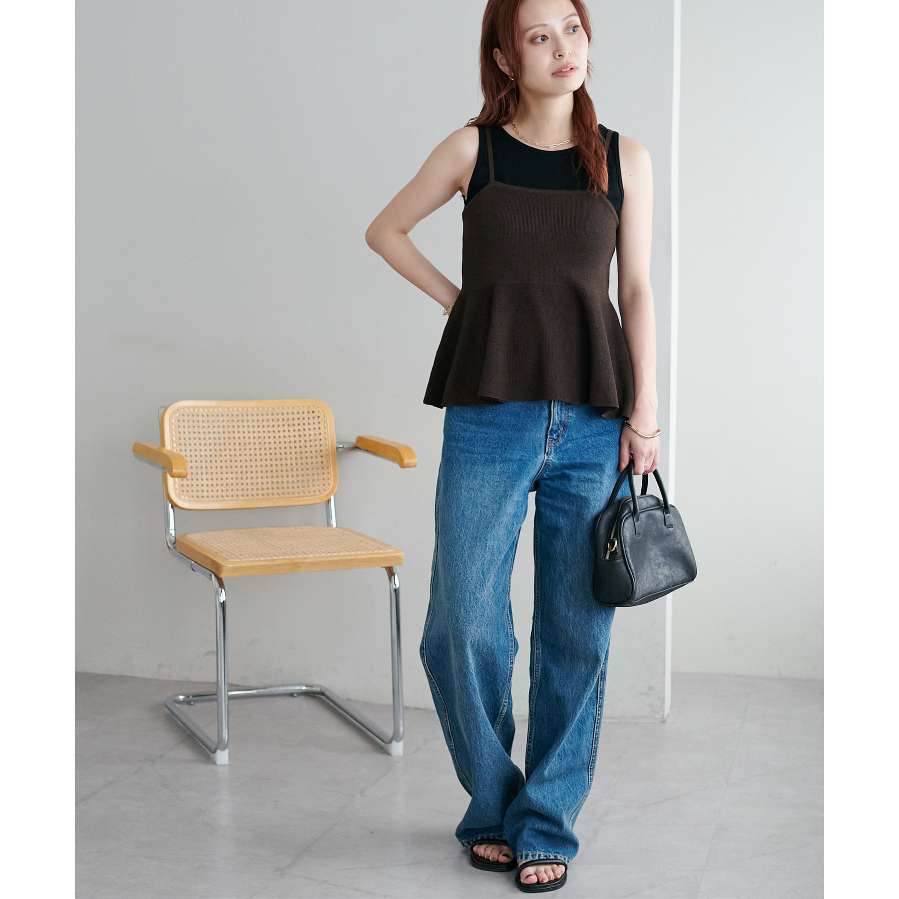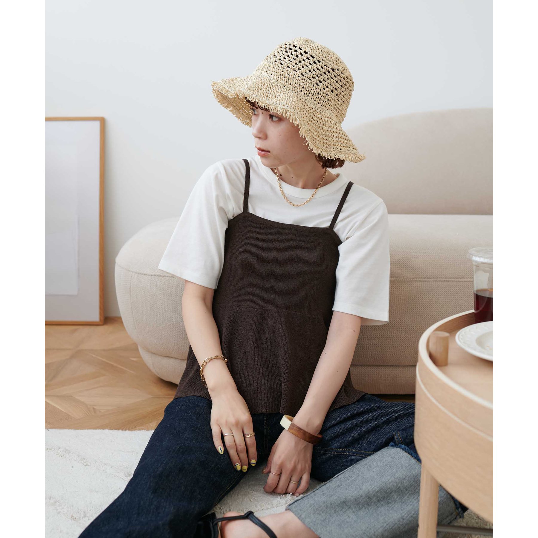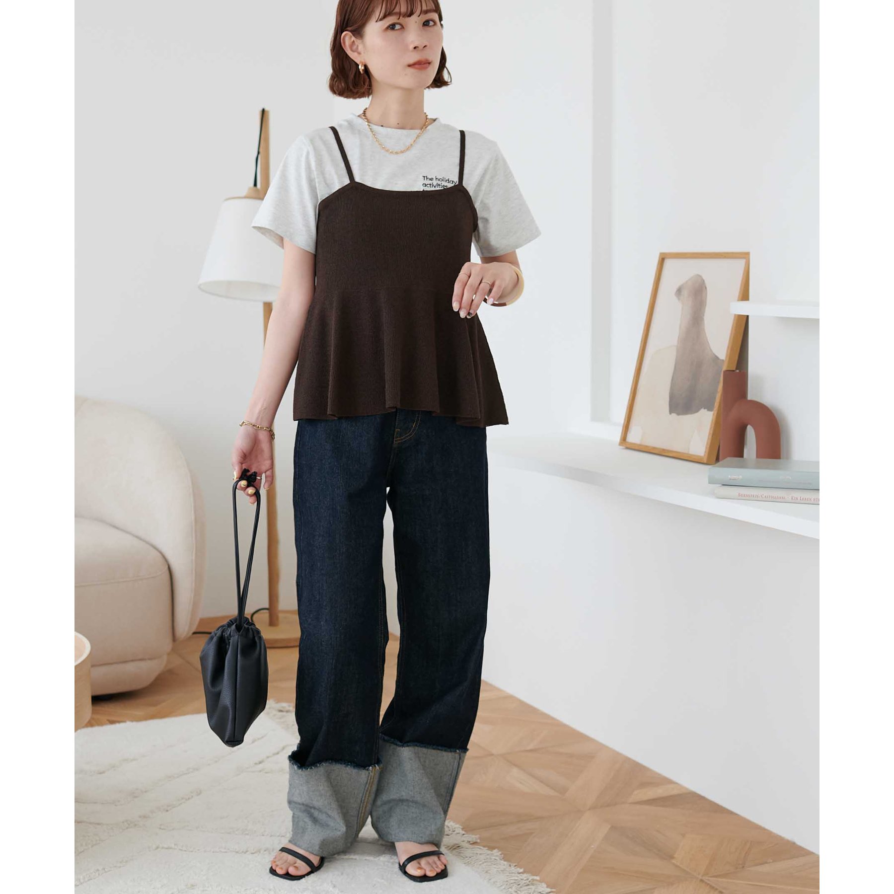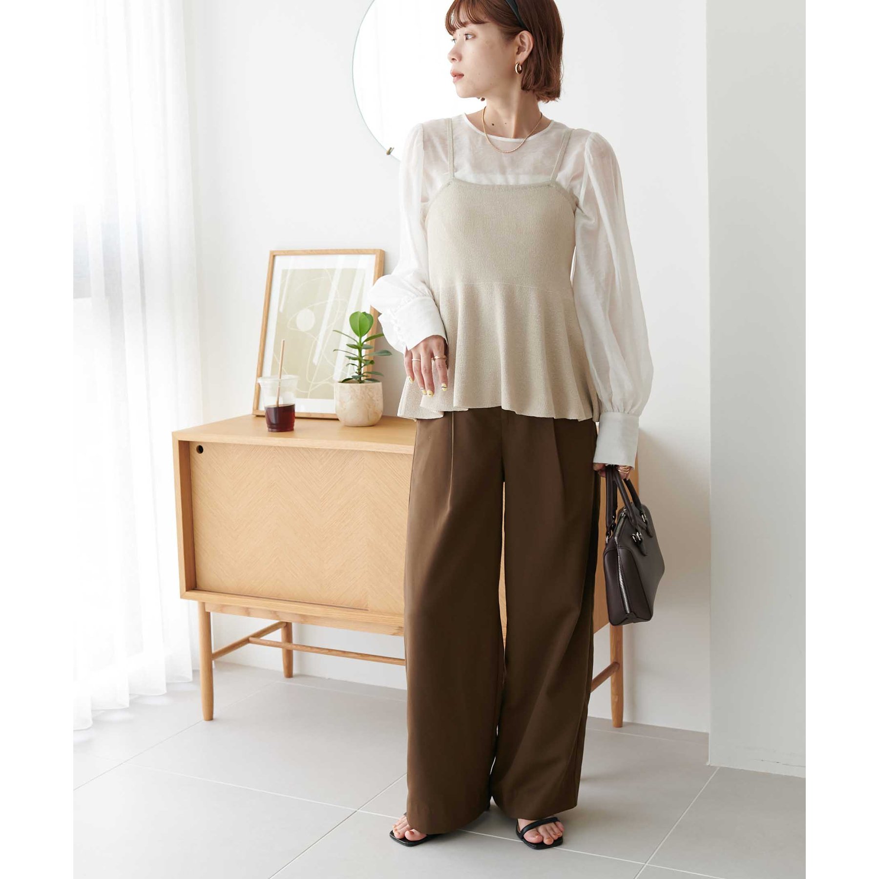 女性らしさ溢れるペプラムキャミ