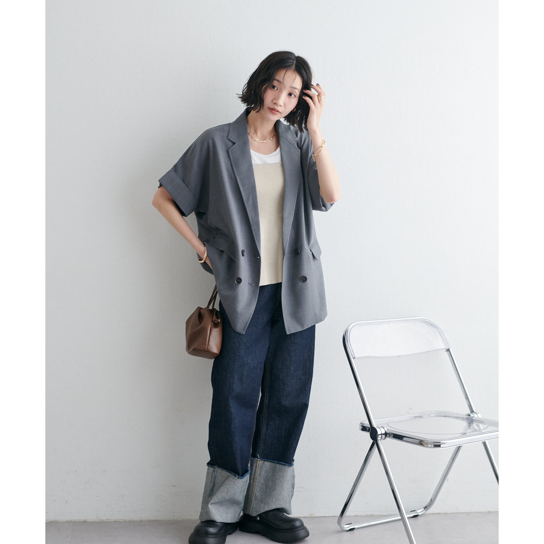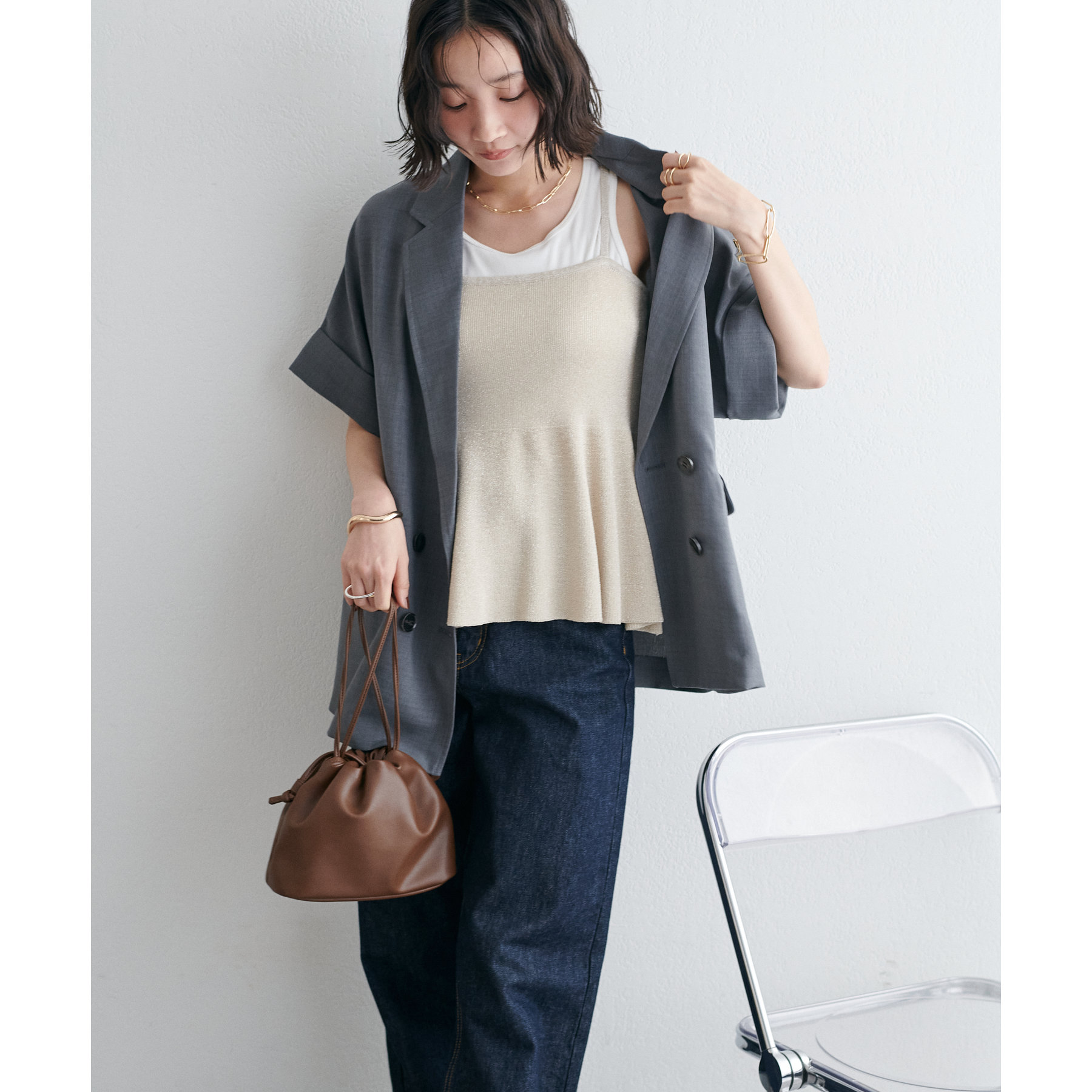 シンプルなTシャツやシアートップス、タンクトップにプラスするだけで一気にこなれ感のあるコーデに。パンツスタイルはもちろん、ナロースカートと合わせたスタイリングもおすすめ。合わせるアイテム次第で様々な雰囲気をお楽しみいただけます♪