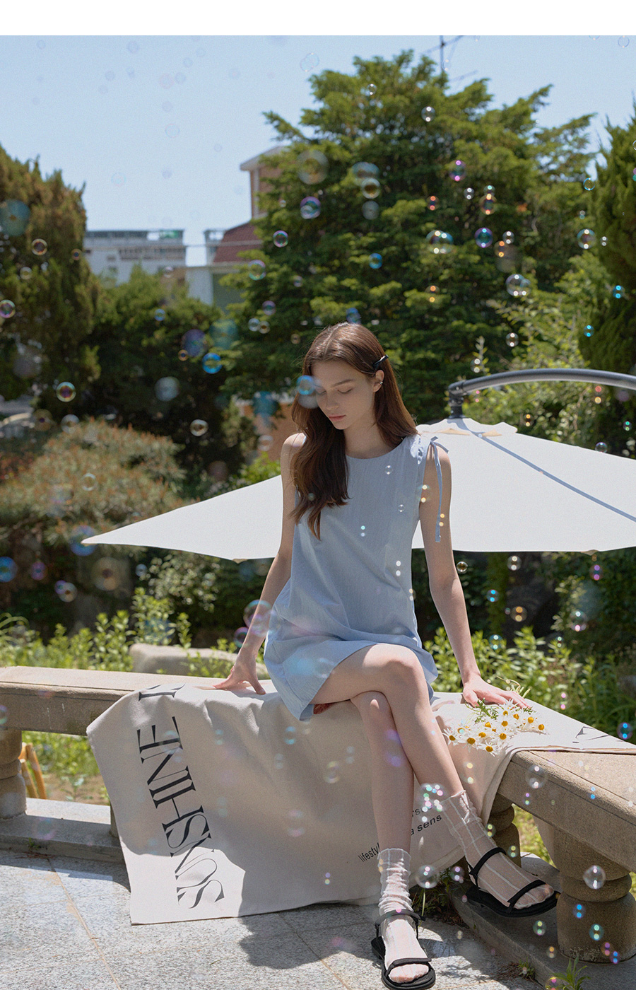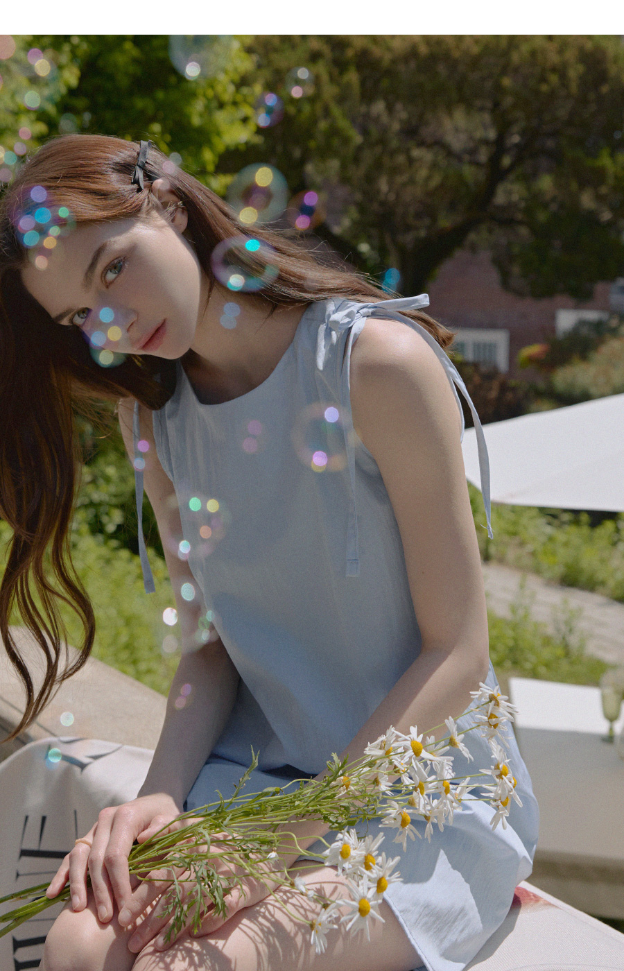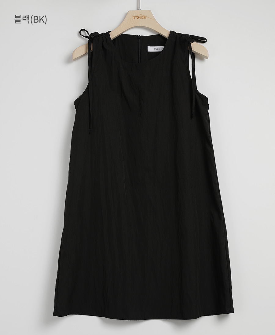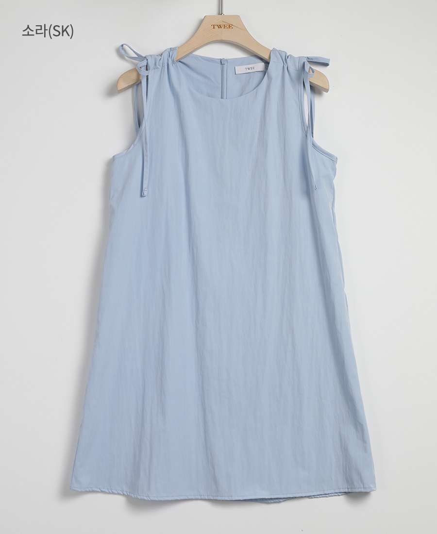 숄더라인 셔링 조절 가능한 러블리한 슬리브리스 원피스입니다