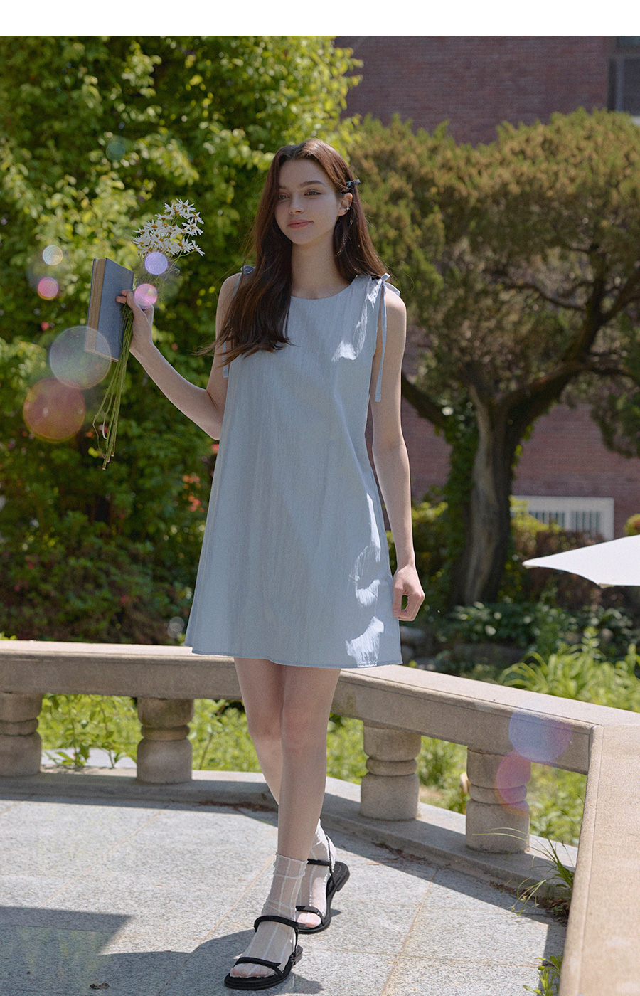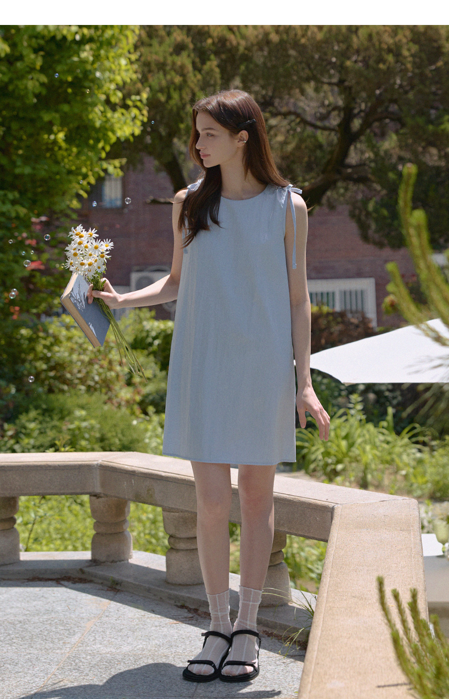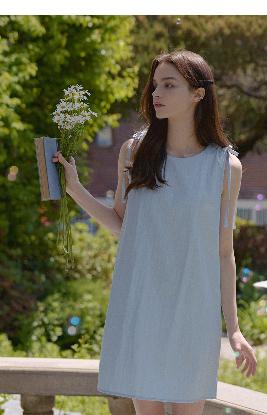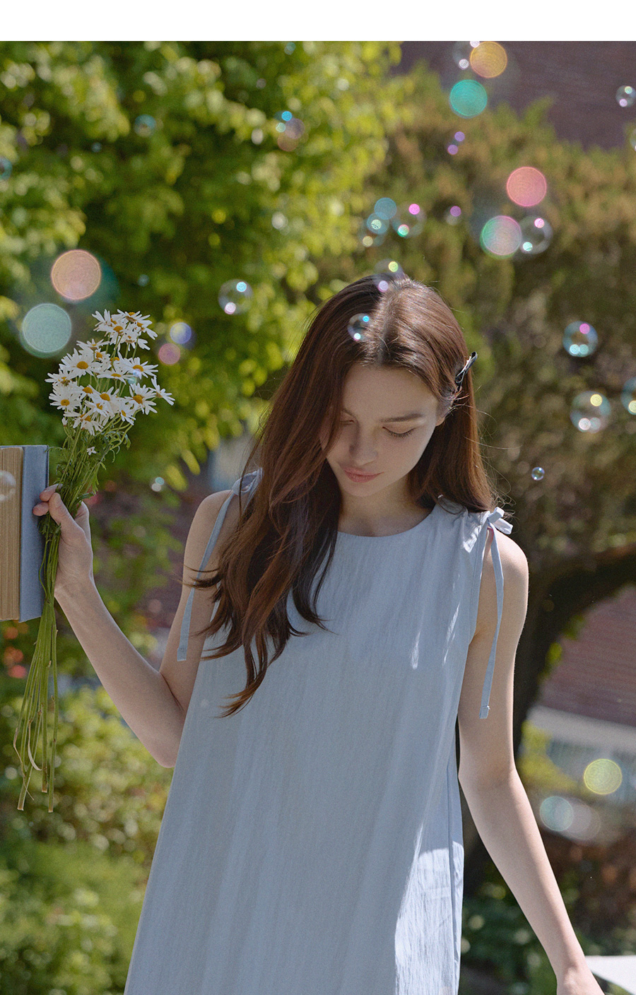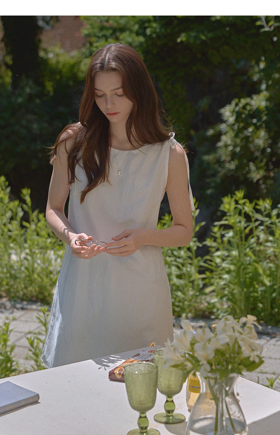 숄더라인 셔링 조절 가능한 러블리한 슬리브리스 원피스입니다