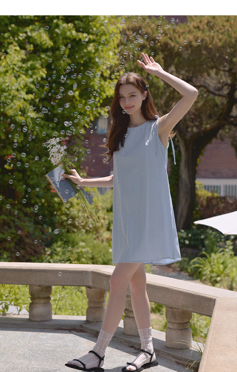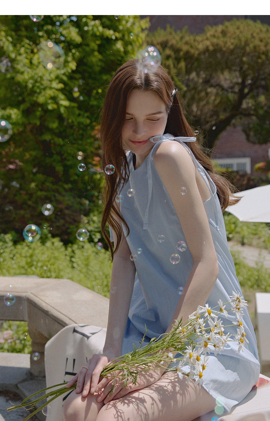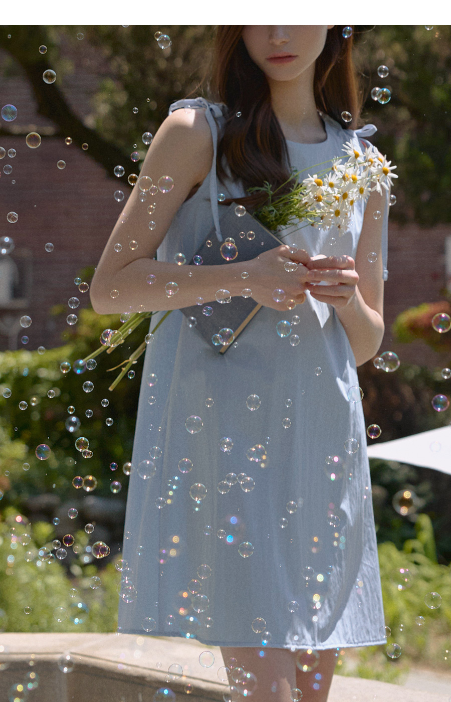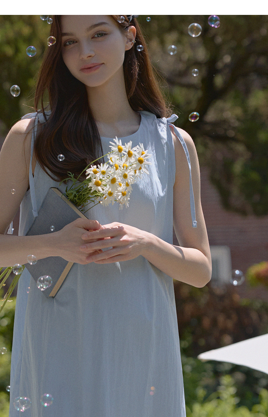 숄더라인 셔링 조절 가능한 러블리한 슬리브리스 원피스입니다