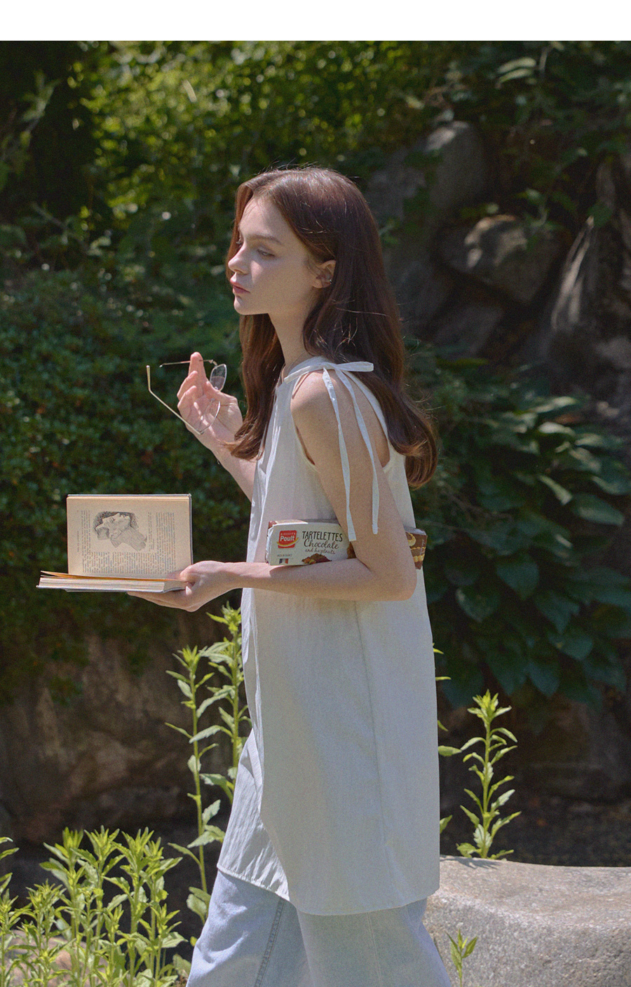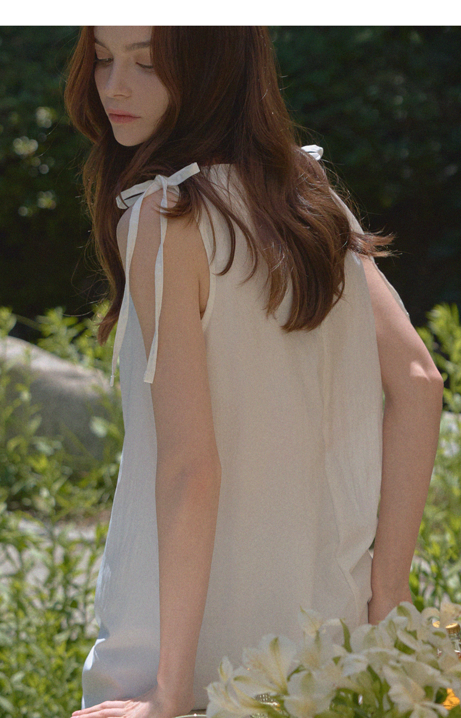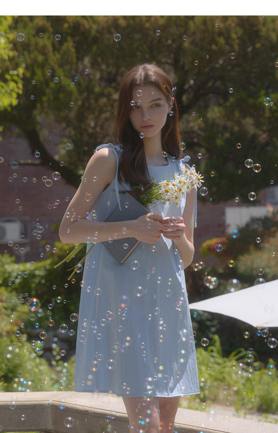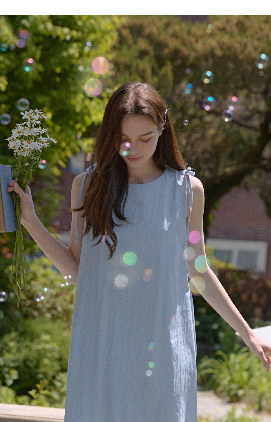 숄더라인 셔링 조절 가능한 러블리한 슬리브리스 원피스입니다