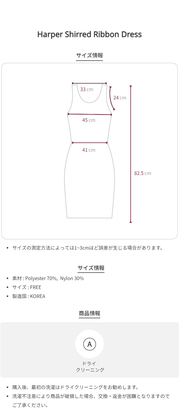 HEIGHT 165cm / BUST 78cm / WAIST 60cm / HIP 87cm