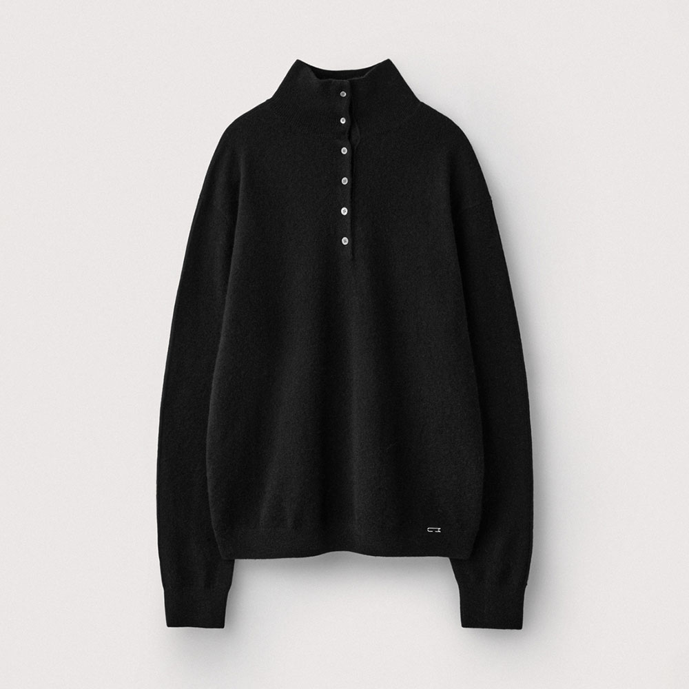Wool Cashmere Two Way Turtle Neck Pullover_Black