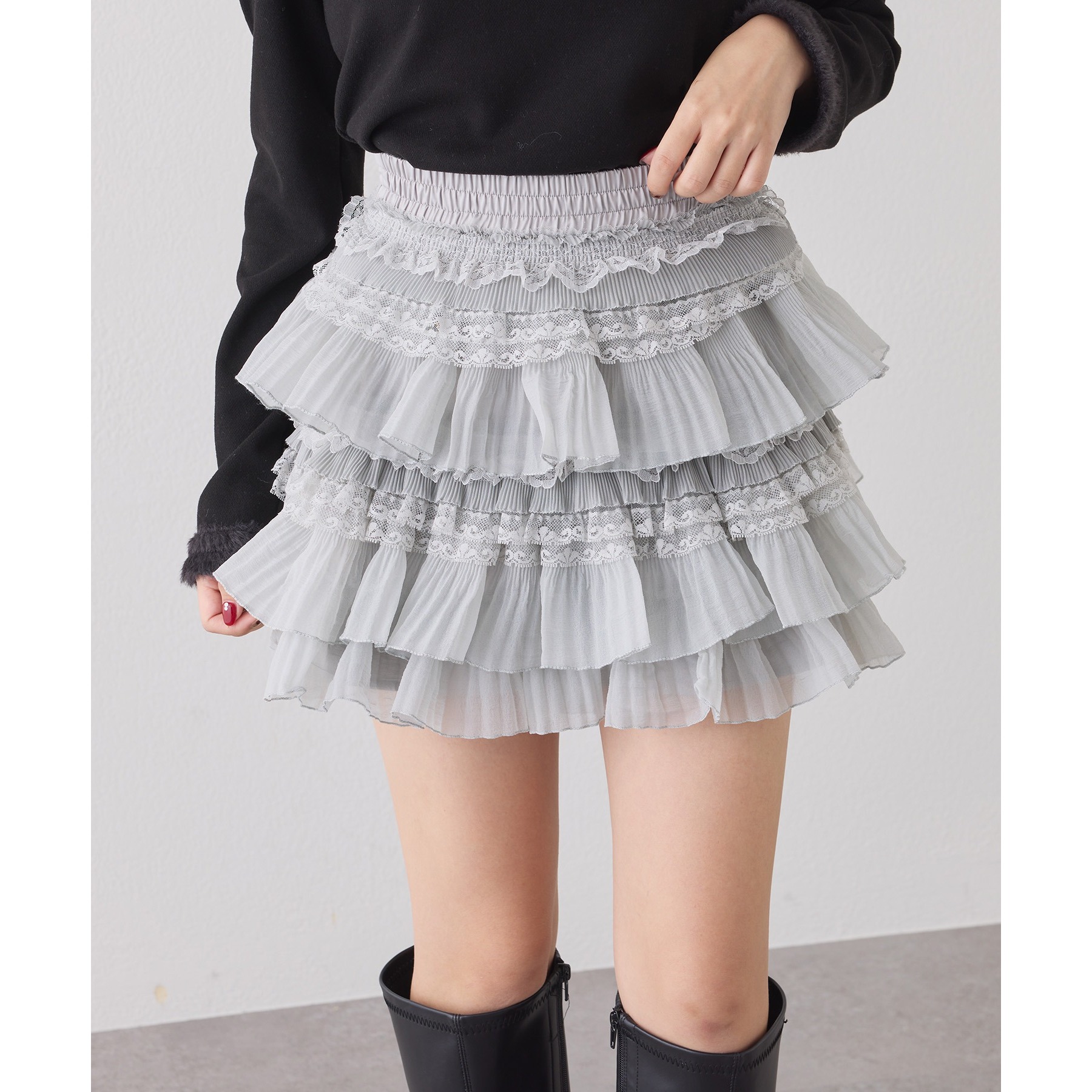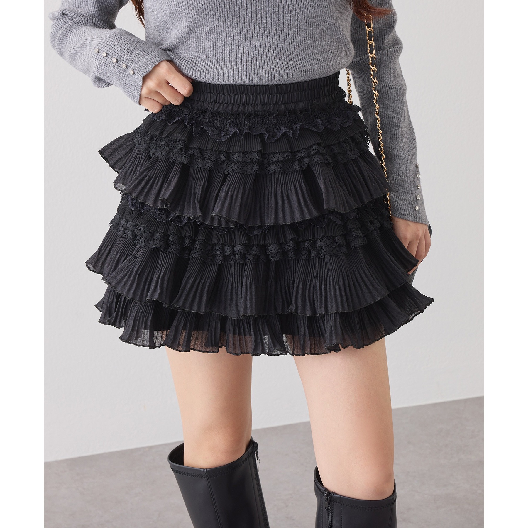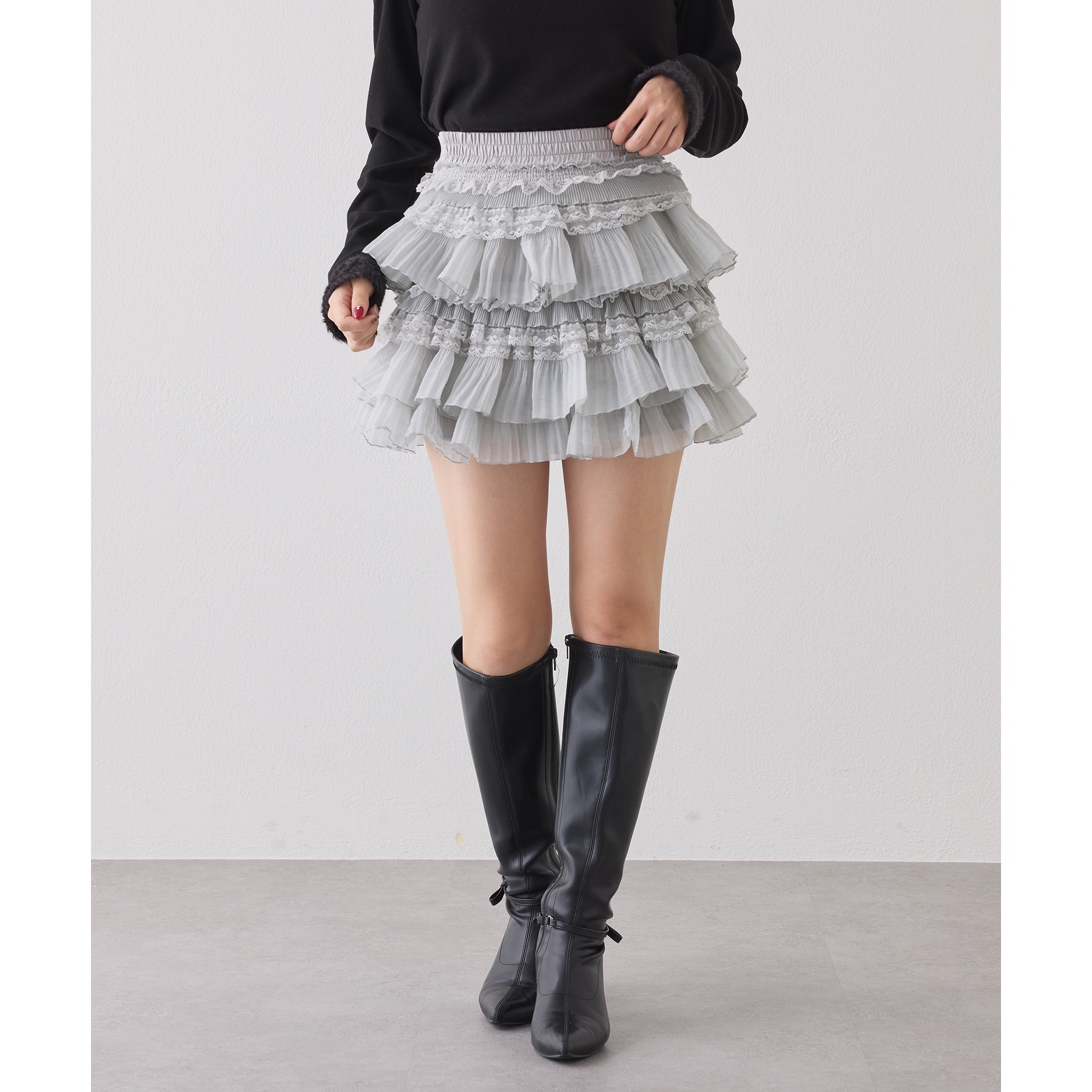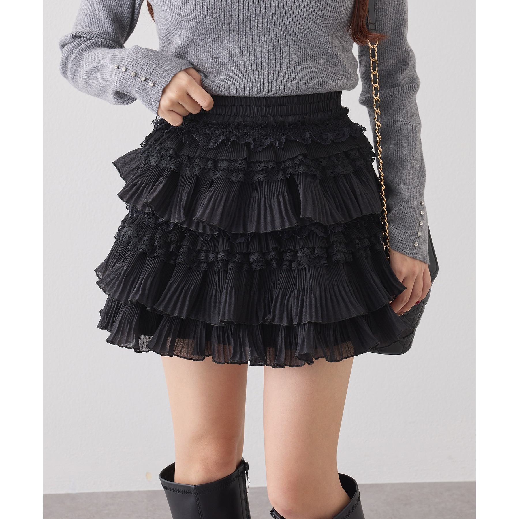ふんわりと広がるフリルデザインが可愛いミニスカート。