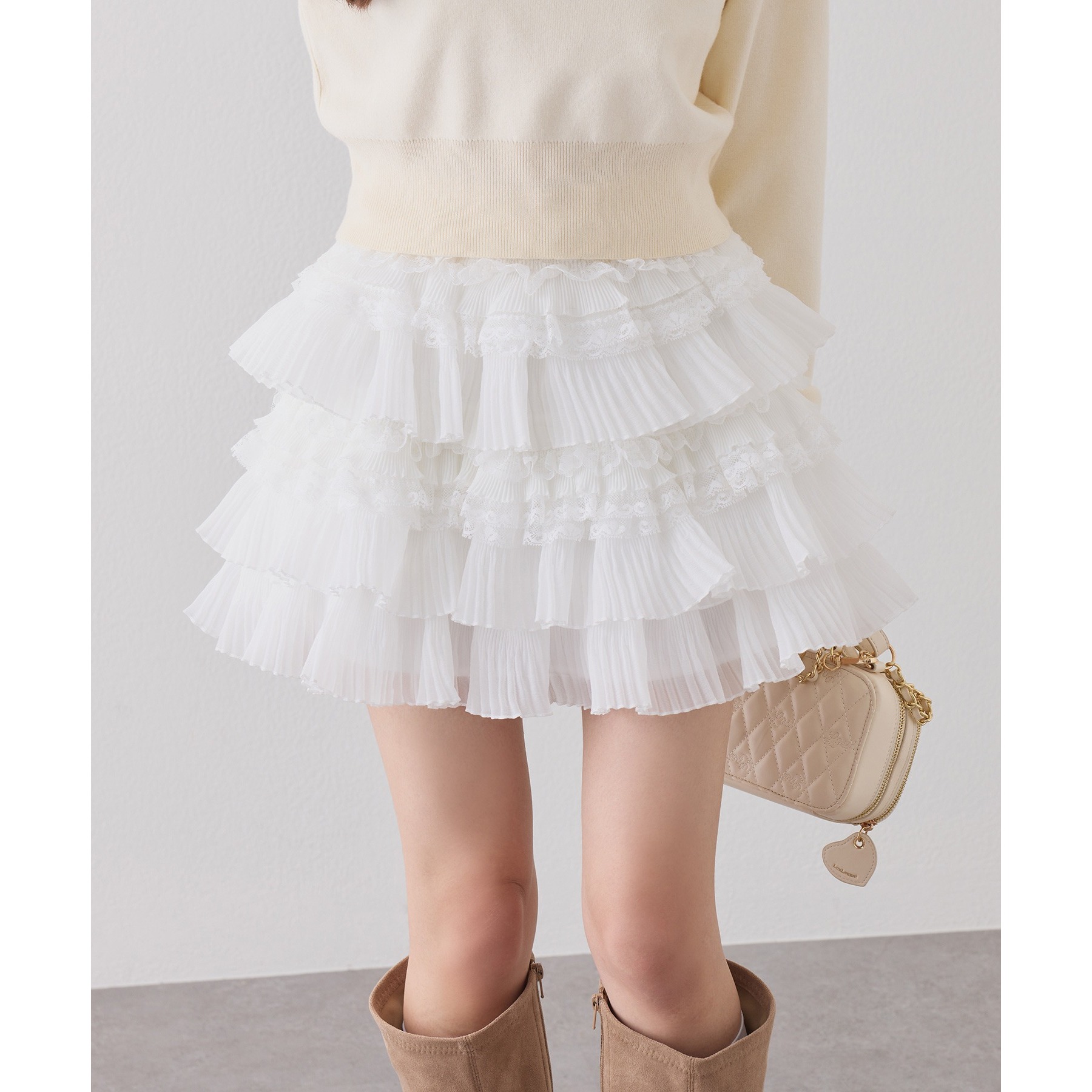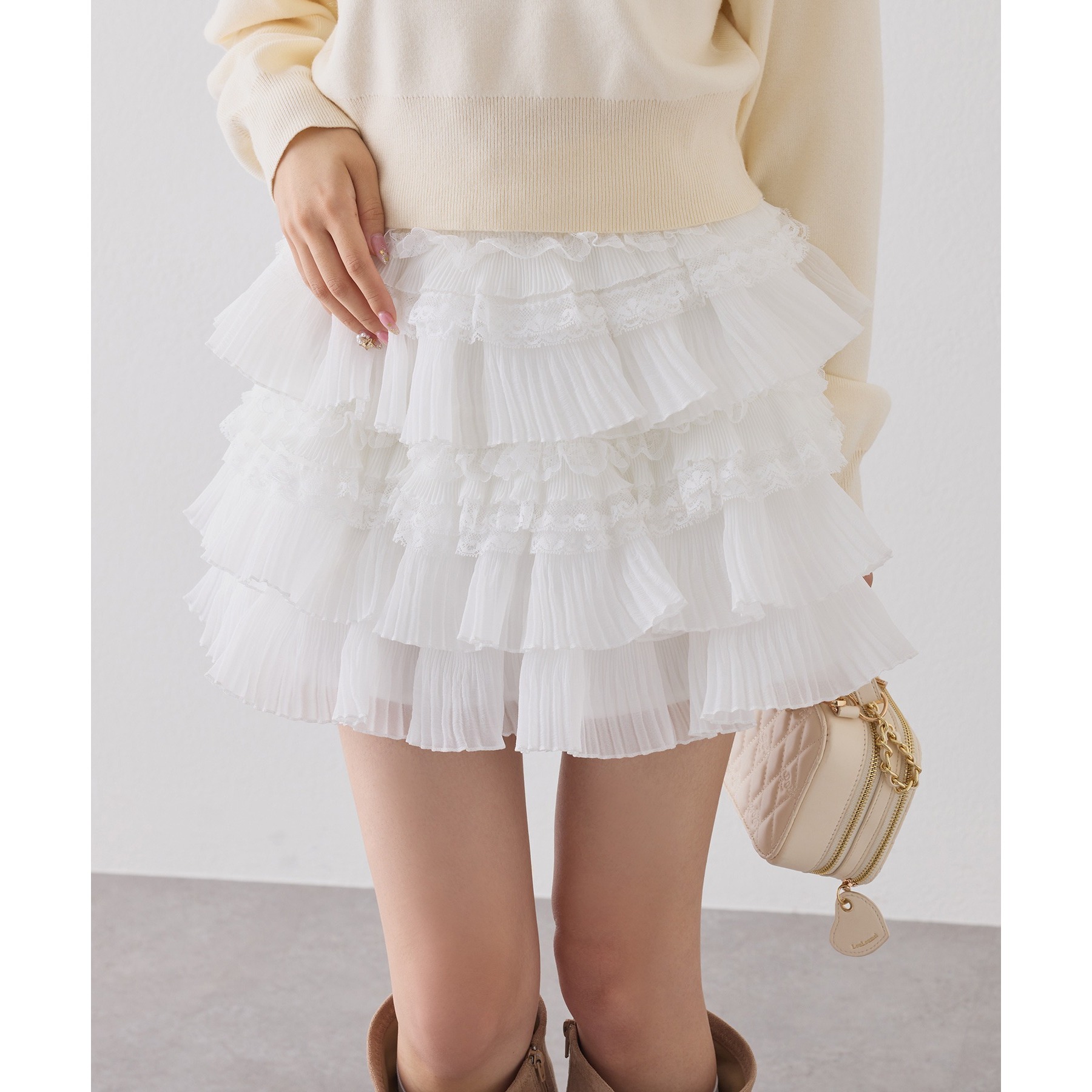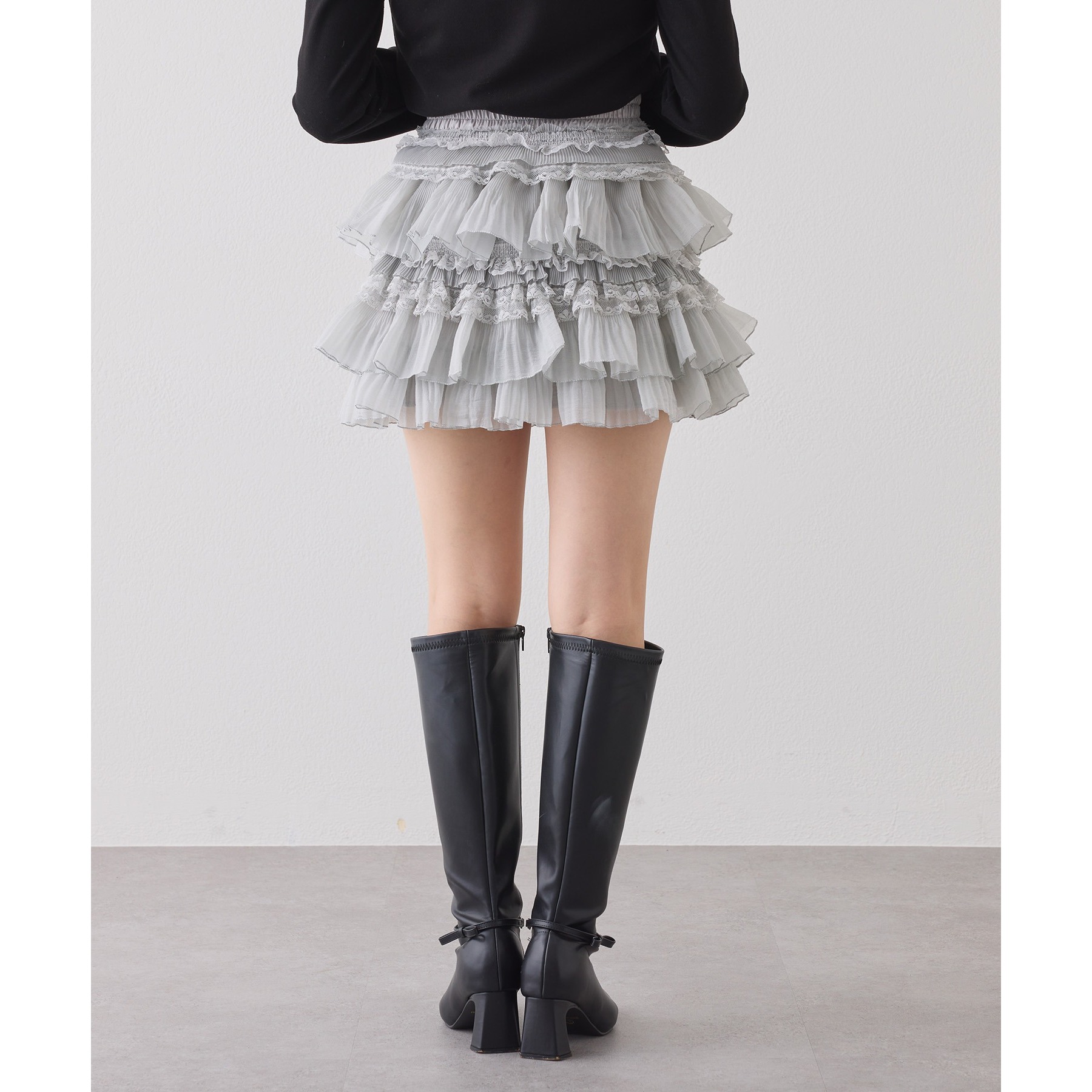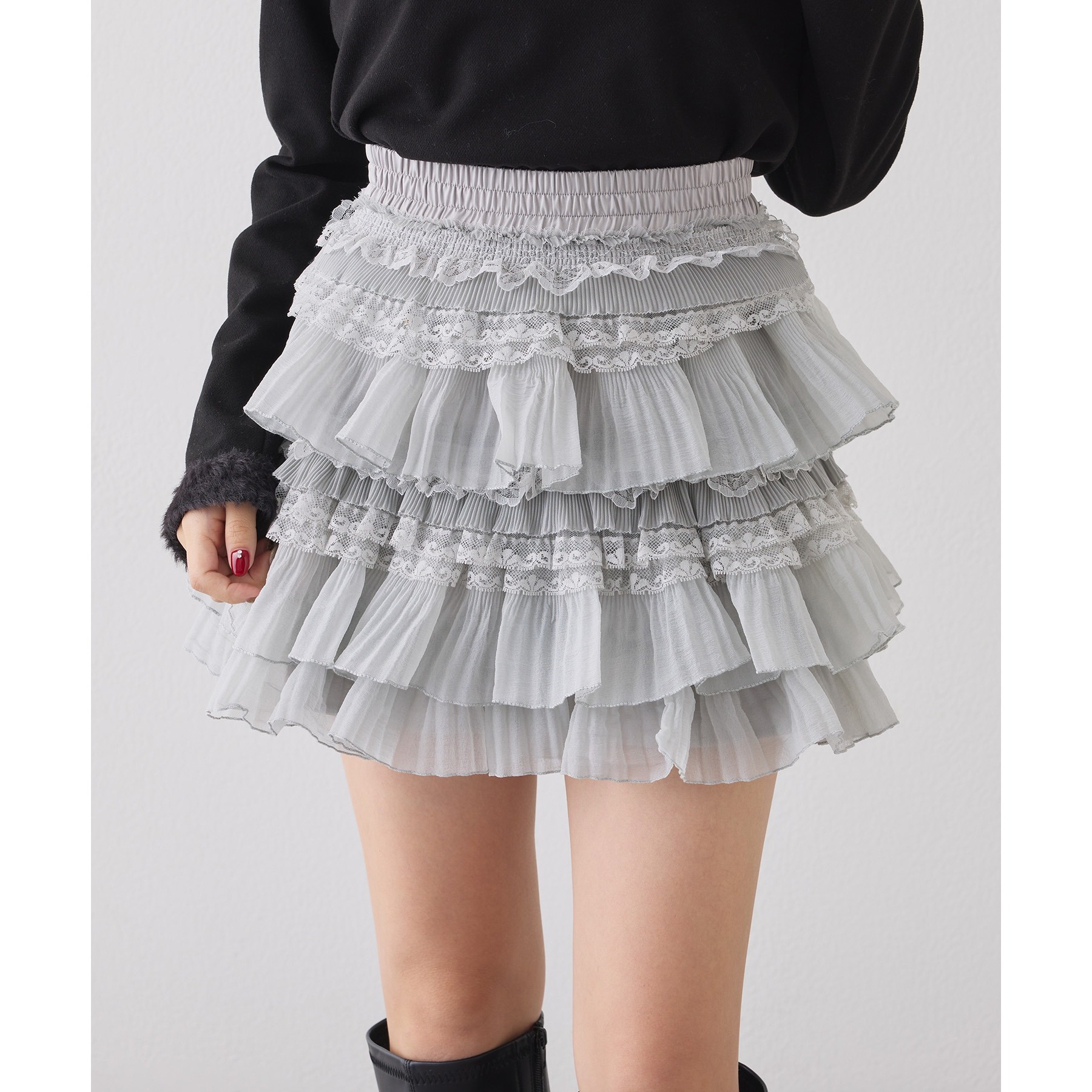 ふんわりと広がるフリルデザインが可愛いミニスカート。