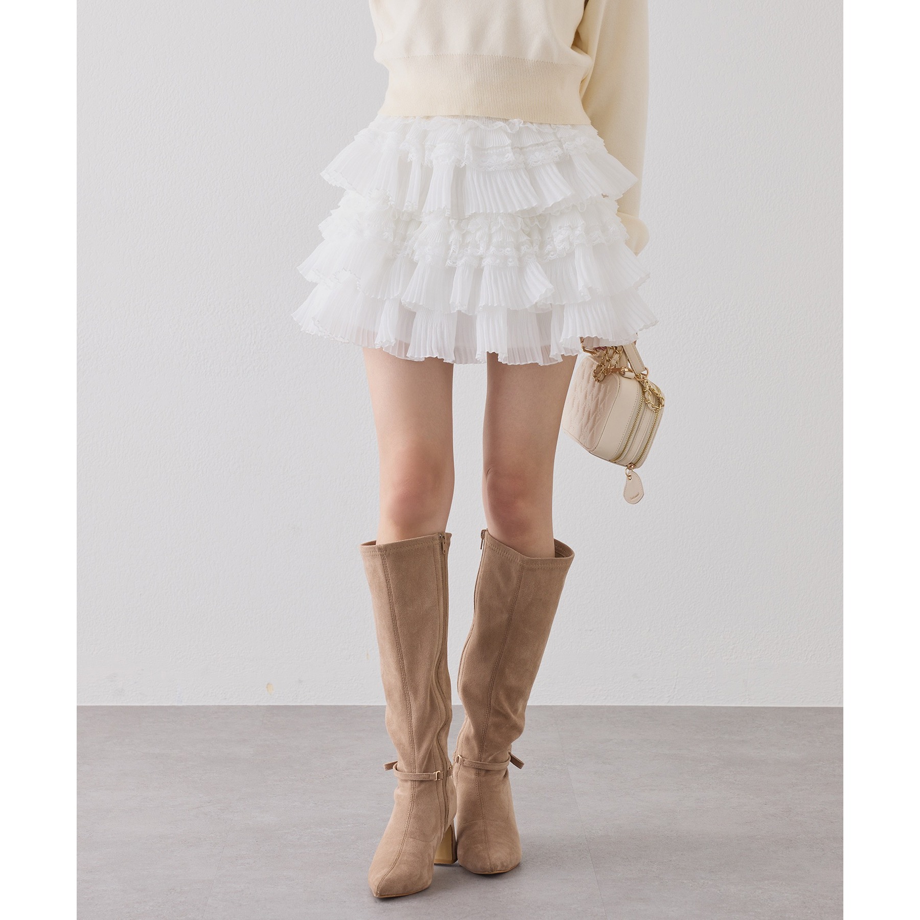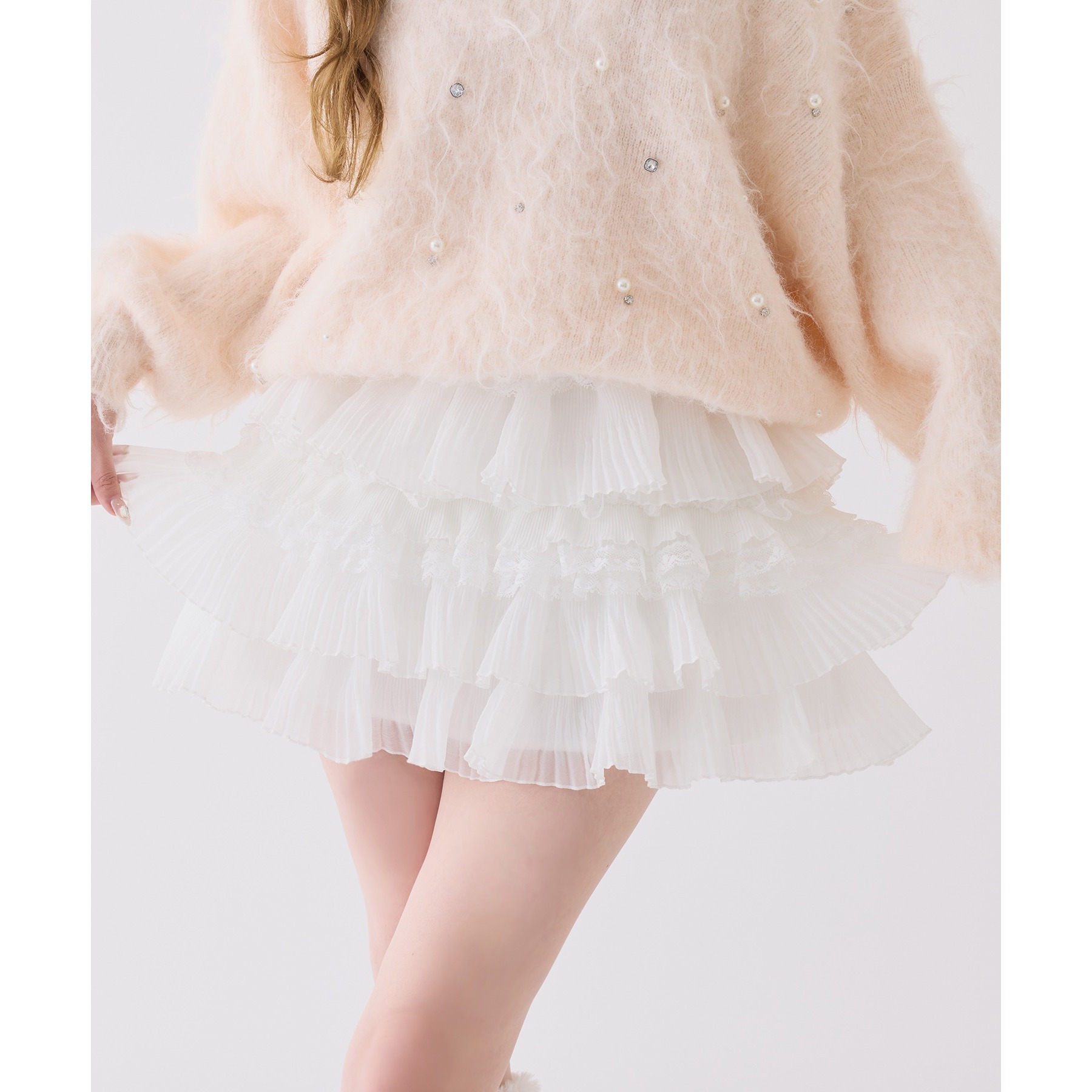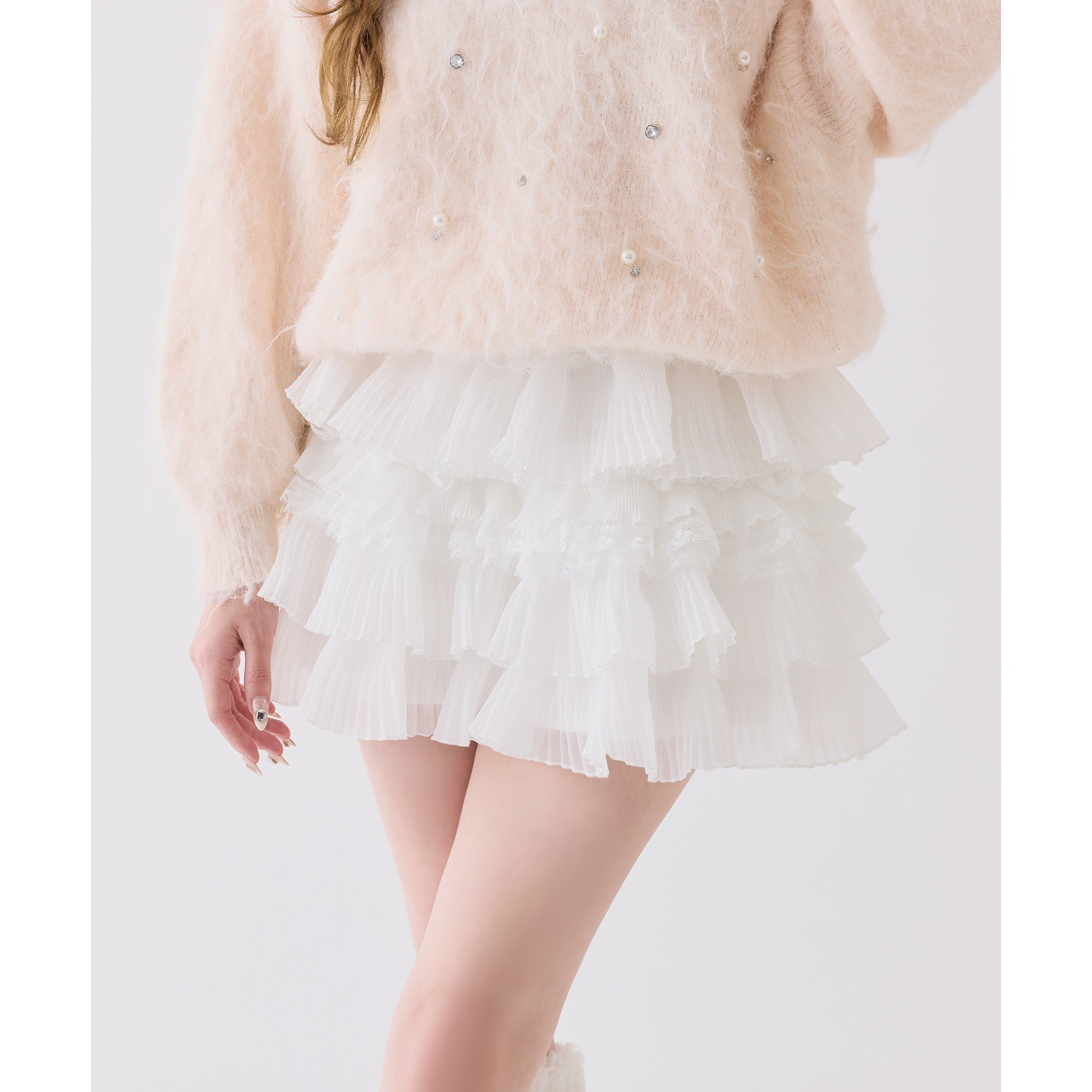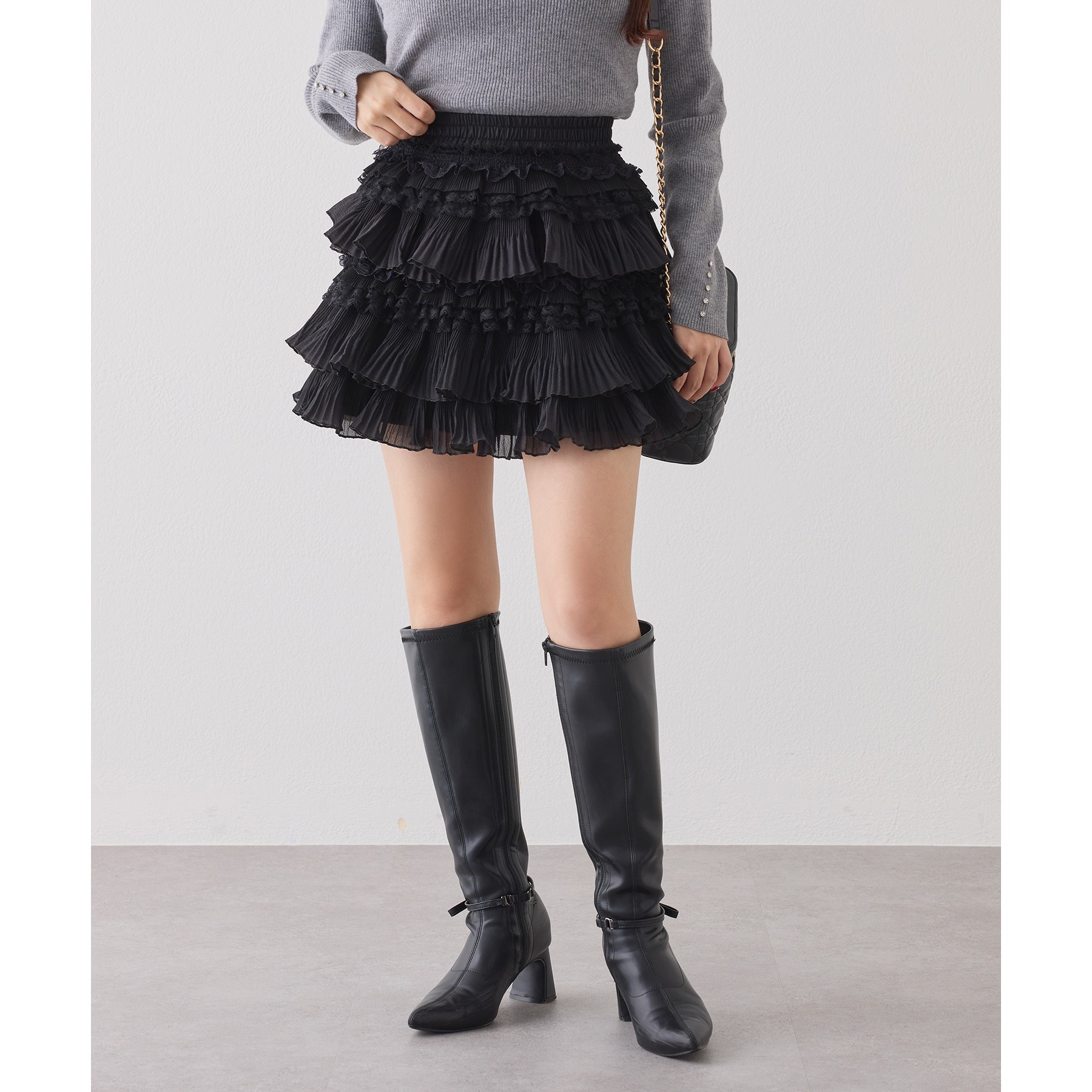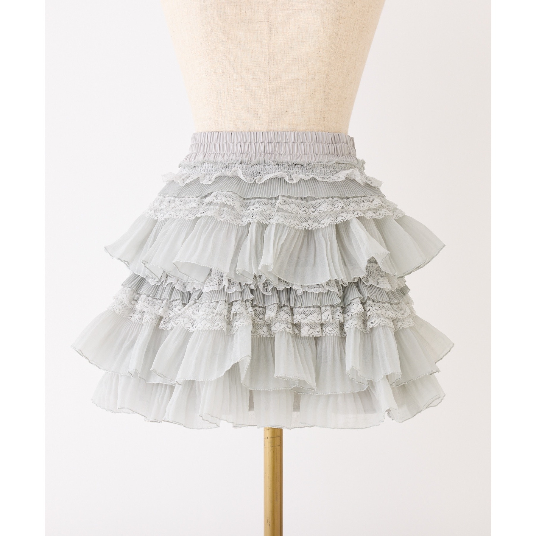 ふんわりと広がるフリルデザインが可愛いミニスカート。