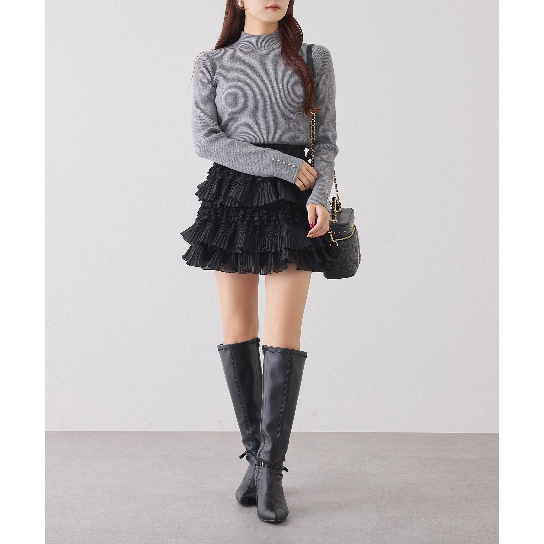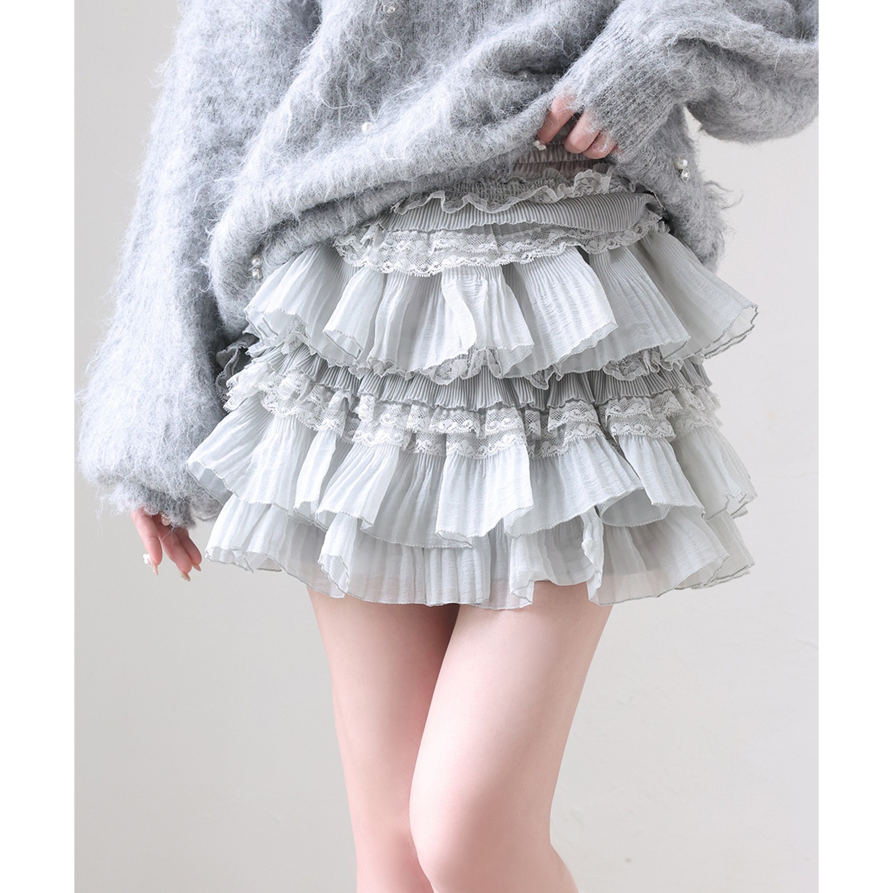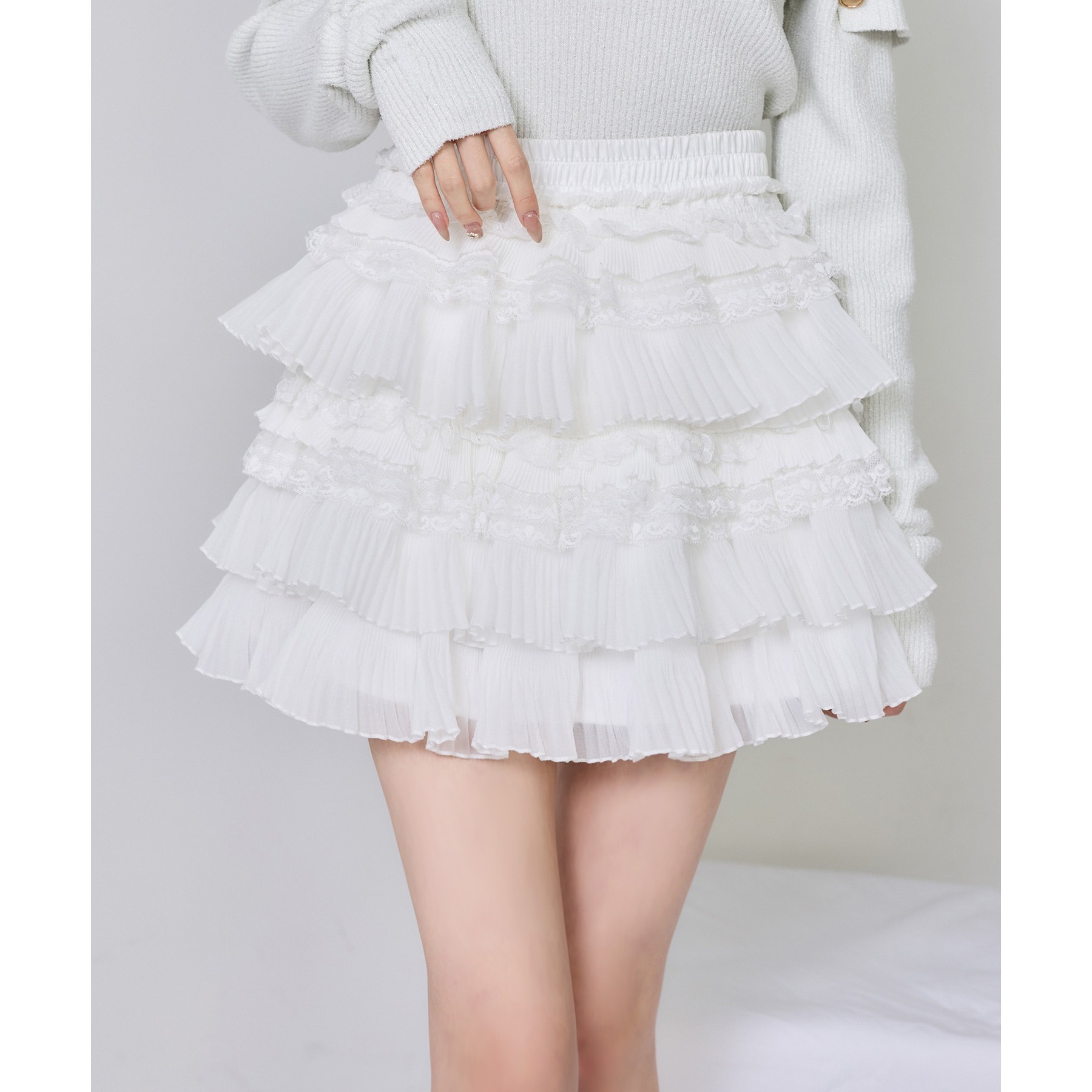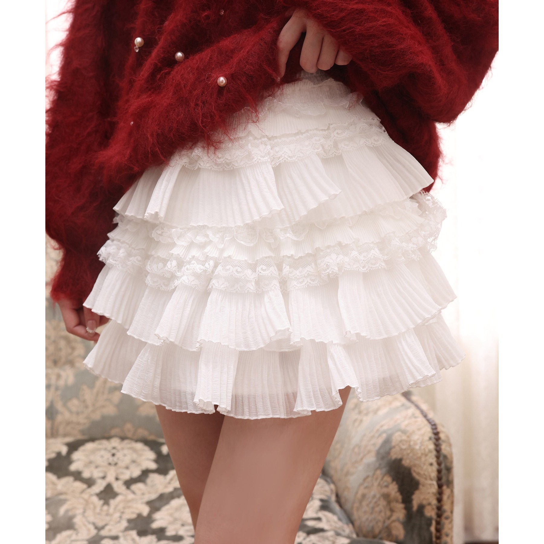 ふんわりと広がるフリルデザインが可愛いミニスカート。