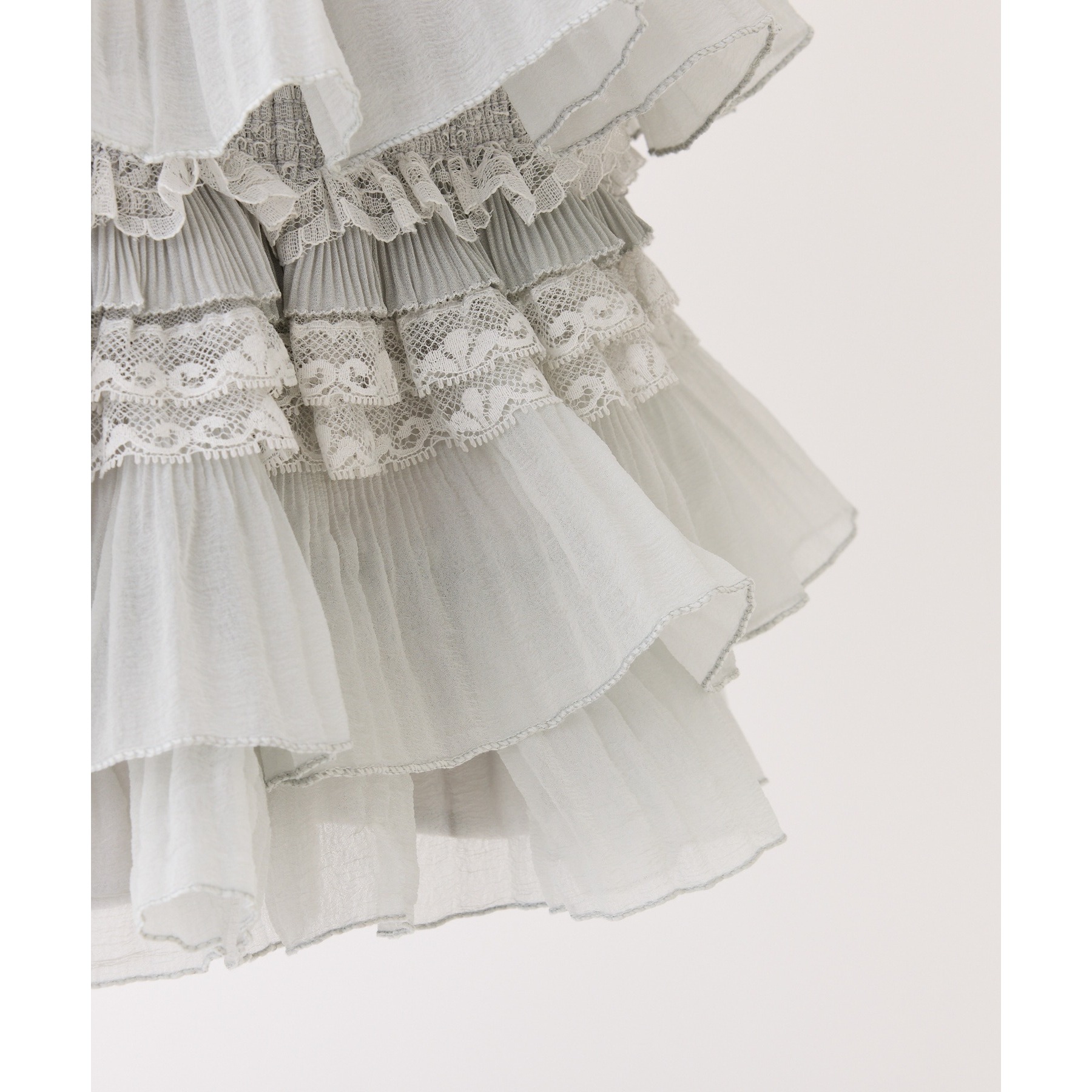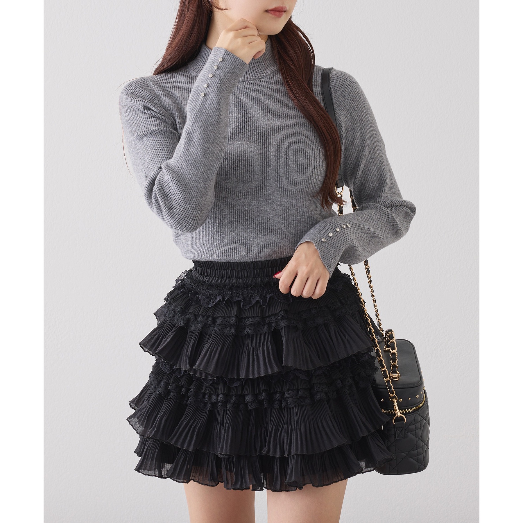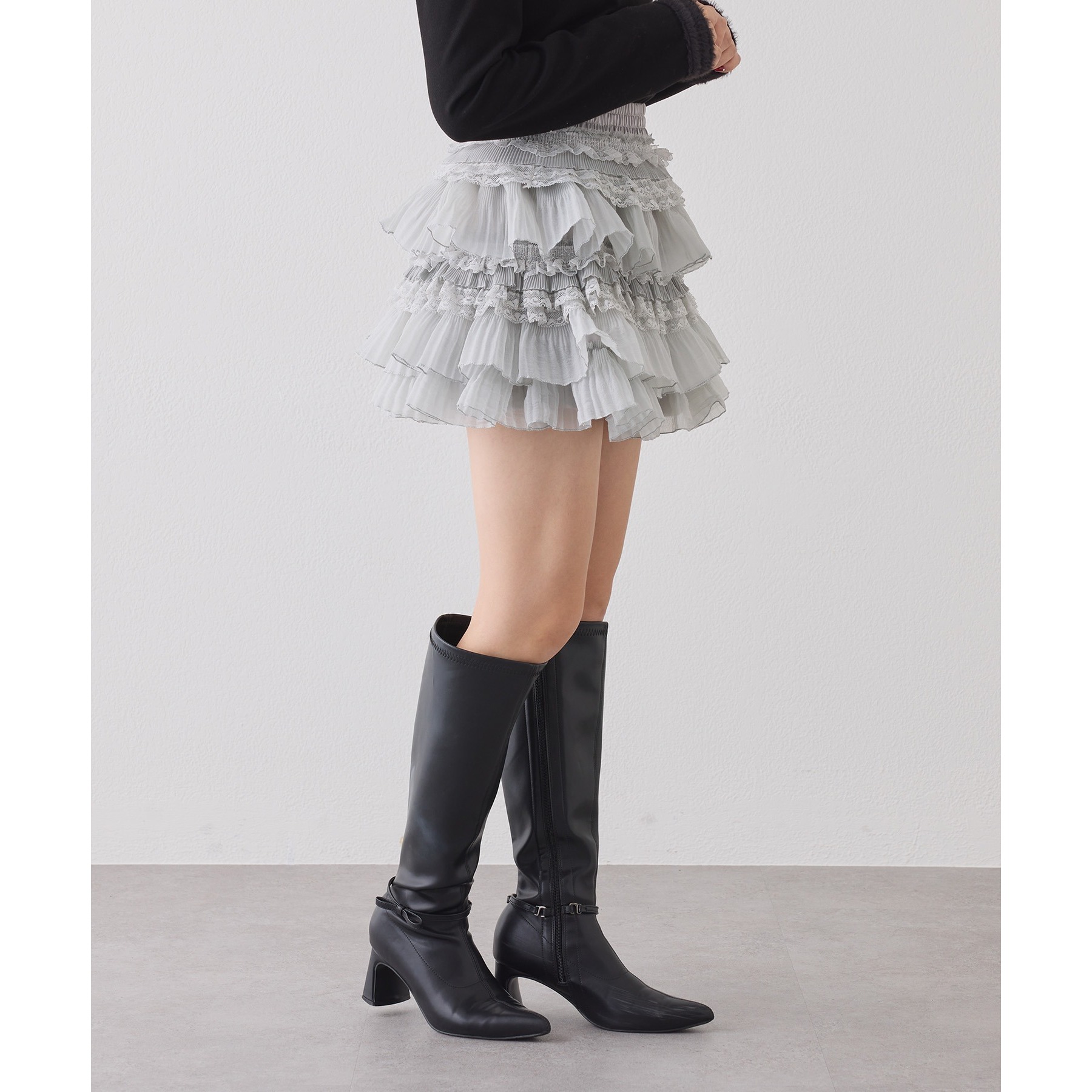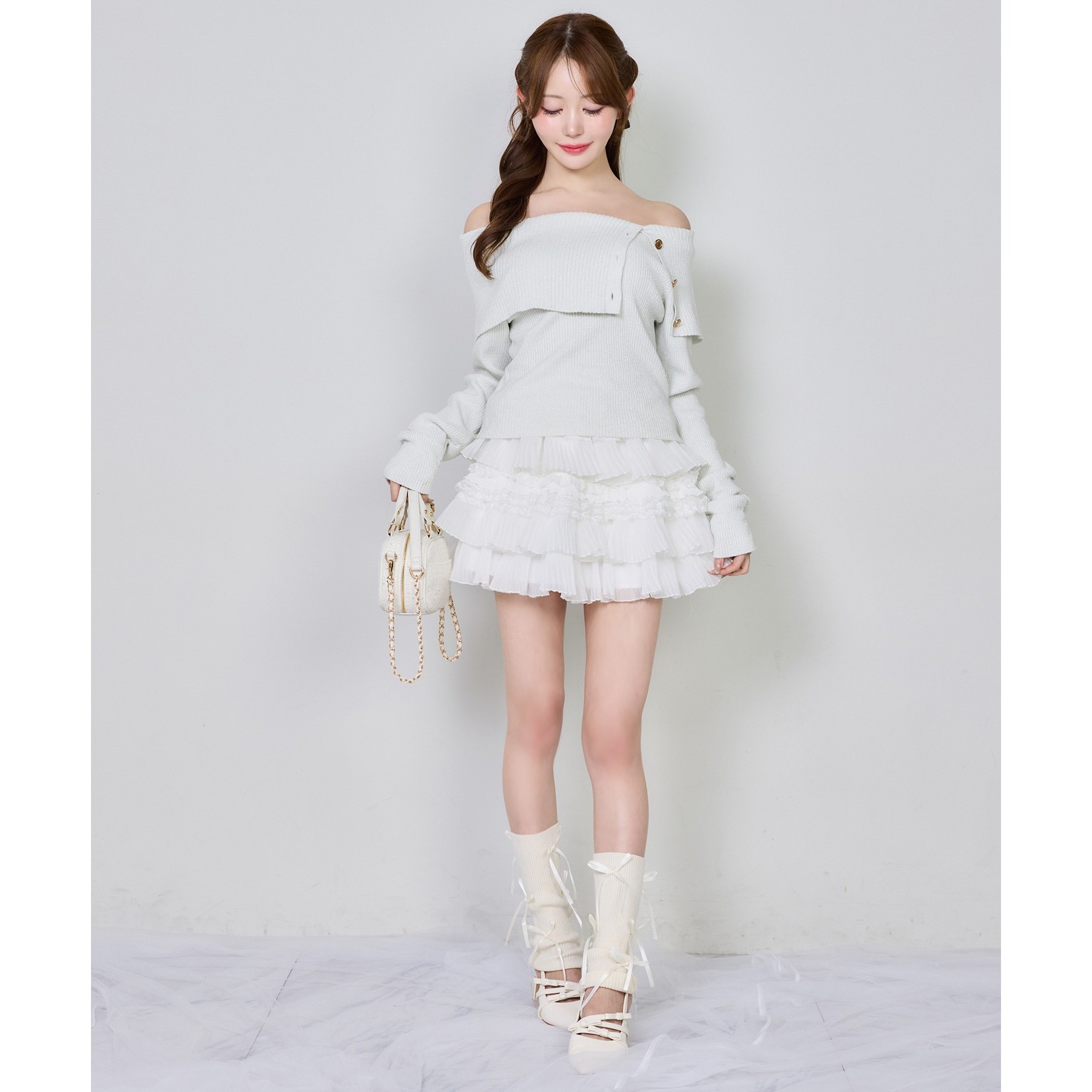 ふんわりと広がるフリルデザインが可愛いミニスカート。