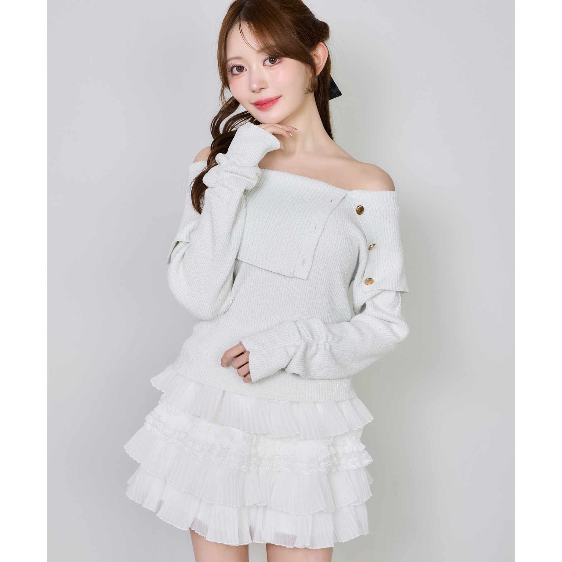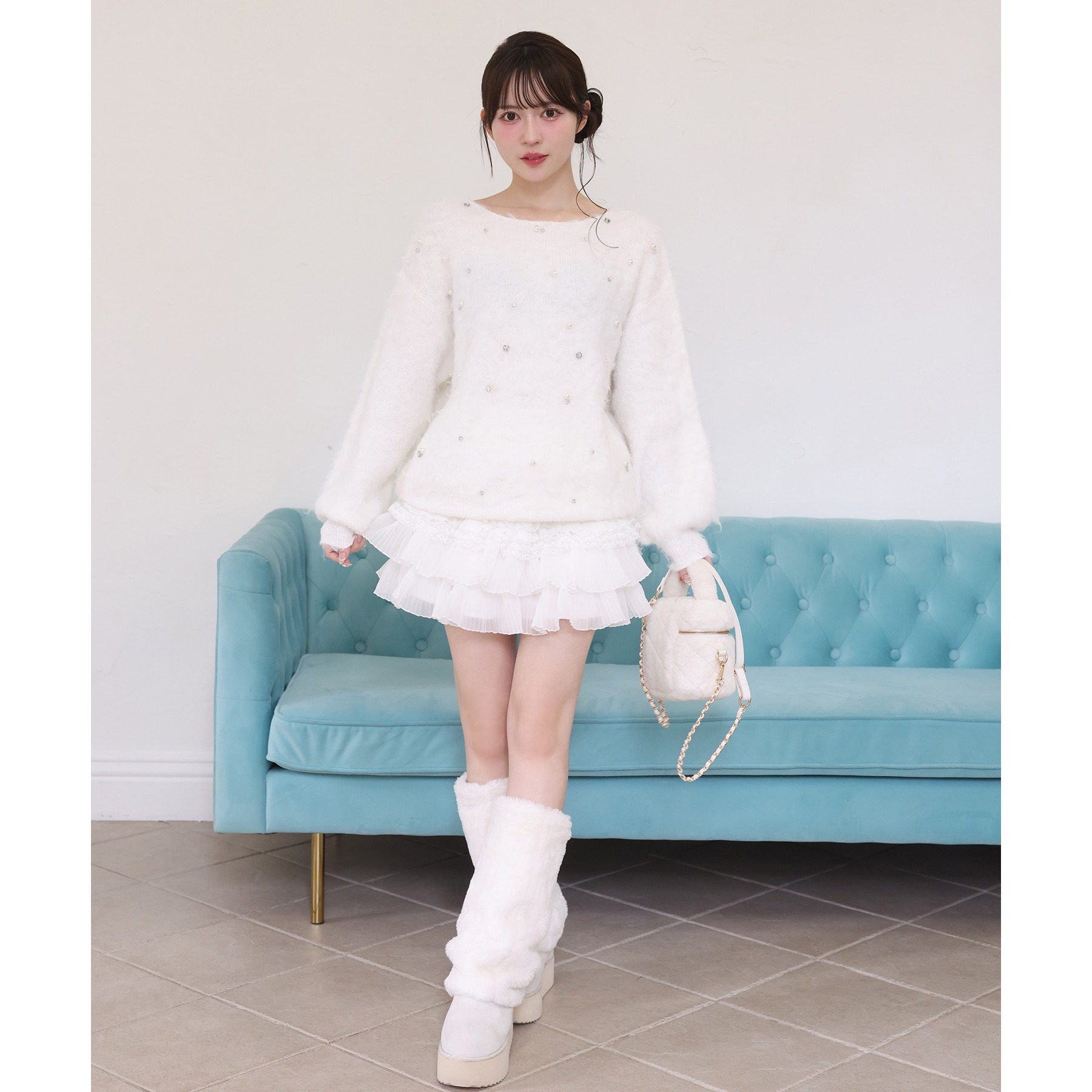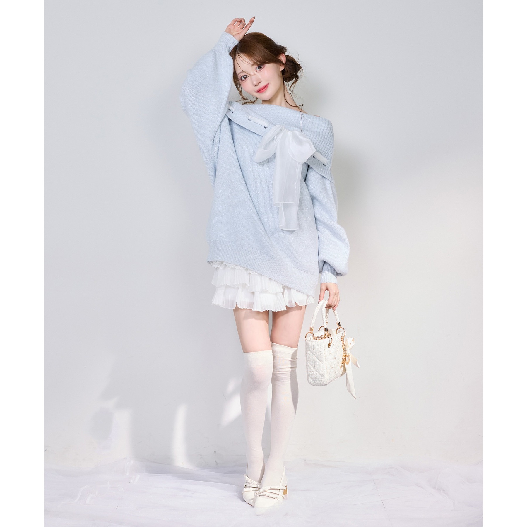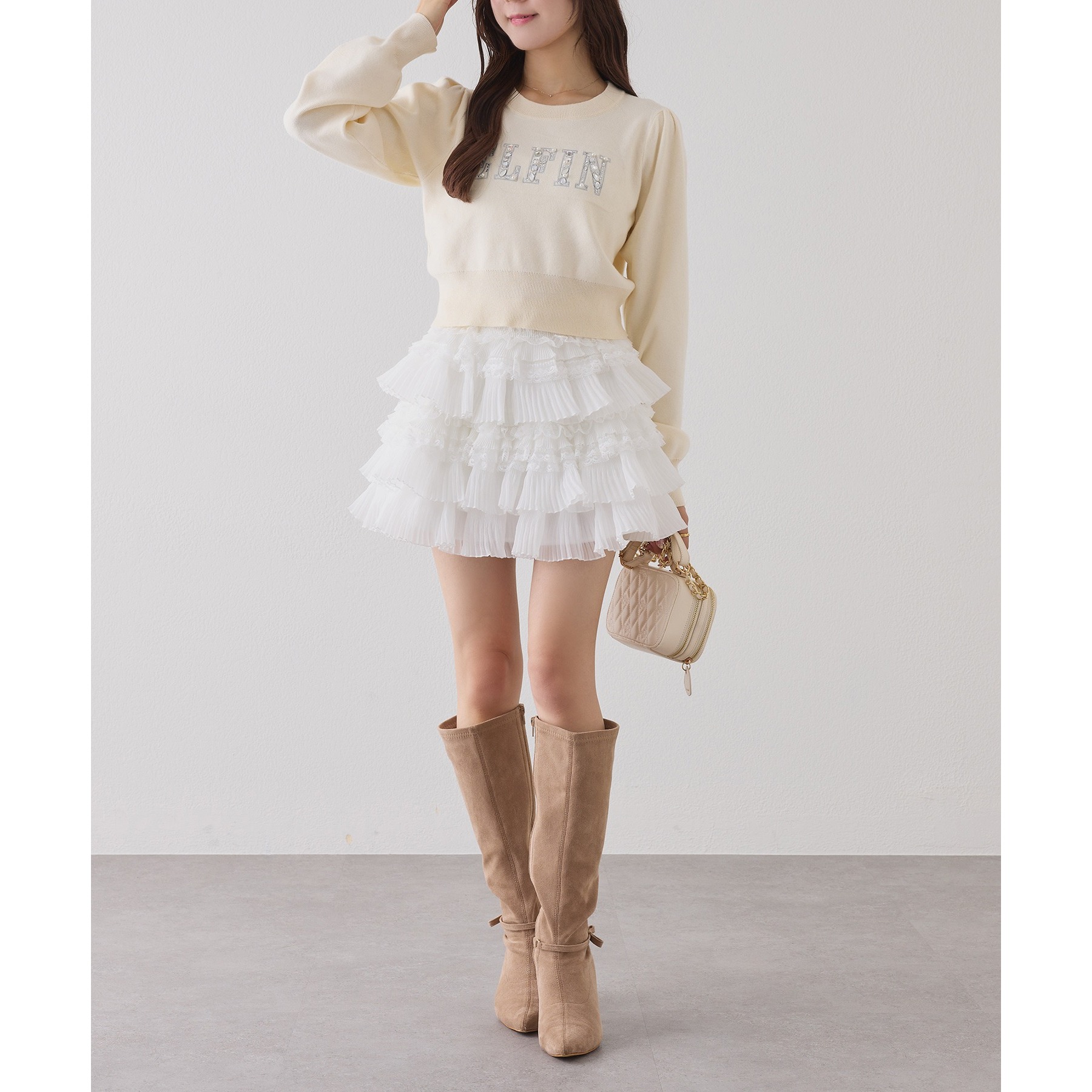 ショート丈ニットを合わせて王道ガーリーコーデに♡