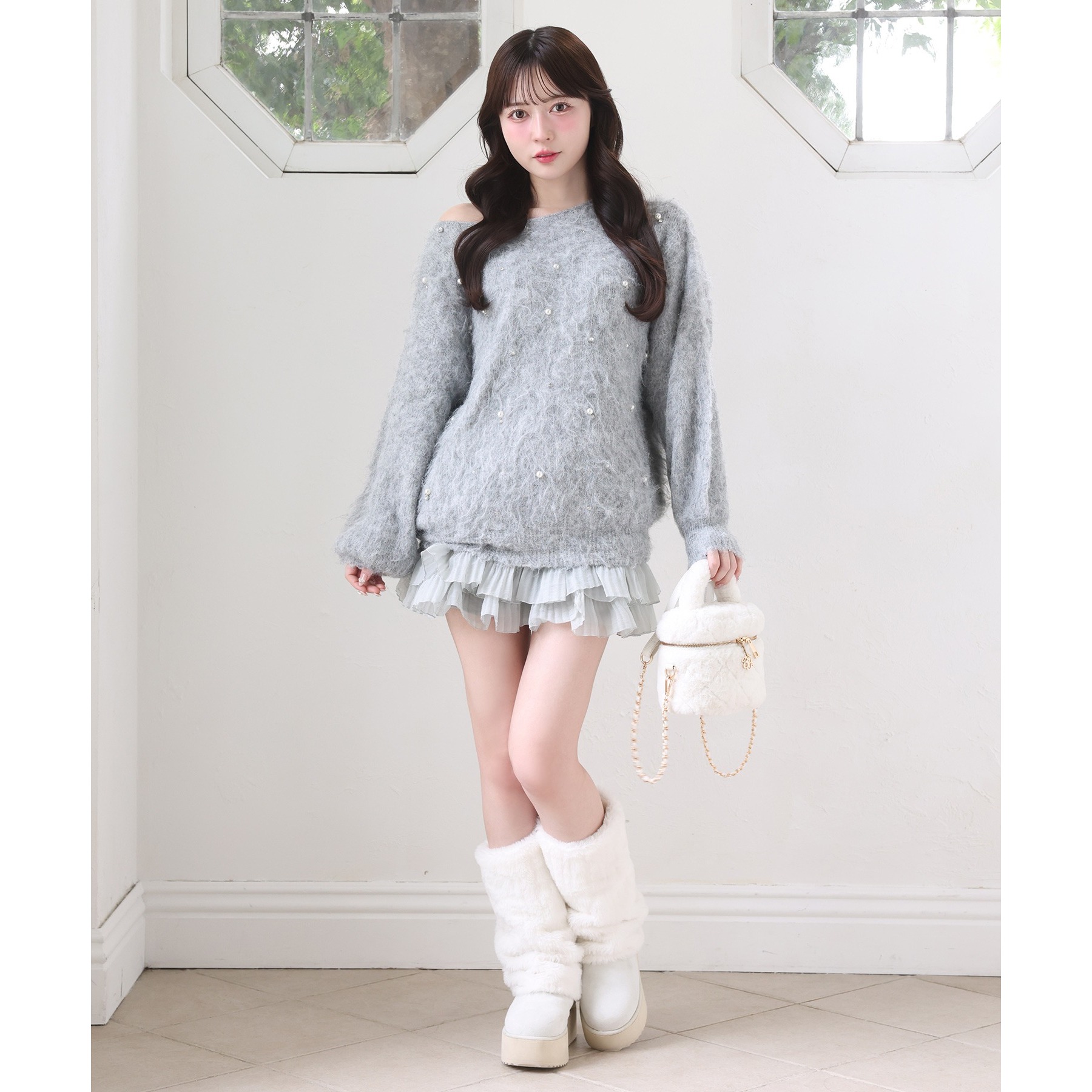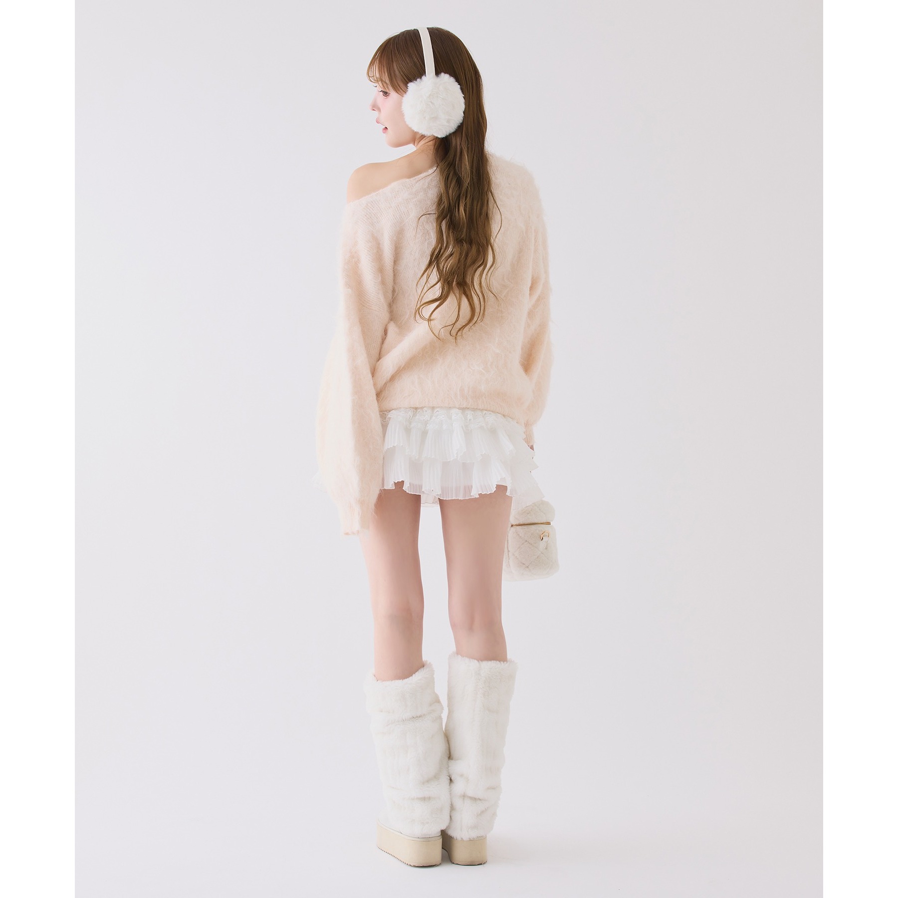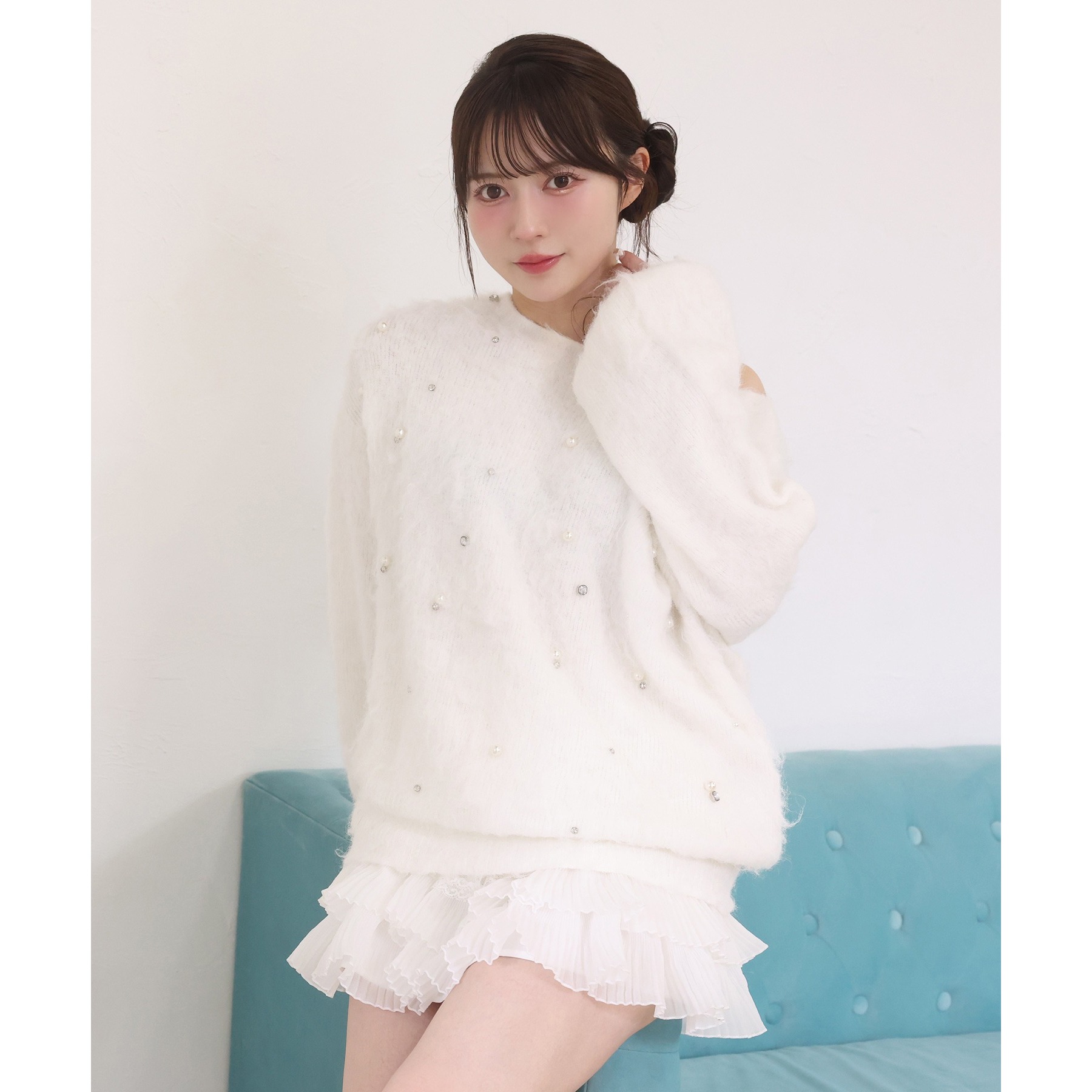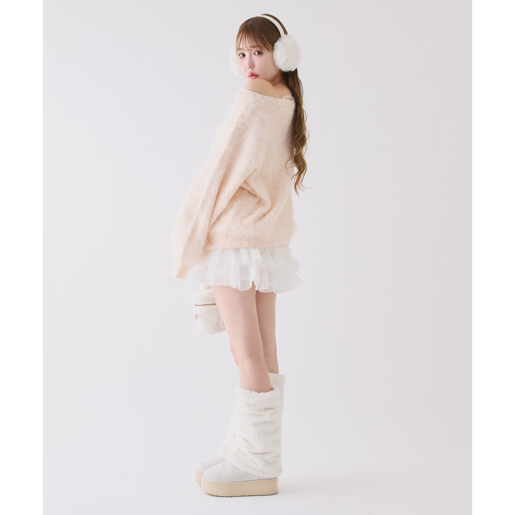 ショート丈ニットを合わせて王道ガーリーコーデに♡