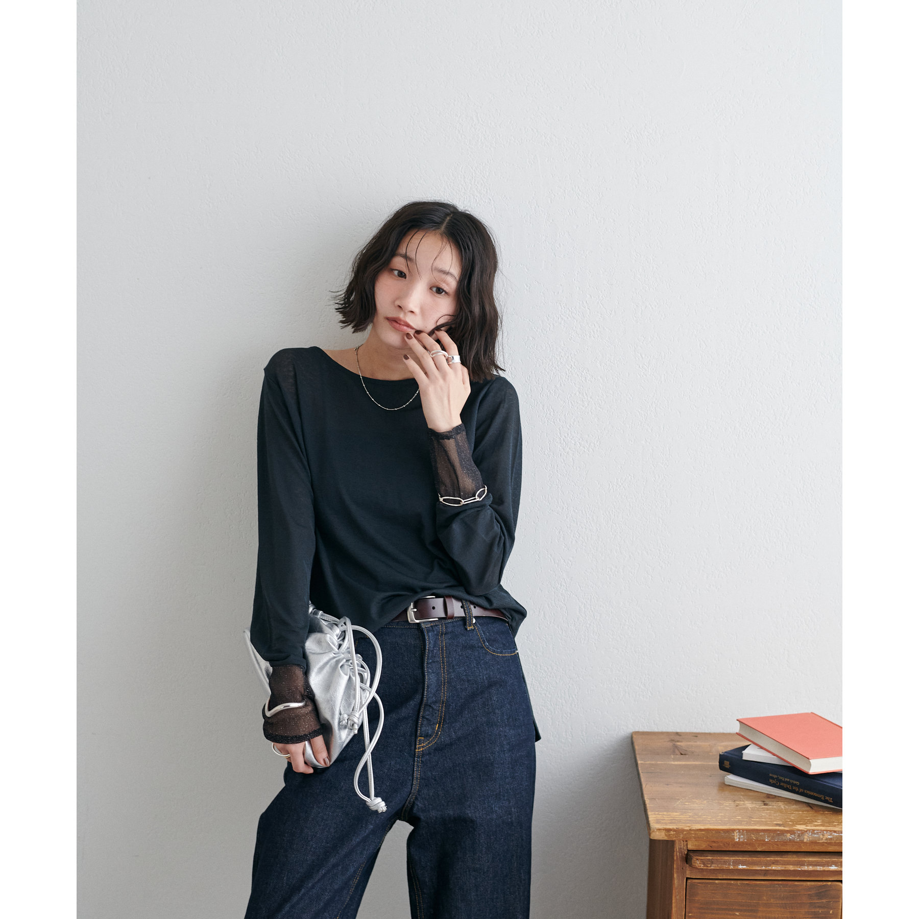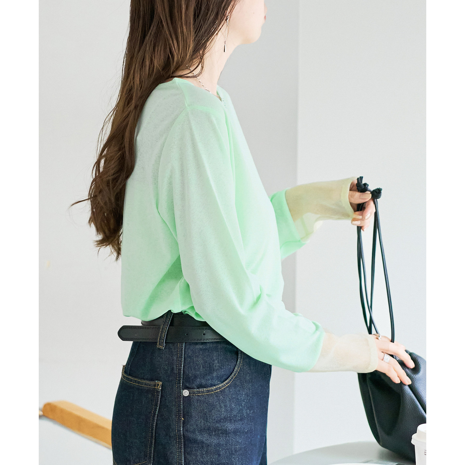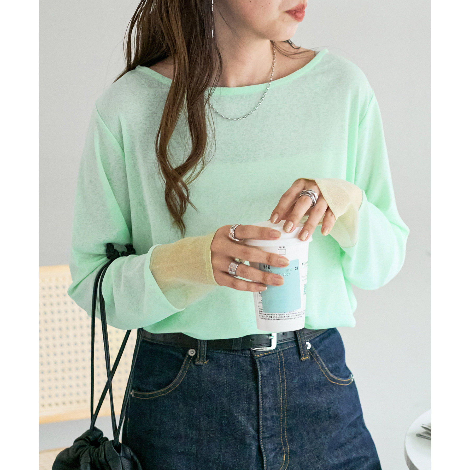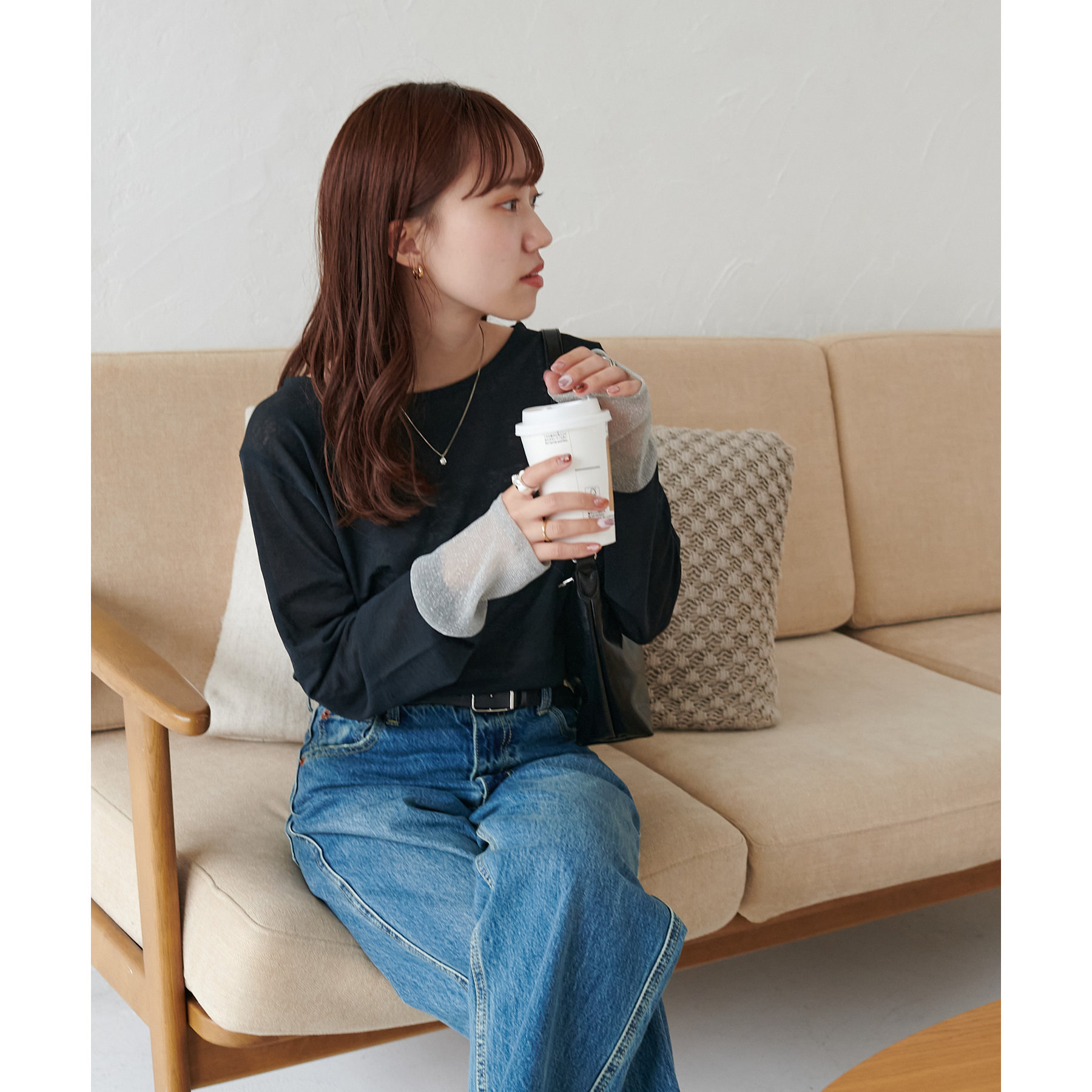 ・程よいシアー感が抜け感とヘルシーな印象をプラス。