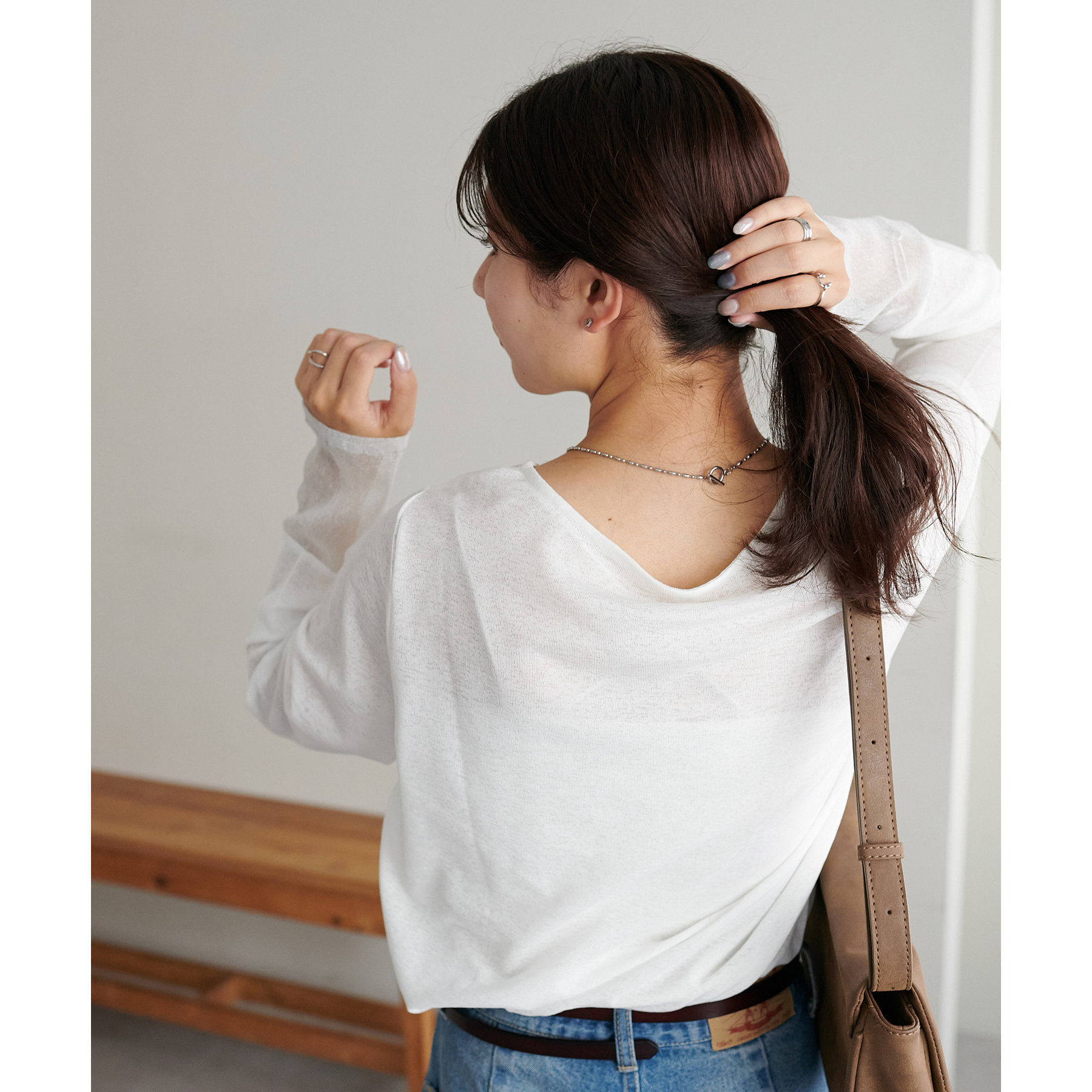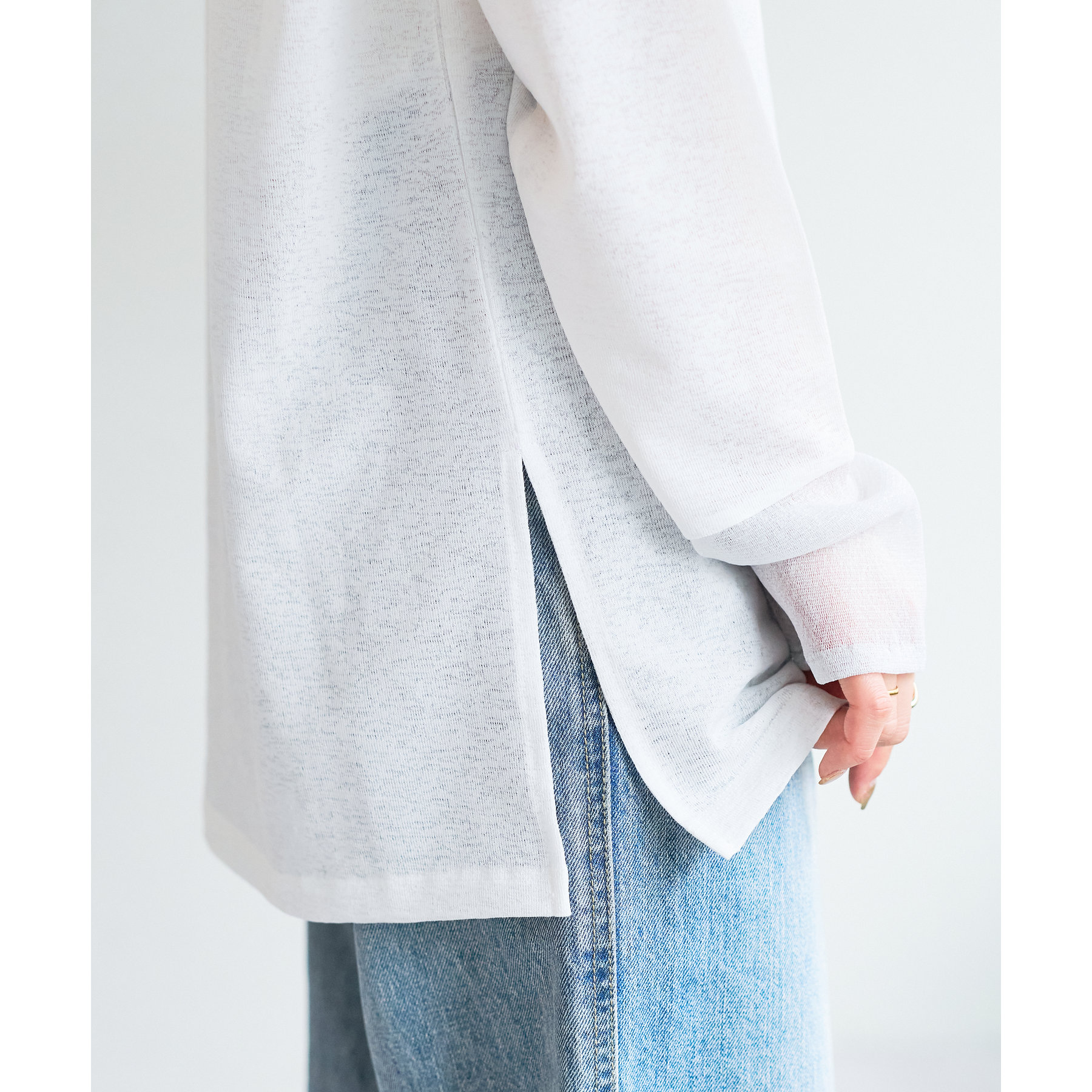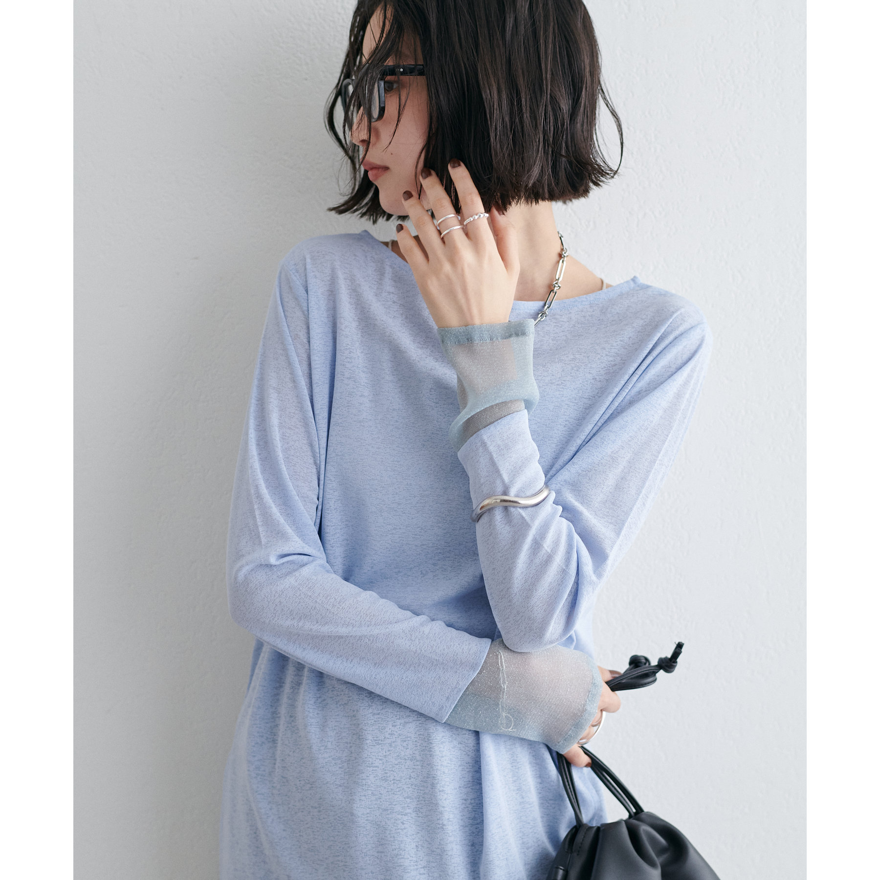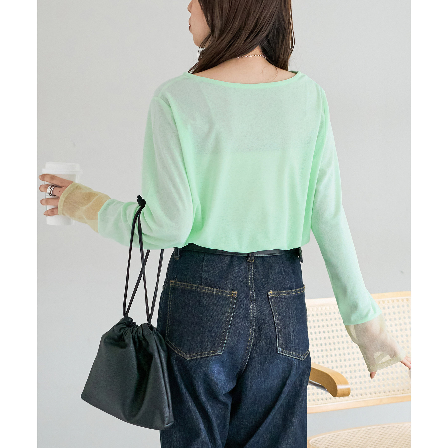 ・程よいシアー感が抜け感とヘルシーな印象をプラス。