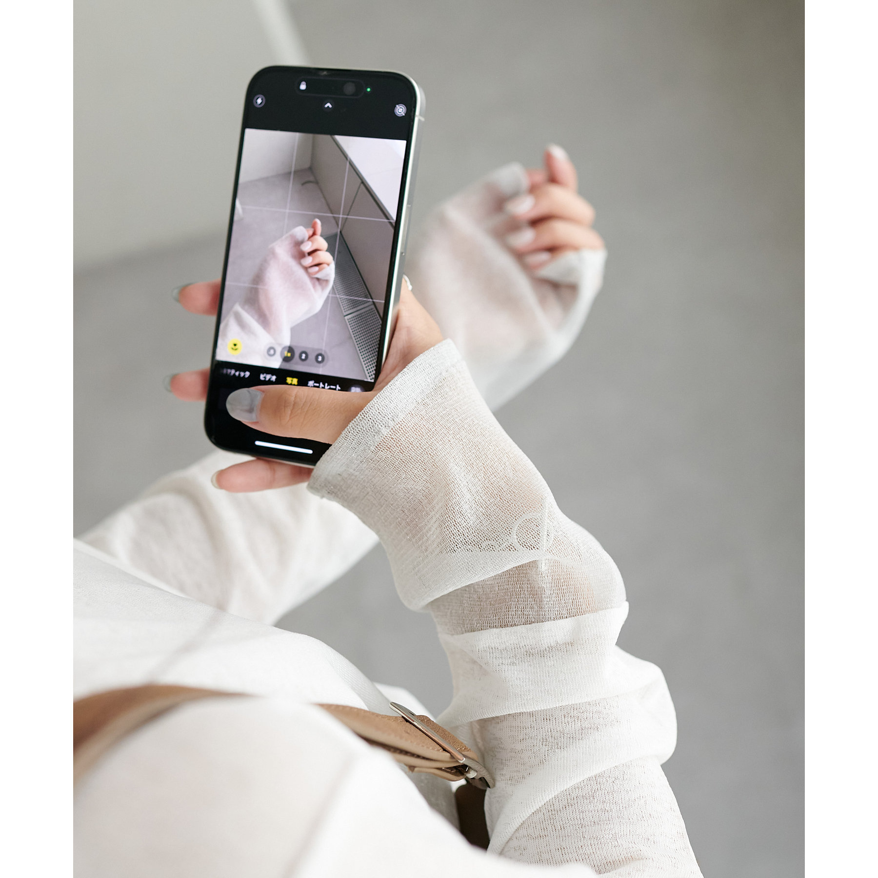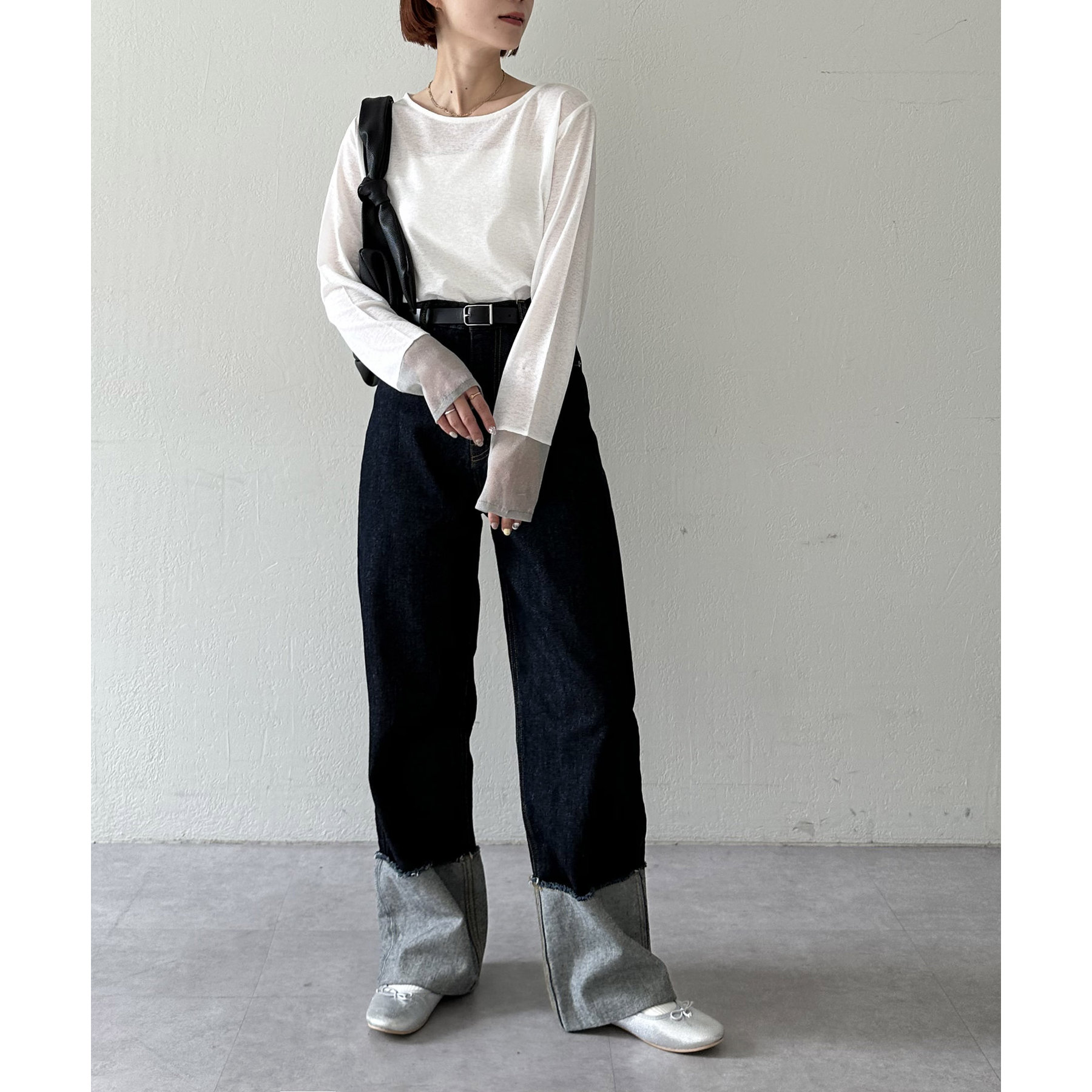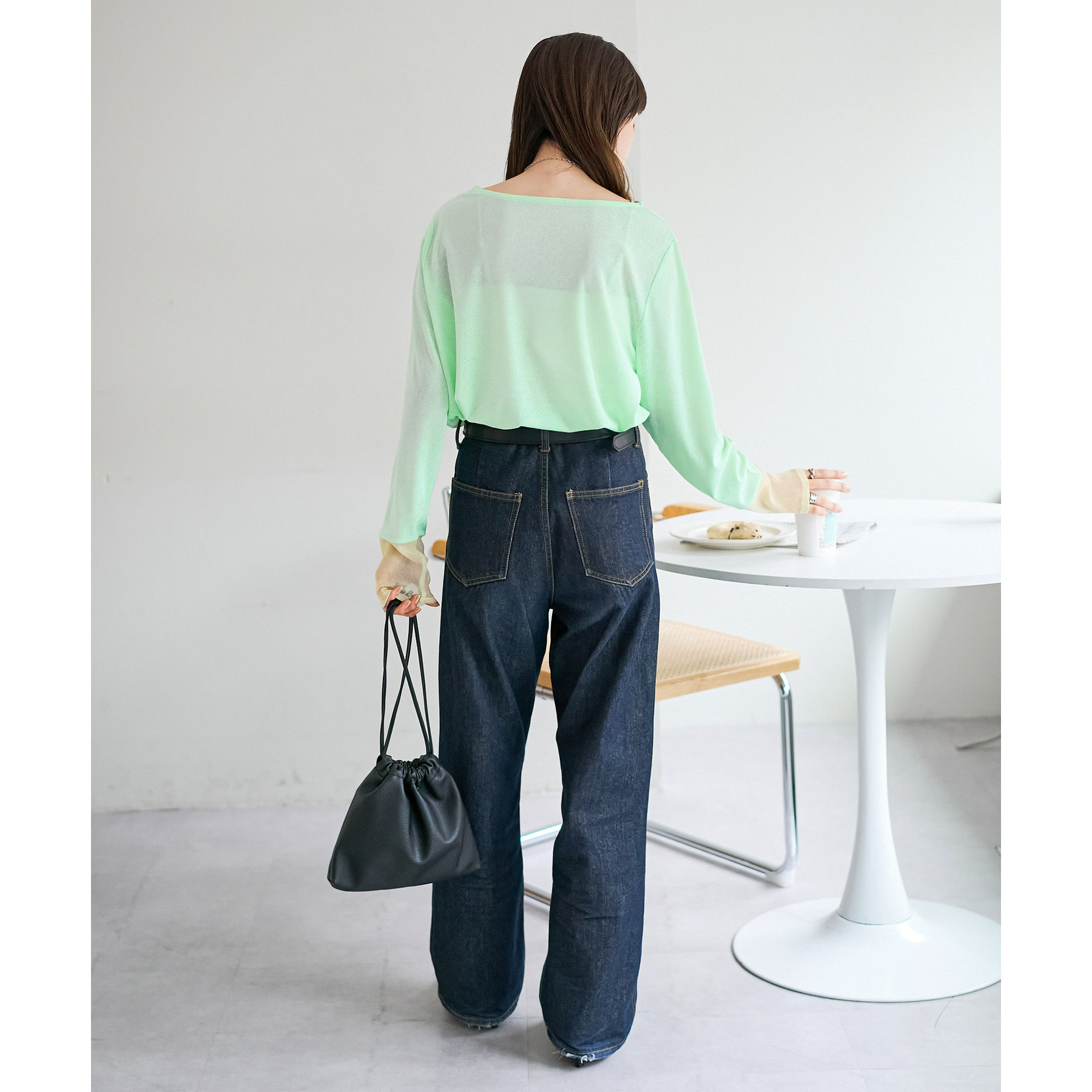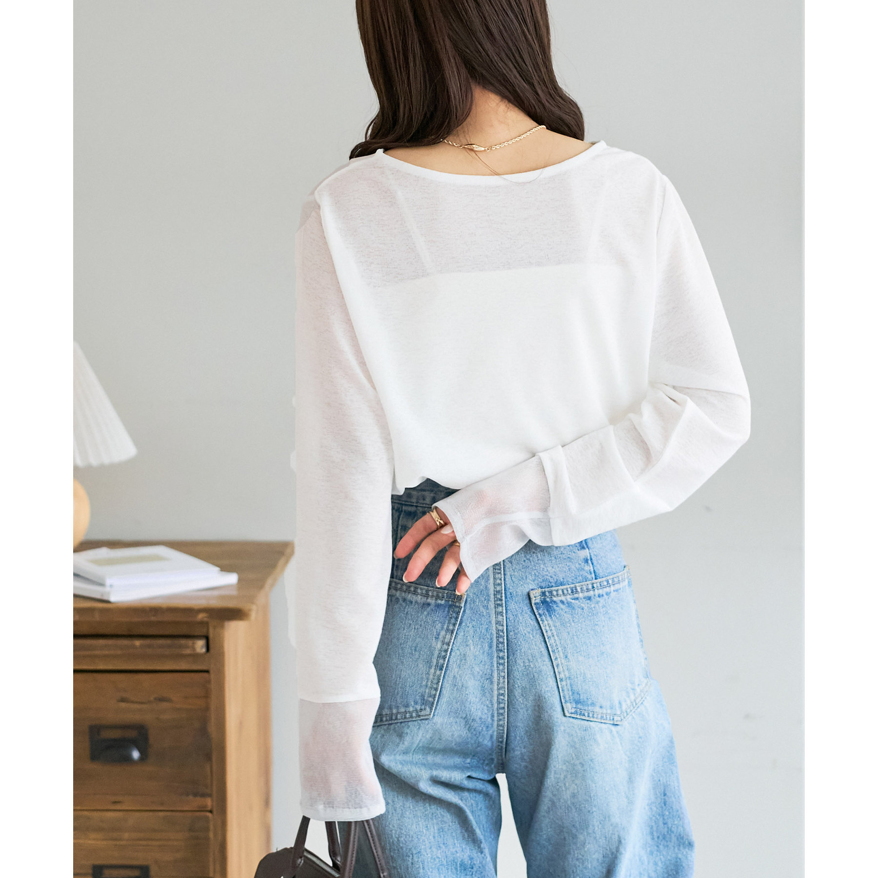 ・程よいシアー感が抜け感とヘルシーな印象をプラス。