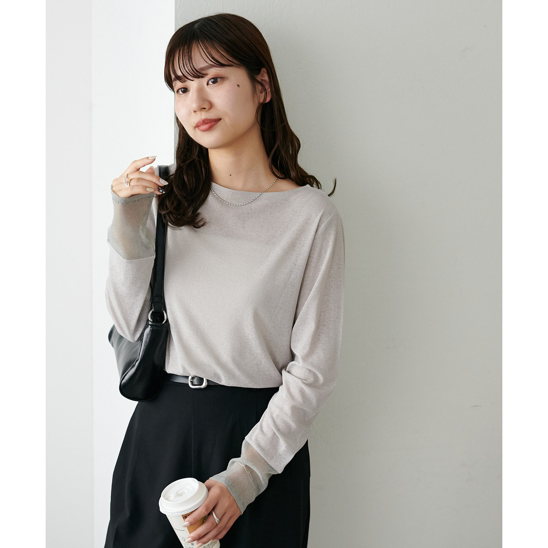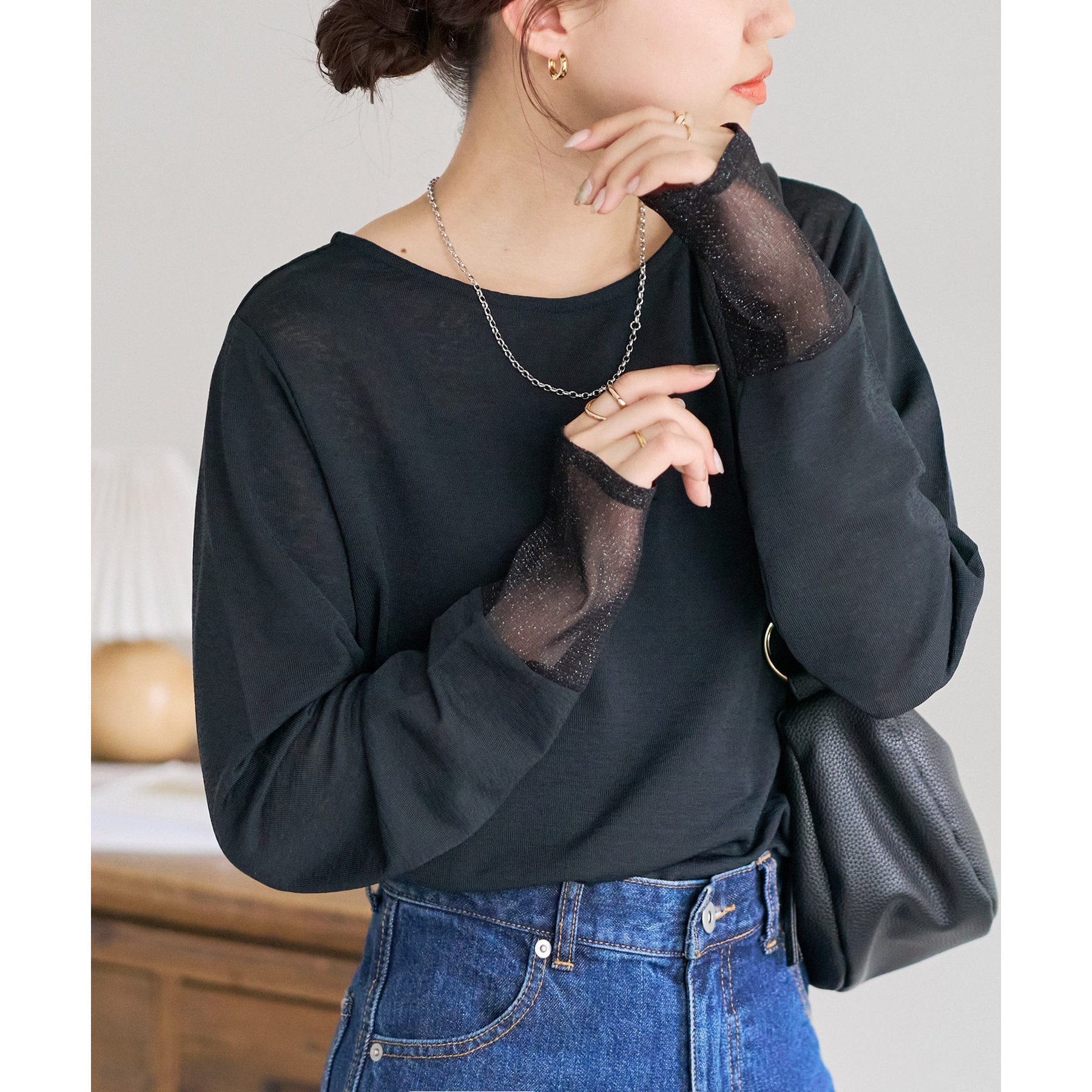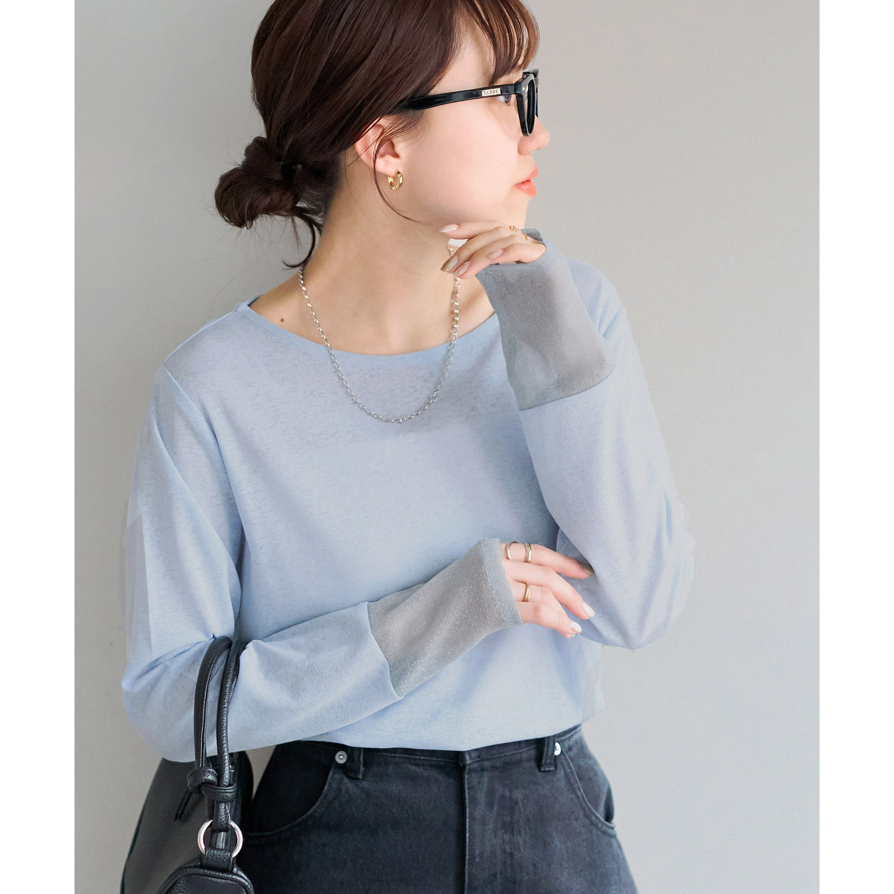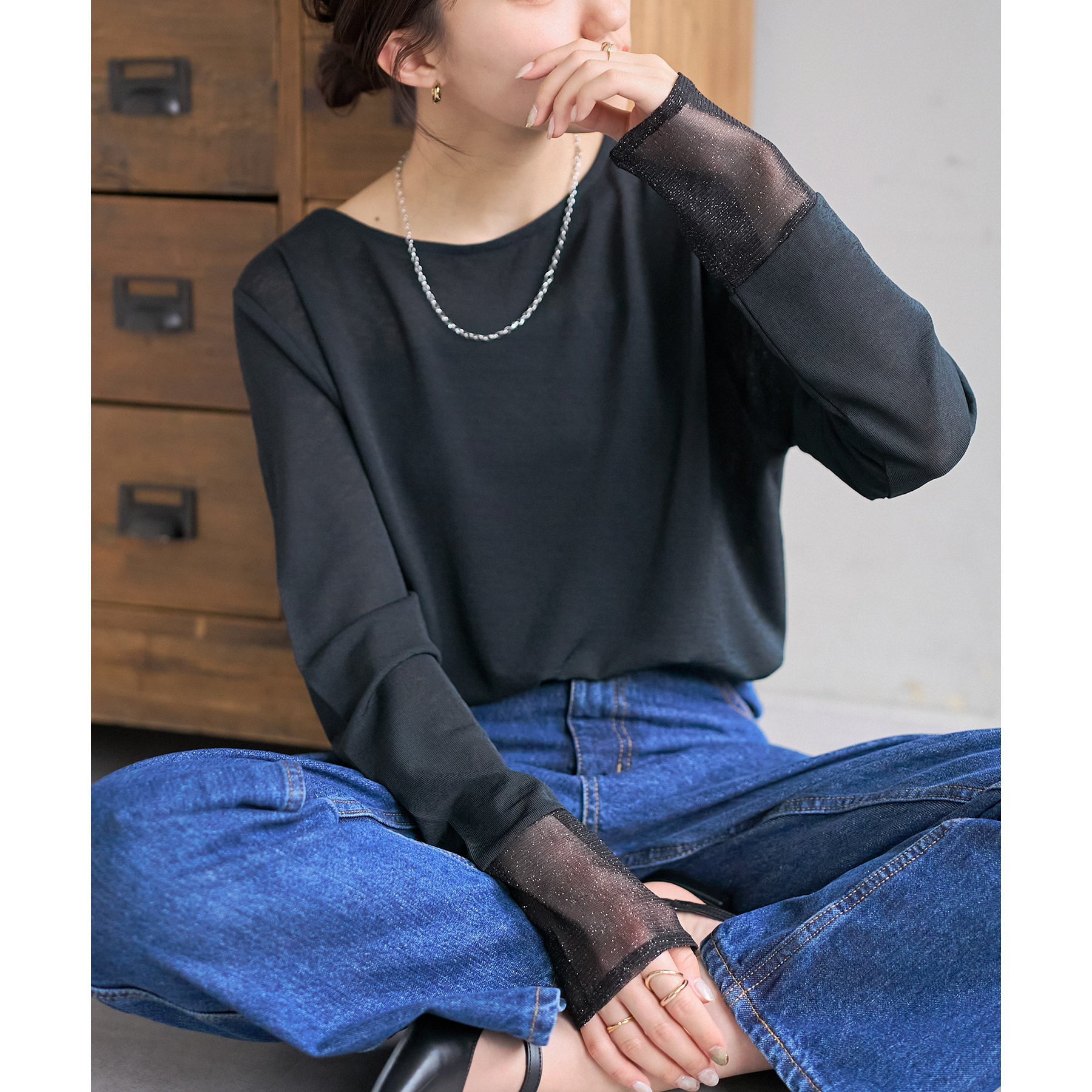 【万能インナー/WEB限定】ラメシアー袖切替プルオーバー