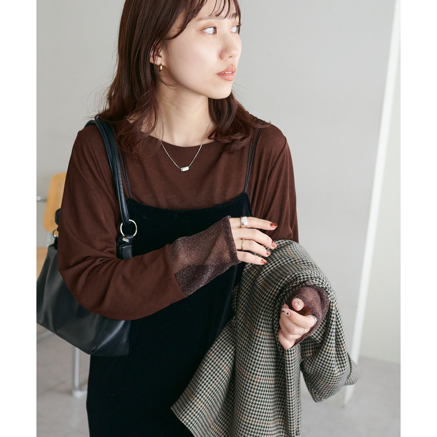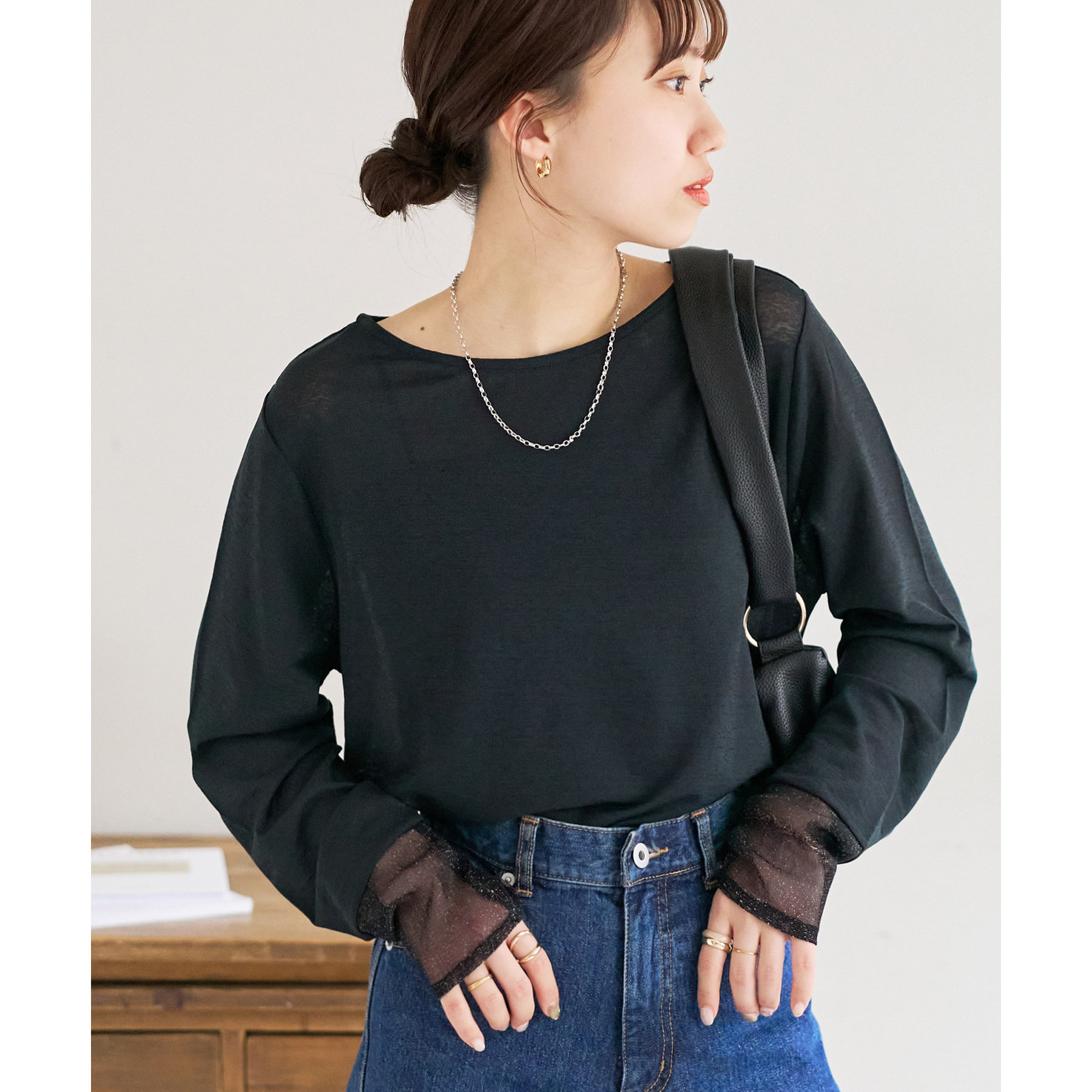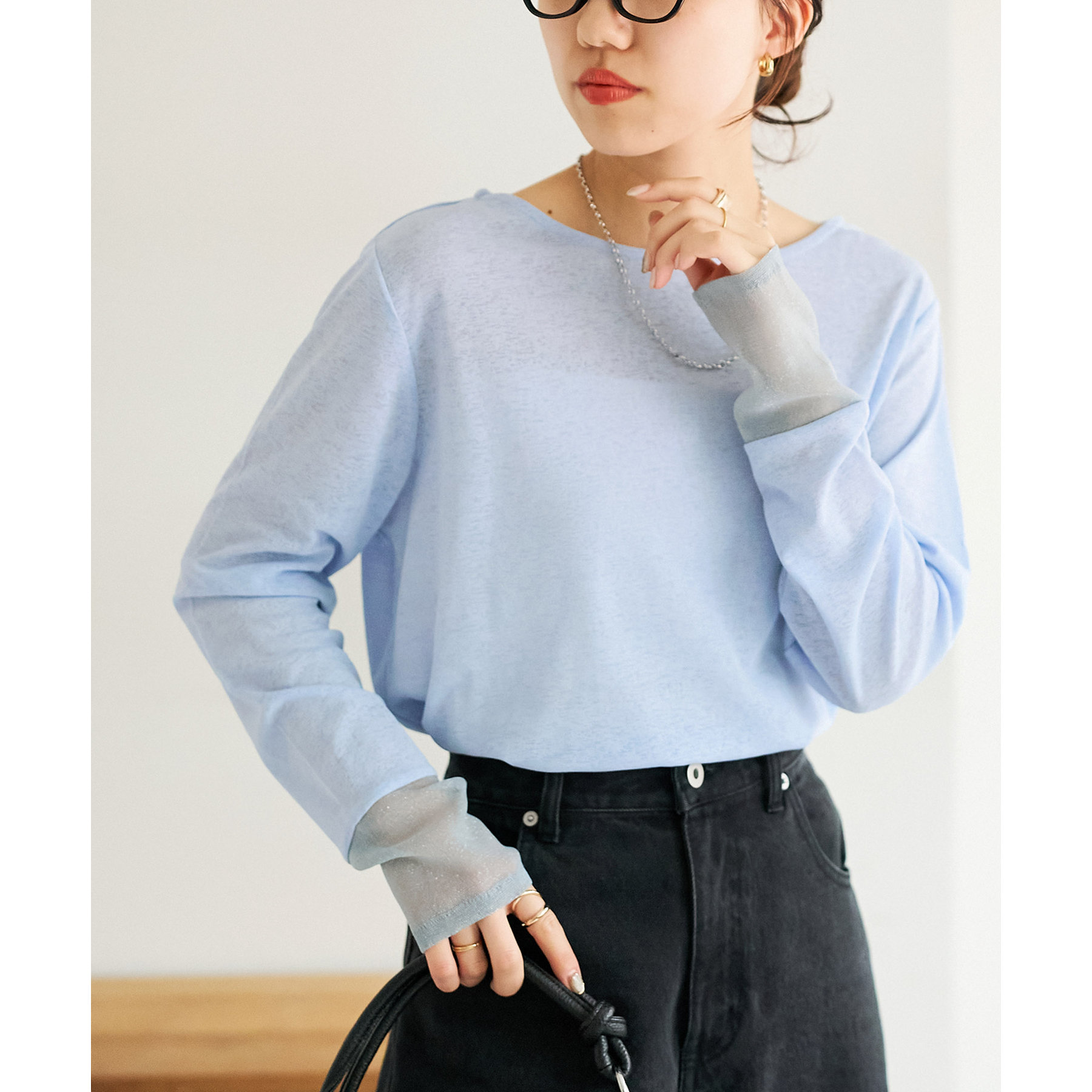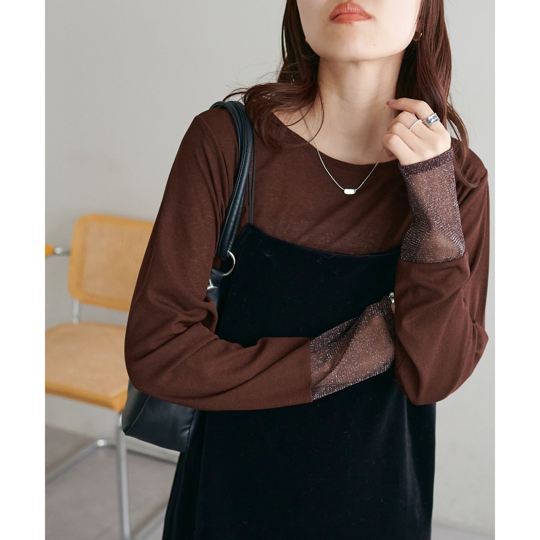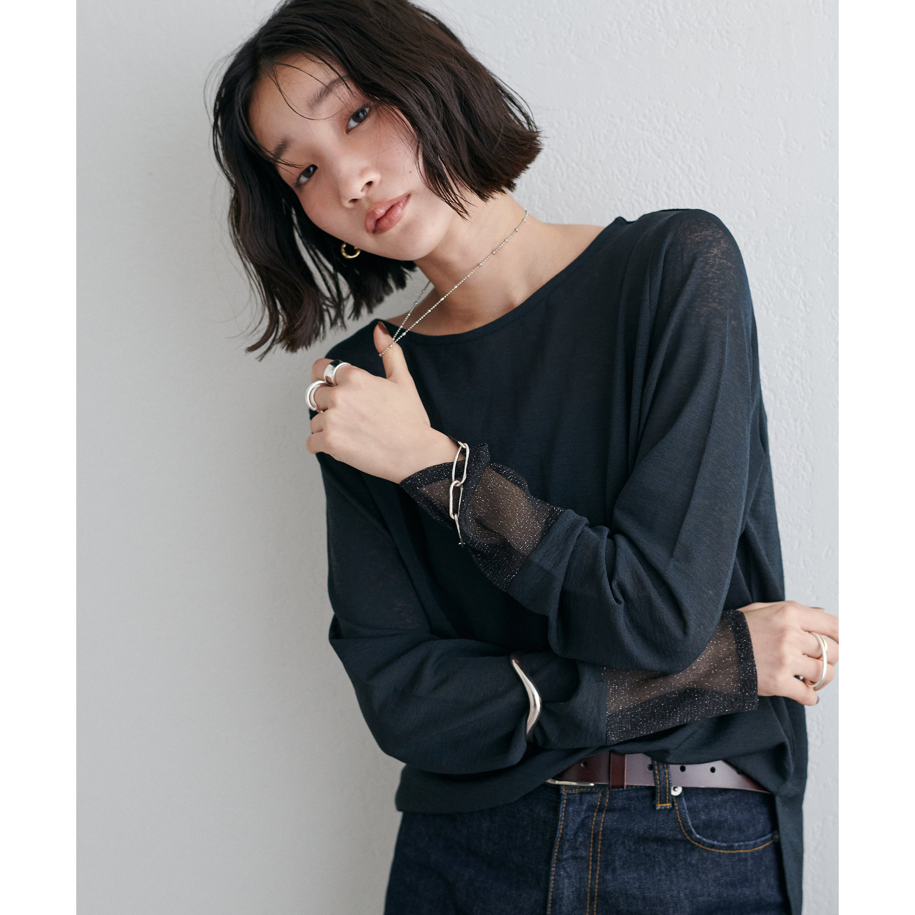 【万能インナー/WEB限定】ラメシアー袖切替プルオーバー
